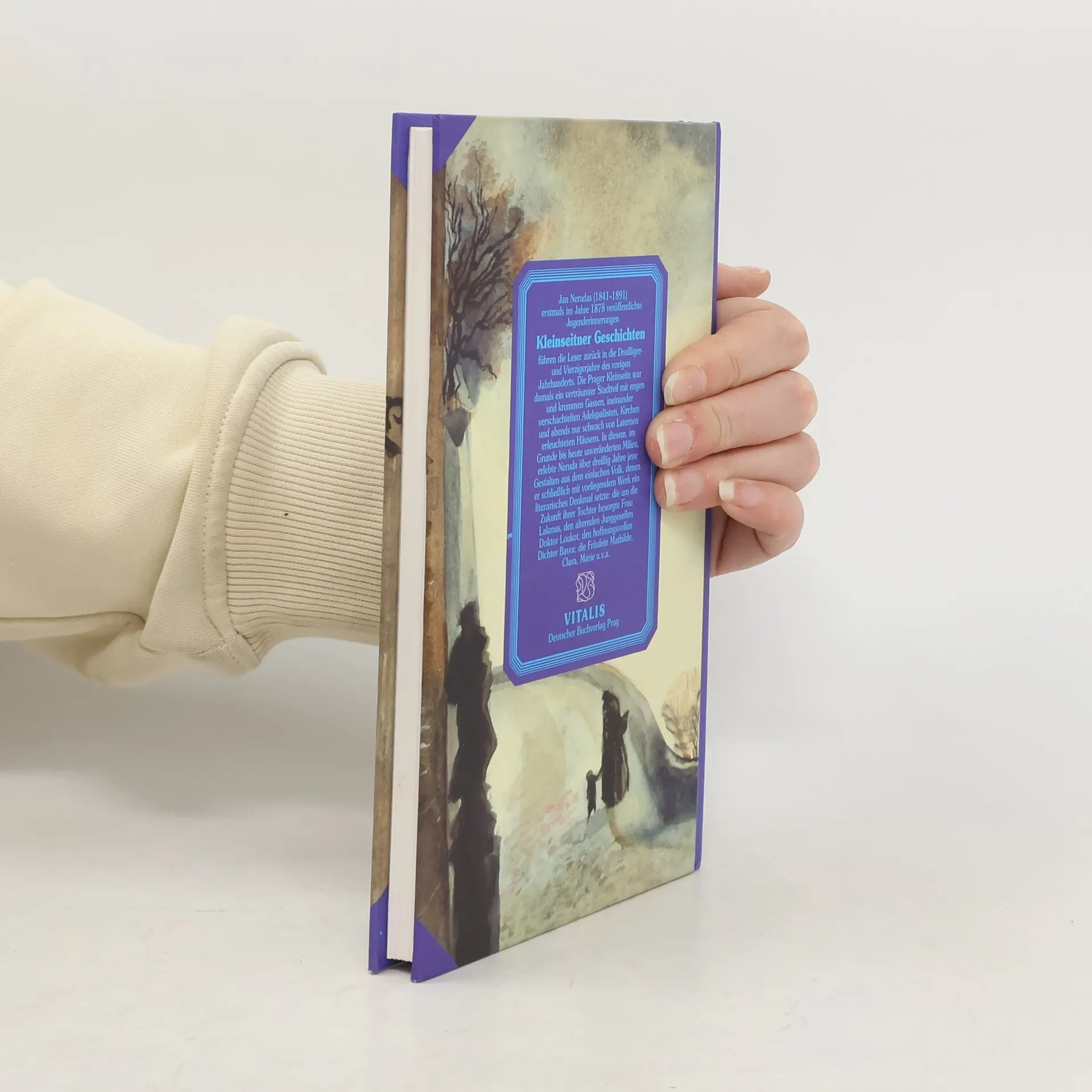 Jan Nerudas (1834–1891) erstmals im Jahre 1878 veröffentlichte Jugenderinnerungen Kleinseitner Geschichten führen das Lesepublikum zurück in die erste Hälfte des vorigen Jahrhunderts. Die Prager Kleinseite war damals ein verträumter Stadtteil mit engen, nur schwach von Laternen erleuchteten Gassen, stolzen Adelspalästen und prächtigen Kirchen. In diesem bis heute nahezu unveränderten Umfeld begegnete Neruda jenen Originalen aus dem einfachen Volk, denen er mit dem vorliegenden Werk ein literarisches Denkmal setzte: die um die Zukunft ihrer Tochter besorgte Frau Lakmus, den alternden Junggesellen Doktor Loukot, den hoffnungsvollen Dichter Bavor, die Fräulein Mathilde, Clara, Marie u. v. a.