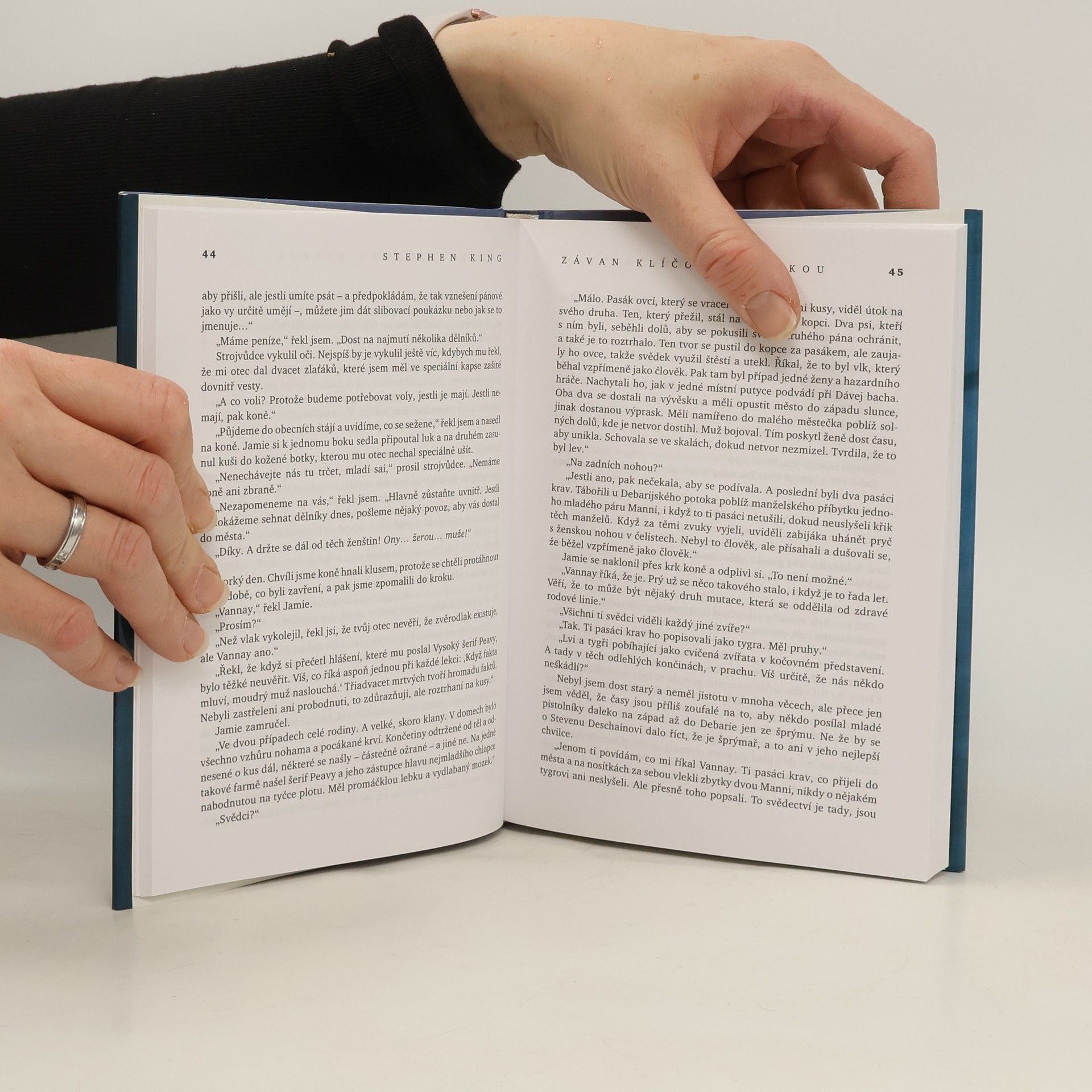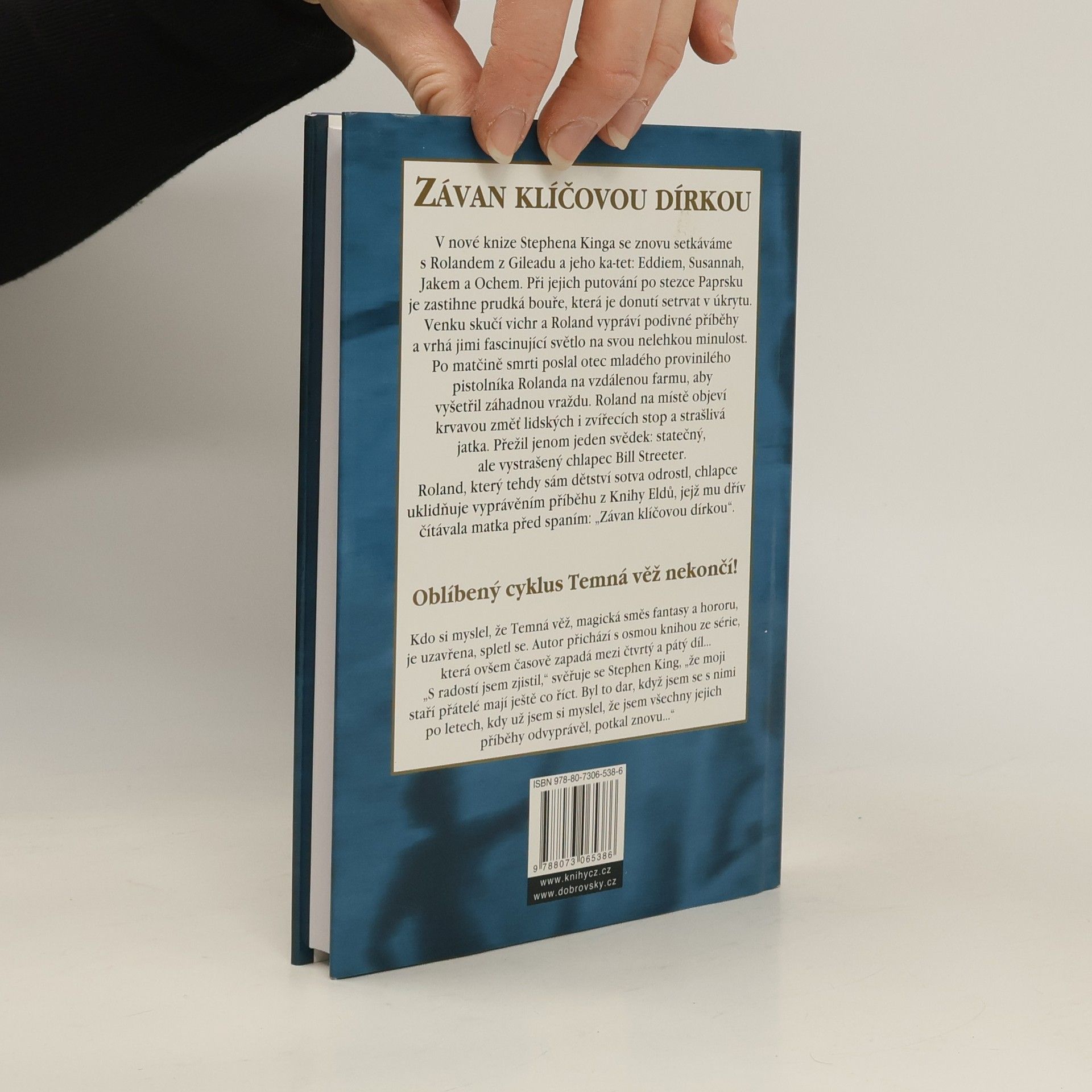 Čtenáři cyklu Temná věž se zde znovu setkají s Rolandem z Gileadu a jeho ka-tet: Eddiem, Susannah, Jakem a Ochem. Při jejich putování po stezce Paprsku je zastihne prudká bouře, která je donutí nějakou dobu setrvat v úkrytu. Venku skučí vichr a praskají stromy, a Roland zatím vypráví ne jeden podivný příběh, ale dva, a vrhá jimi fascinující světlo na svou těžkou minulost. Po smrti matky poslal otec mladého provinilého pistolníka Rolanda na vzdálenou farmu, aby vyšetřil záhadnou vraždu. Roland na místě objeví krvavou změť lidských i zvířecích stop a strašlivá jatka. Přežil jenom jeden svědek: statečný, ale vystrašený chlapec Bill Streeter. Roland, který tehdy sám dětství sotva odrostl, chlapce uklidňuje vyprávěním příběhu z Knihy Eldů, jejž mu dřív čítávala matka před spaním: Závan klíčovou dírkou. „Člověk není nikdy příliš starý na příběhy," říká Roland Billovi. „Muž i chlapec, dívka i žena, všichni žijí jen pro ně." Román Závan klíčovou dírkou se chronologicky řadí mezi čtvrtý a pátý díl cyklu Temná věž, tedy mezi knihy Čaroděj a sklo a Vlci z Cally. První vydání.