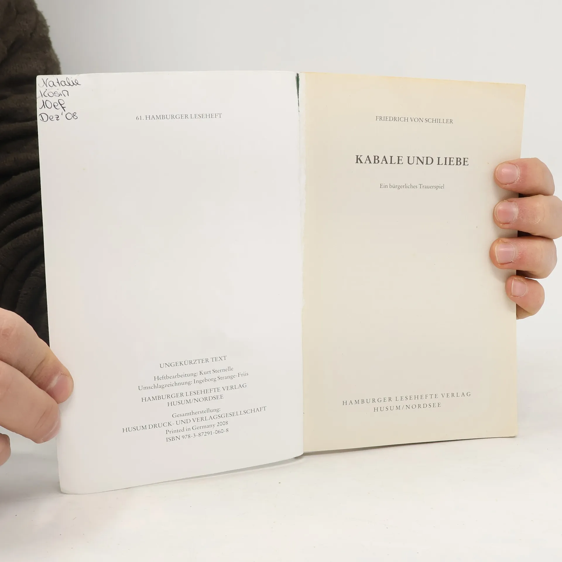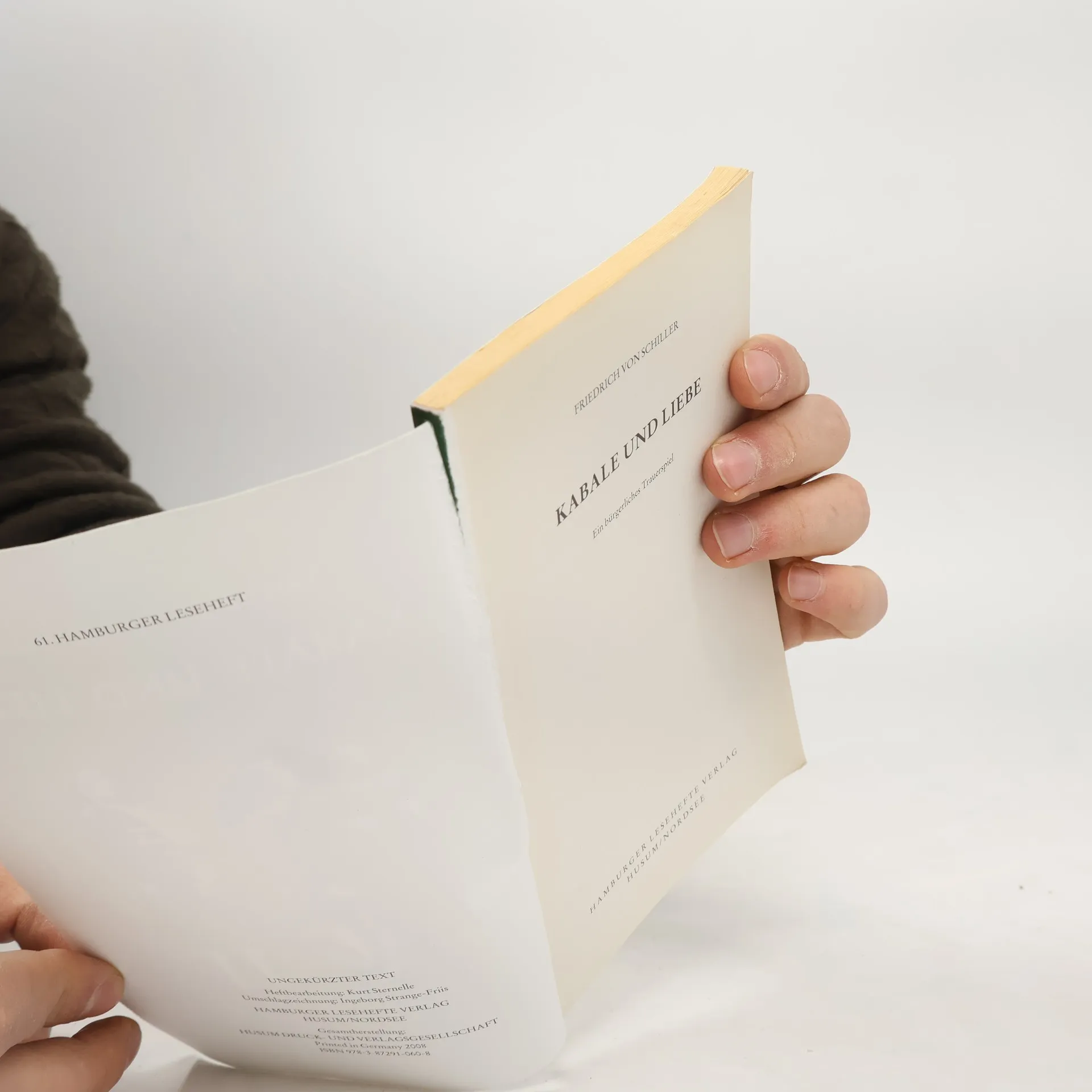 Die tragische Heldin des Stückes ist, wie die ursprüngliche Titelfassung zeigt, Luise Millerin. Sie und ihr Vater stehen als Vertreter des Bürgertums der Feudalschicht gegenüber. Luise Millerin und Ferdinand von Walter, der Sohn des Präsidenten am Hofe, vermögen nicht, diese Schranken zu durchbrechen, obwohl sie einander lieben. Mit Hilfe vertauschter Briefe wird ihre Liebe erschüttert, die sie erst wiederfinden, als sie in ihrer Todesstunde den Betrug durchschauen können. Dadurch wird aus dem Tendenzdrama eine echte Tragödie. Das Hamburger Leseheft enthält neben dem ungekürzten Text ein Nachwort, das sich mit der Entstehungsgeschichte des Dramas und der Geschichte der bürgerlichen Tragödie auseinandersetzt, sowie eine Zeittafel zu Friedrich von Schiller und umfangreiche Wort- und Sacherläuterungen.