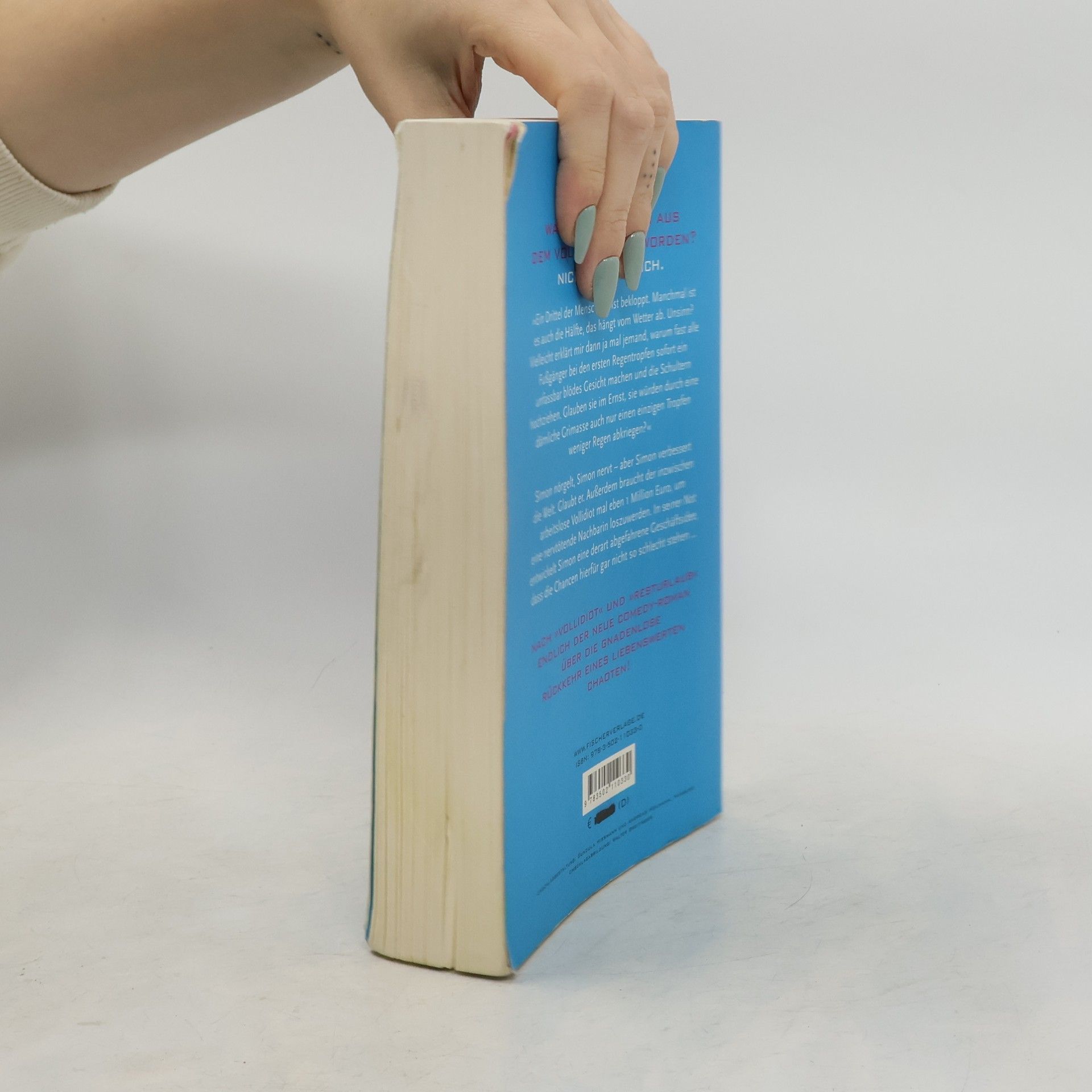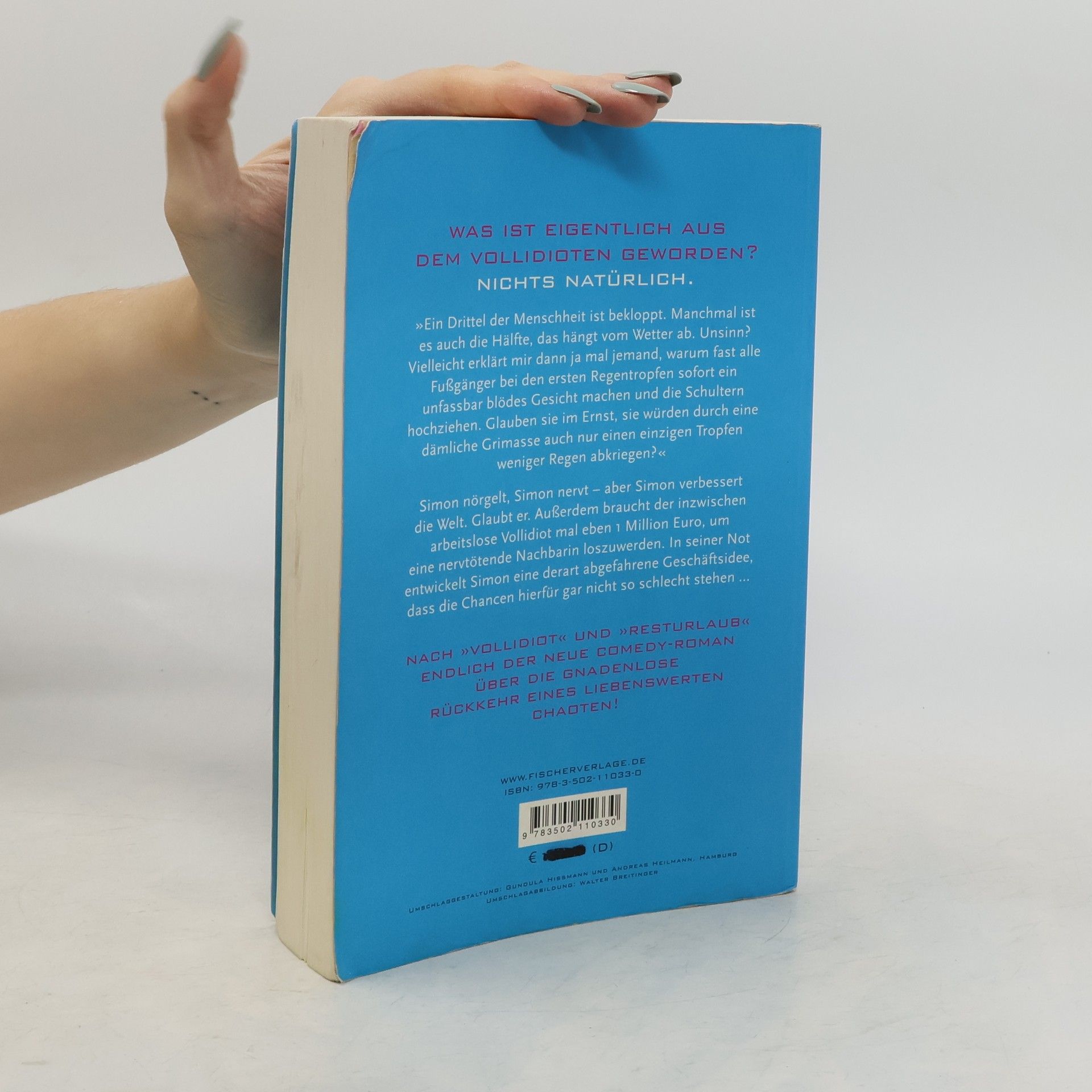 'Ein Drittel der Menschheit ist bekloppt. Manchmal ist es auch die Hälfte, das hängt vom Wetter ab. Unsinn? Vielleicht erklärt mir dann ja mal jemand, warum fast alle Fußgänger bei den ersten Regentropfen sofort ein unfassbar blödes Gesicht machen und die Schultern hochziehen. Glauben sie im Ernst, sie würden durch eine dämliche Grimasse auch nur einen einzigen Tropfen weniger Regen abkriegen? Das ist eine rhetorische Frage mit einer sehr, sehr traurigen Antwort: Sie glauben es.' Simon nörgelt, Simon nervt – aber Simon verbessert die Welt. Glaubt er. Außerdem braucht der inzwischen arbeitslose Vollidiot mal eben 1 Million Euro, um eine nervtötende Nachbarin loszuwerden. In seiner Not entwickelt Simon eine derart abgefahrene Geschäftsidee, dass die Chancen hierfür gar nicht so schlecht stehen. Nach ›Vollidiot‹ und ›Resturlaub‹ endlich der neue Comedy-Roman über die gnadenlose Rückkehr eines liebenswerten Chaoten!