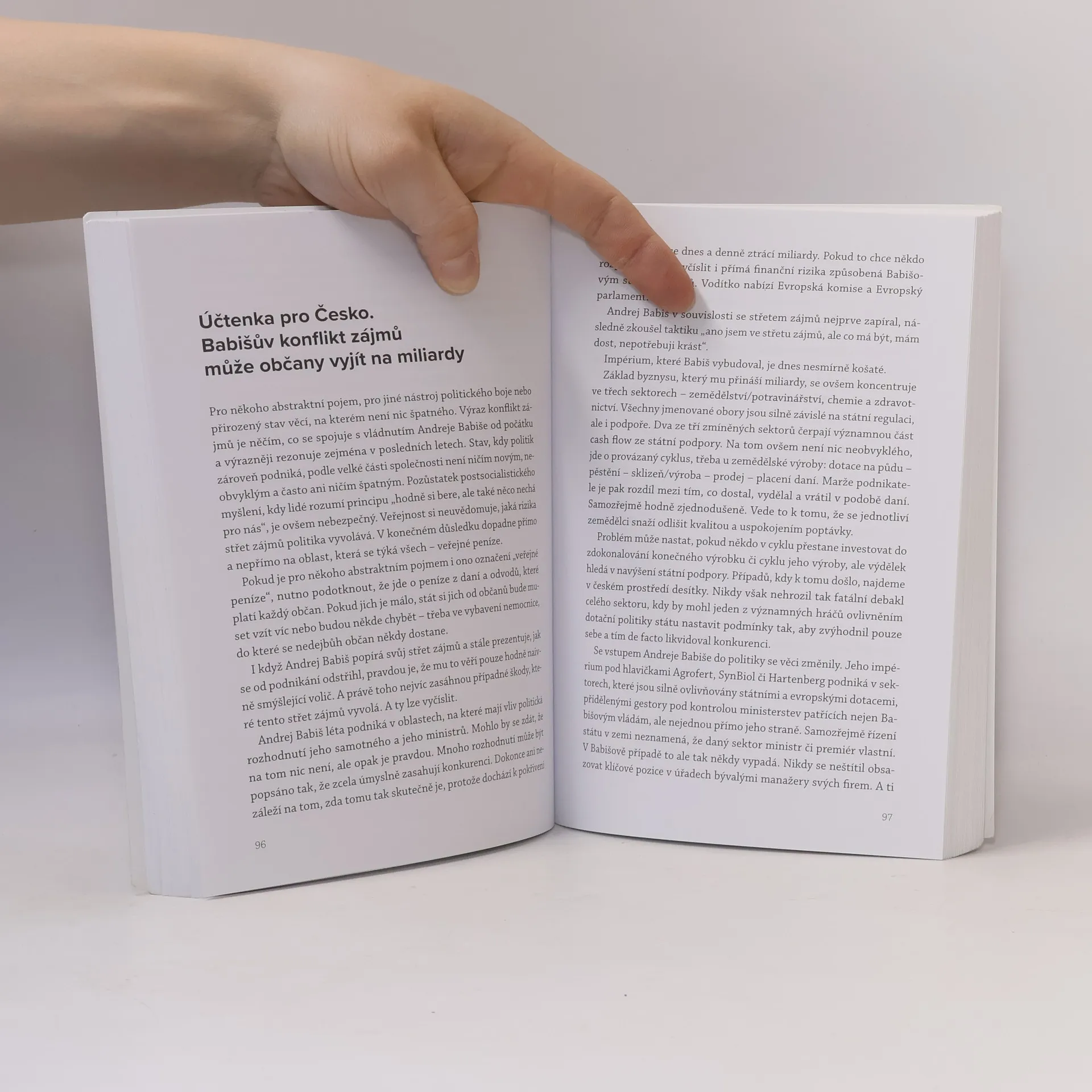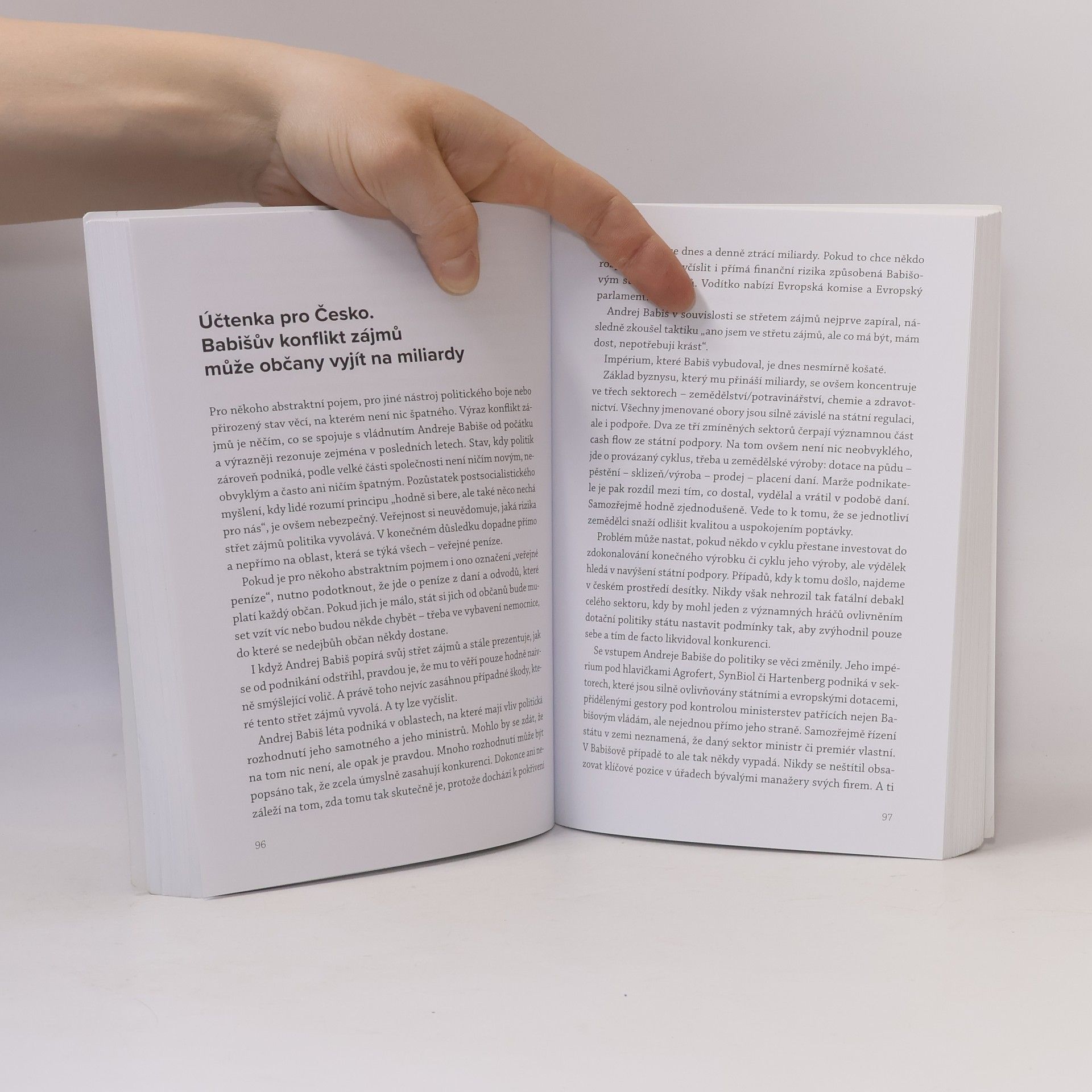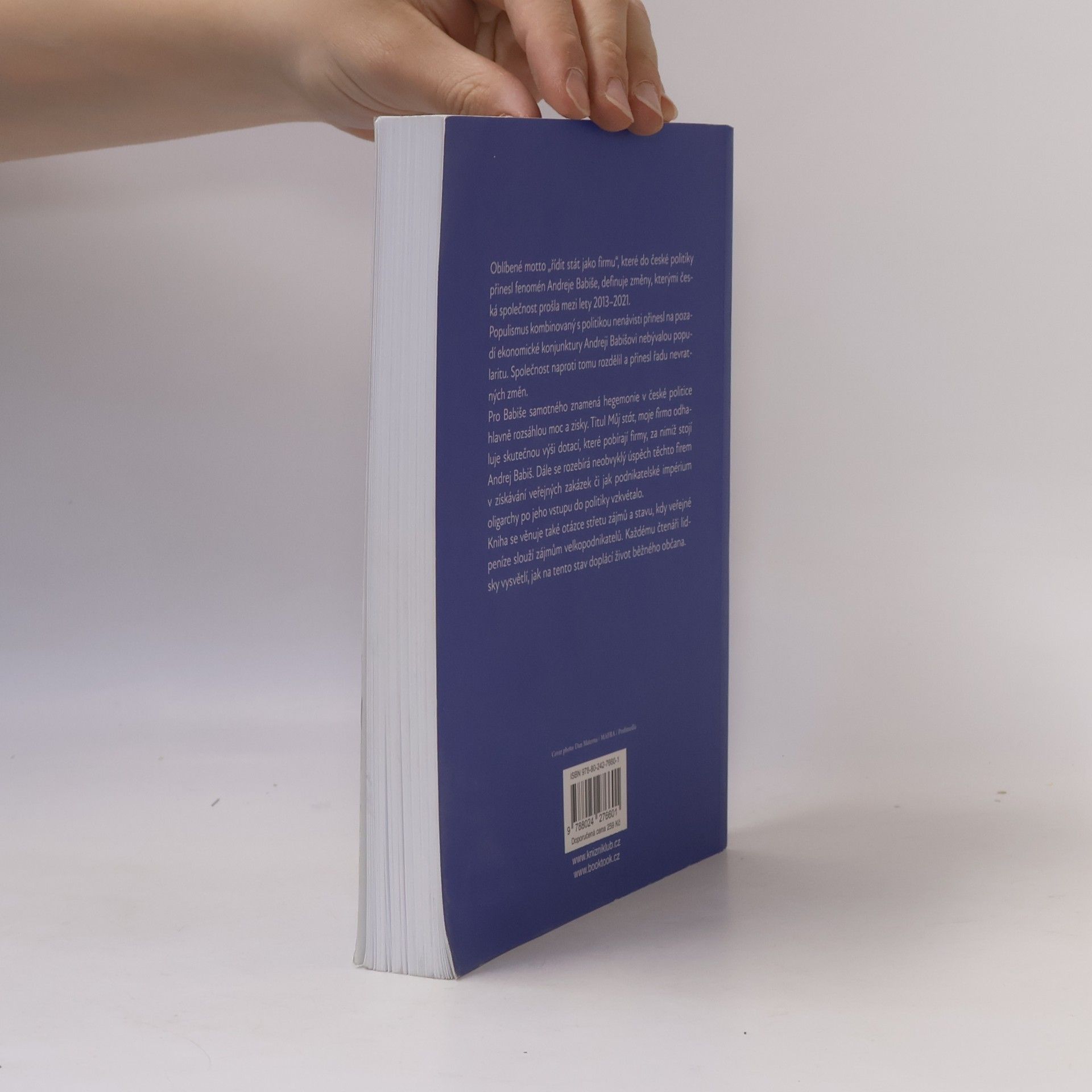 Oblíbené motto „řídit stát jako firmu“, které do české politiky přinesl fenomén Andreje Babiše, definuje změny, jimiž česká společnost prošla mezi lety 2013–2021. Populismus kombinován s politikou nenávisti přinesl na pozadí ekonomické konjunktury Andreji Babišovi nebývalou popularitu. Společnost zas nebývale rozdělil a přinesl řadu nevratných změn. Titul Můj stát, moje firma odhaluje skutečnou výši dotací, které pobírají firmy, jejichž konečným uživatelem výhod je Andrej Babiš, jejich neobvyklý úspěch v získávání veřejných zakázek či to, jak podnikatelské impérium oligarchy po jeho vstupu do politiky vzkvétalo. Kniha se věnuje také otázce konfliktu zájmů a stavu, kdy veřejné peníze slouží zájmům velkopodnikatelů. Osobitě sleduje zneužívání politicky získaných pravomocí či pokřivení konkurenčního boje a trhu jako takového. Každému čtenáři také lidsky vysvětlí, jak na tento stav doplácí život běžného občana. Pokud je náhod příliš mnoho, nejde o náhodu. A tou, zdá se, nebyl ani průnik oligarchy Babiše do české politiky. Ideálním načasováním dosáhl toho, co se žádnému jinému velkopodnikateli nepodařilo. Česko řídil jako firmu. Svou firmu.