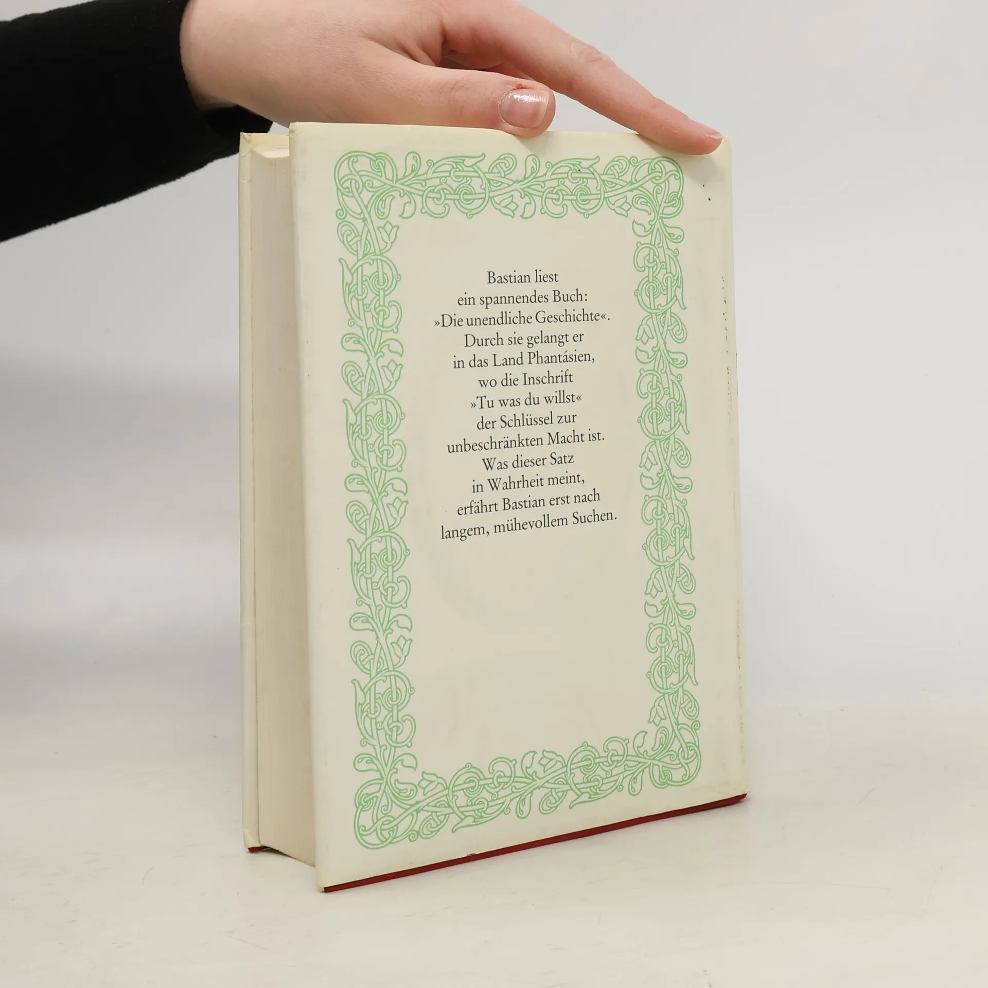 Der zehnjährige dickliche Bastian Balthasar Bux flüchtet sich vor den Nachstellungen der Schulkameraden in ein Antiquariat, wo ihn der Beginn eines Buches fasziniert, dessen Titel immer währendes Träumen verspricht. Bastian entwendet Die unendliche Geschichte und verliert sich auf dem Schulspeicher immer mehr in deren Lektüre: Die zunehmende Identifikation mit dem Helden Atréju ermöglicht ihm den Eintritt in die »Anderswelt«, in der er zum entscheidenden Protagonisten wird. Als Grenzgänger aus der Menschenwelt kommt ihm die Aufgabe zu, das vom »Nichts« bedrohte Phantásien und mit ihm dessen sterbenskranke »Kindliche Kaiserin« zu retten. Nach zahllosen Abenteuern auf dem Weg zu sich selbst, der von fantastischen Gestalten und mystischen Erkenntnissen gesäumt ist, löst Bastian mit Hilfe des »Wahren Willens« nicht nur seine Aufgabe, ihm gelingt auch die Rückkehr in die Realität, die er nun bewältigen kann.