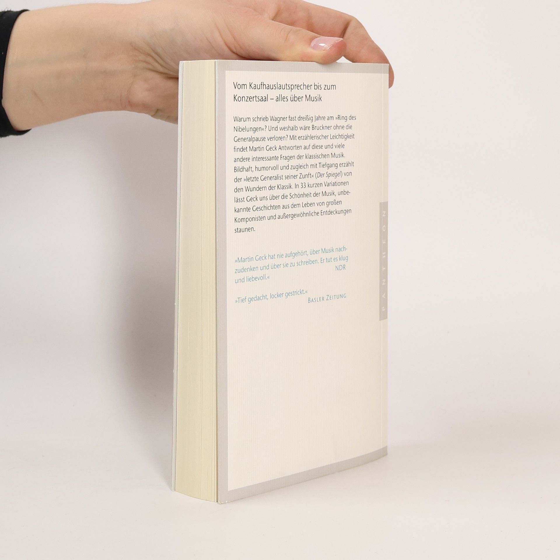 Warum spielen so viele Opern im Bordell? – Was Sie schon immer über Musik wissen wollten Ohne Musik wäre unser Leben nicht denkbar, doch ist sie mehr als die allgegenwärtige Beschallung aus Kaufhauslautsprechern oder in Aufzügen. Insbesondere die klassische Musik ist sinnliches Erleben, das durch Wissen noch intensiver und tiefer wird. In ihr öffnet sich uns eine Welt, die immer wieder verblüfft und in die erstaunte Frage mündet: Wie kommt das? Wie ist das möglich? Bildhaft, humorvoll und zugleich mit Tiefgang erzählt Martin Geck, der als »letzter Generalist seiner Zunft« (SPIEGEL) bezeichnet wird, von den Wundern klassischer Musik. In 33 kurzen Variationen lässt er uns über die Schönheit der Musik, unbekannte Geschichten aus dem Leben großer Komponisten und außergewöhnliche Entdeckungen staunen. Dieses Buch erschien im Siedler-Verlag unter dem Titel »Wenn der Buckelwal in die Oper geht: 33 Variationen über die Wunder klassischer Musik«. Ausstattung: mit Abbildungen