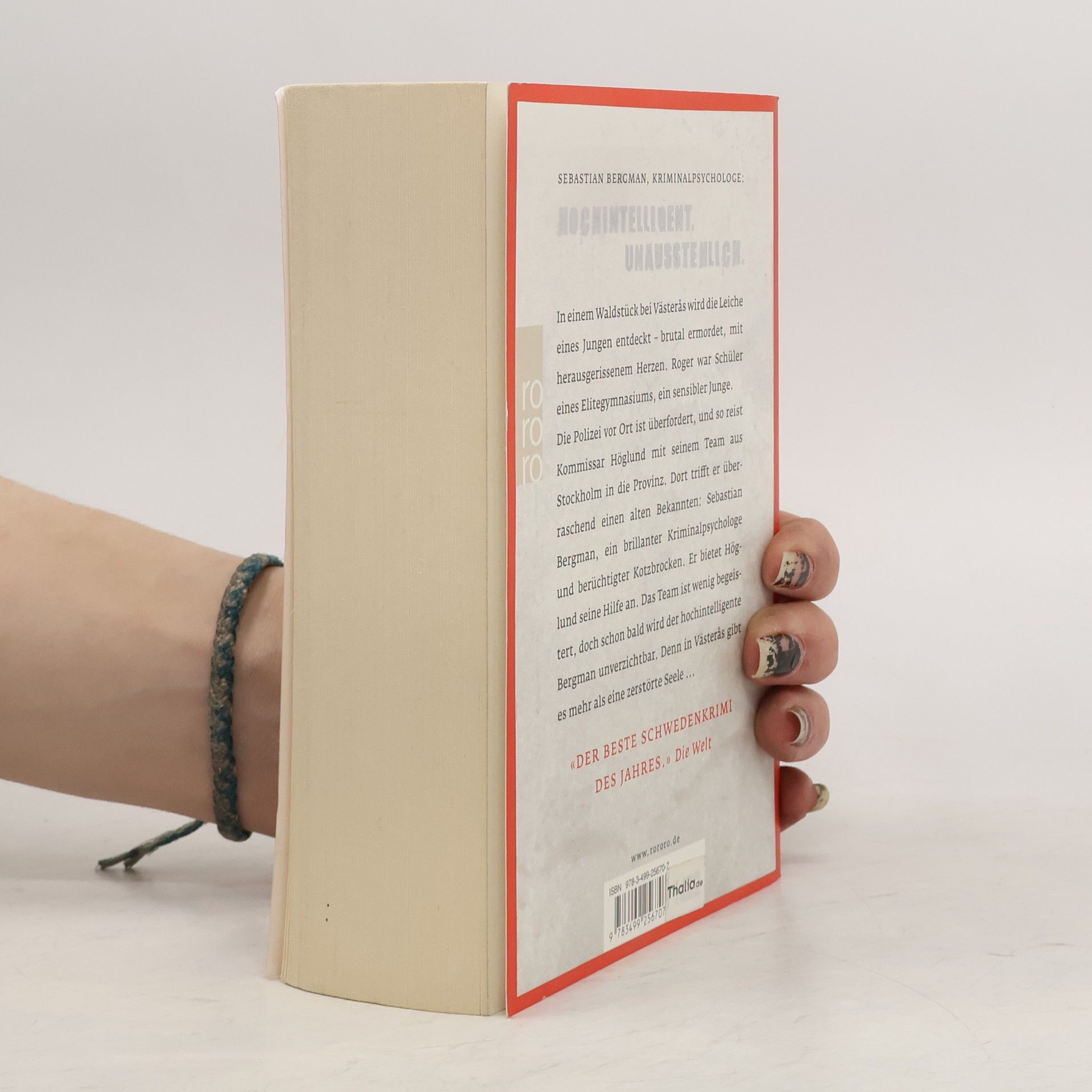 Sebastian Bergman, Kriminalpsychologe: Hochintelligent. Unausstehlich. In einem Waldstück bei Västerås wird die Leiche eines Jungen entdeckt – brutal ermordet, mit herausgerissenem Herzen. Roger war Schüler eines Elitegymnasiums, ein sensibler Junge. Die Polizei vor Ort ist überfordert, und so reist Kommissar Höglund mit seinem Team aus Stockholm in die Provinz. Dort trifft er überraschend einen alten Bekannten: Sebastian Bergman, ein brillanter Kriminalpsychologe und berüchtigter Kotzbrocken. Er bietet Höglund seine Hilfe an. Das Team ist wenig begeistert, doch schon bald wird der hochintelligente Bergman unverzichtbar. Denn in Västerås gibt es mehr als eine zerstörte Seele ... Sebastian Bergmans erster Fall