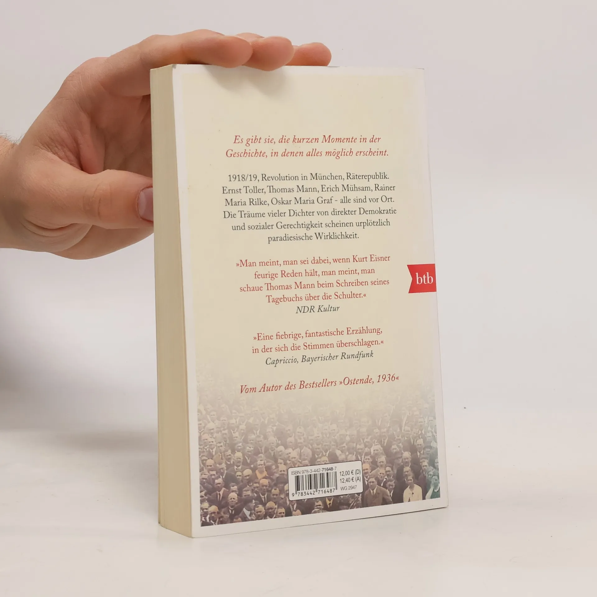 1918/19, Revolution in München, Räterepublik. Ernst Toller, Thomas Mann, Erich Mühsam, Rainer Maria Rilke, Oskar Maria Graf - alle sind vor Ort. Die Träume vieler Dichter von direkter Demokratie und sozialer Gerechtigkeit scheinen urplötzlich paradiesische Wirklichkeit. Wie in seinem gefeierten internationalen Bestseller »Ostende« verwandelt Volker Weidermann einen geschichtlichen Moment in eine mitreißende Erzählung aus der Perspektive der historischen Protagonisten: spannend wie ein Thriller - und doch ist nichts erfunden.
