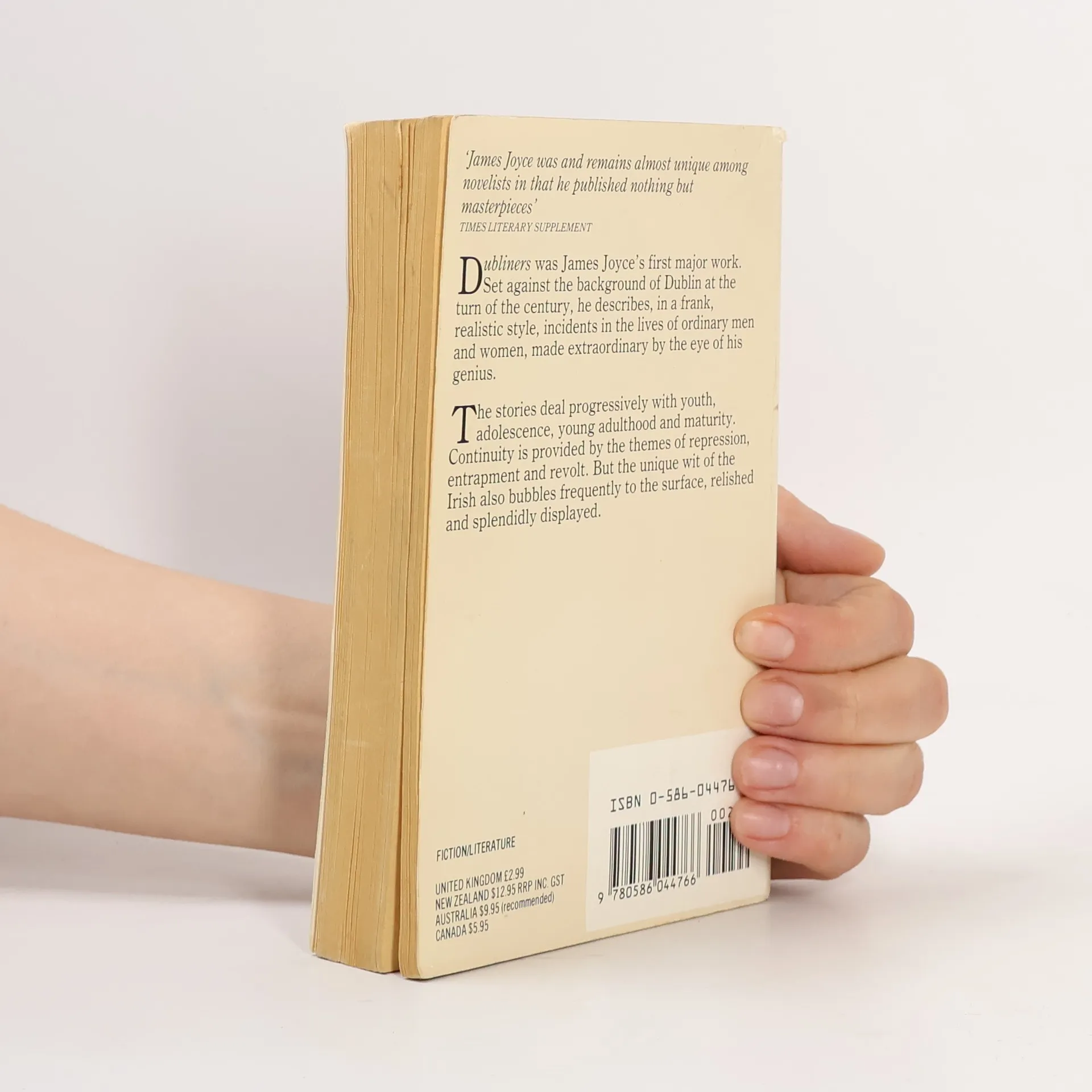 Dubliners was James Joyce's first major work. Set against the background of Dublin at the turn of the century, he describes, in a frank, realistic style, incidents in the lives of ordinary men and women, made extraordinary by the eye of his genius. The stories deal progressively with youth, adolescence, young adulthood and maturity. Continuity is provided by the themes of repression, entrapment and revolt. But the unique wit of the Irish also bubbles frequently to the surface, relished and splendidly displayed. (back cover)