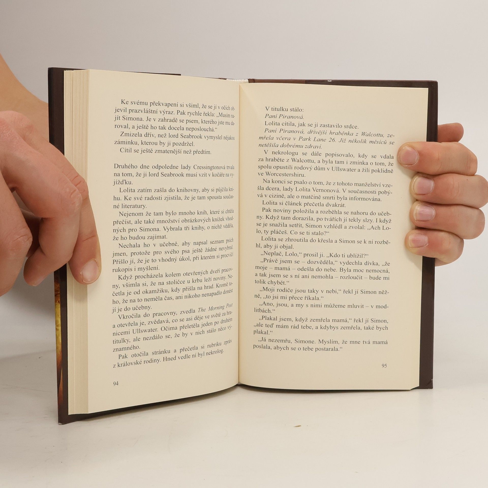 Lady Lolita Vernonová, dcera zesnulého hraběte z Walcottu a Vernonu, se rozhodne utéci z domova. Nic jiného jí, zdá se, nezbývá, pokud se nechce podřídit svému nevlastnímu otci, který se ji snaží dotlačit ke sňatku se svým obchodním partnerem. Na útěku se dívka setká s malým chlapcem, Simonem, jehož týrá jeho nevlastní matka. Lolitě je malého chlapce líto, proto se s ním domluví, že ho zaveze k jeho strýci, lordu Seabrookovi, který žije u jezera Ullswater. Lolita se vydává za Simonovu guvernantku, aby s chlapcem mohla zůstat. Na hradě se však objeví také lady Cressingtonová, která se chce za lorda Seabooka provdat, a přítomnost jiné krásné mladé dámy se jí nehodí. Podaří se Lolitě utajit před svým nevlastním otcem, kde se schovává? A jak dopadne její střet s lady Cressingtonovou? Najde dívka štěstí, které celou dobu hledá?