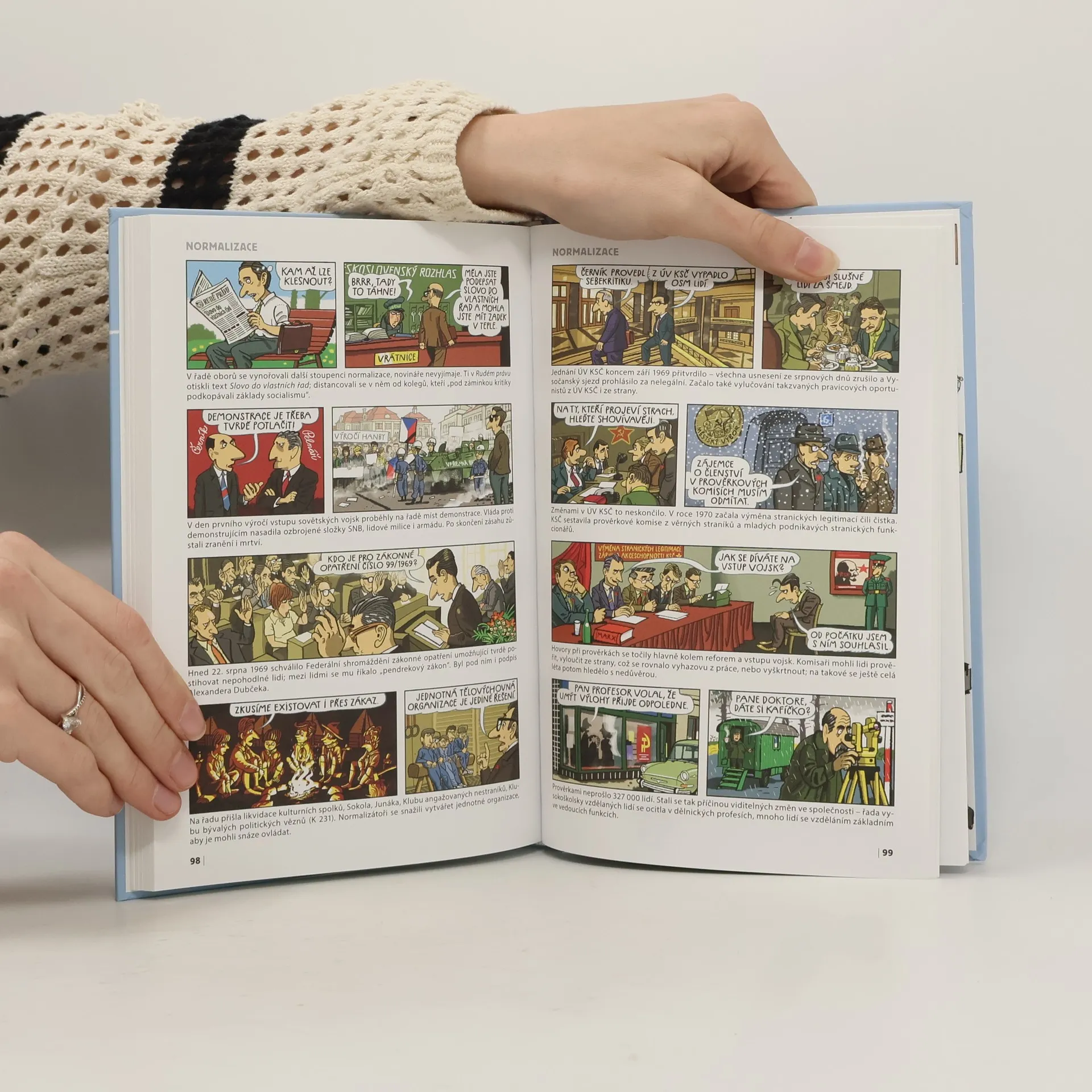 Víte, kdo poprvé vyslovil výraz železná opona? Patřilo Československo mezi první tři země, kde se začaly stavět domy z panelů? V kterých částech Prahy nastupovali lidé do stanic metra Fučíkova, Moskevská, Leninova? A podařilo se někomu překonat rekord Emila Zátopka z olympijských her v Helsinkách v roce 1952, na kterých vyhrál hned 3 zlaté medaile? Na tyto otázky a spoustu dalších najdete odpovědi v této výjimečné obrázkové publikaci. Bohatě ilustrovaný komiks provází dějinami poválečného Československa a érou totality ve všech jejích podobách. Přístupnou a srozumitelnou formou přivádí mladé čtenáře ke komplikované a proměnlivé době let 1945–1989 v Československu, která v mnohém předurčila i současný vývoj demokratické společnosti. Dospěláci zase zavzpomínají na svoje dětství a mládí.