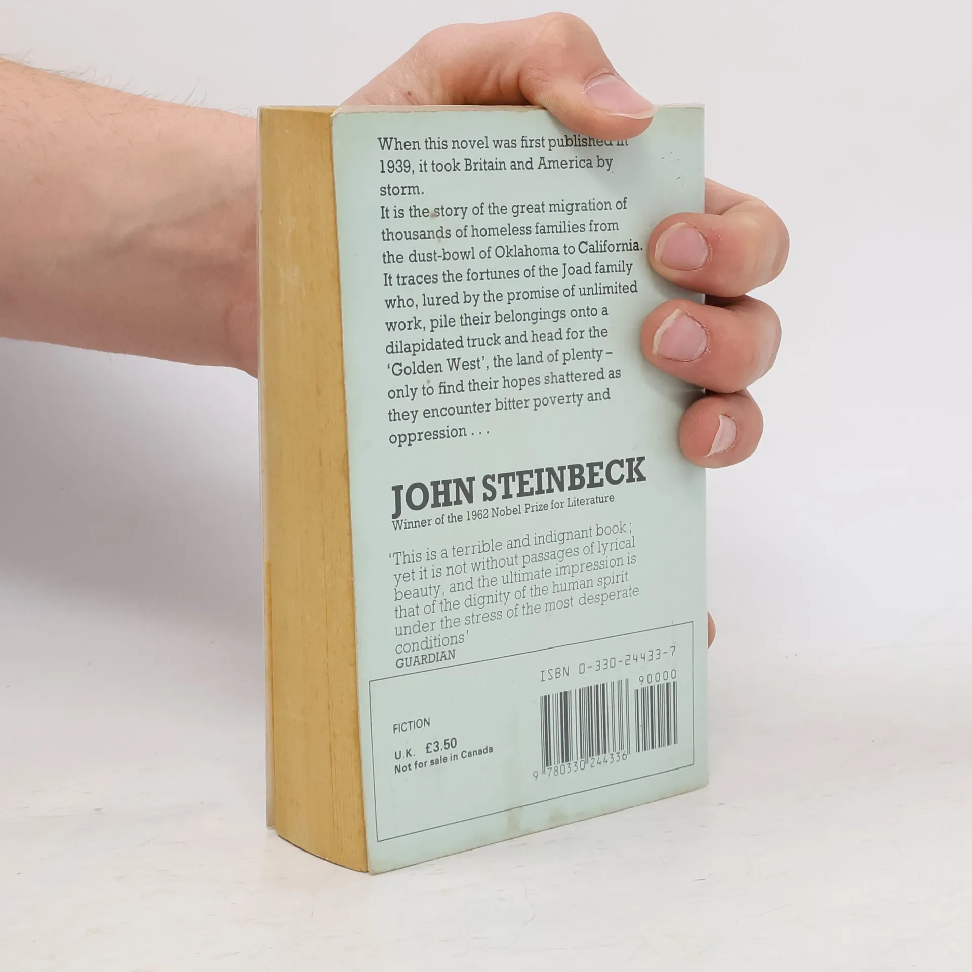 A novel concerning the plight of the Okies - the refugee farmers and sharecroppers fleeing the dustbowl of Oklahoma. Attracted by the golden promise of California, they meet only with abject hostility, shame and destitution.