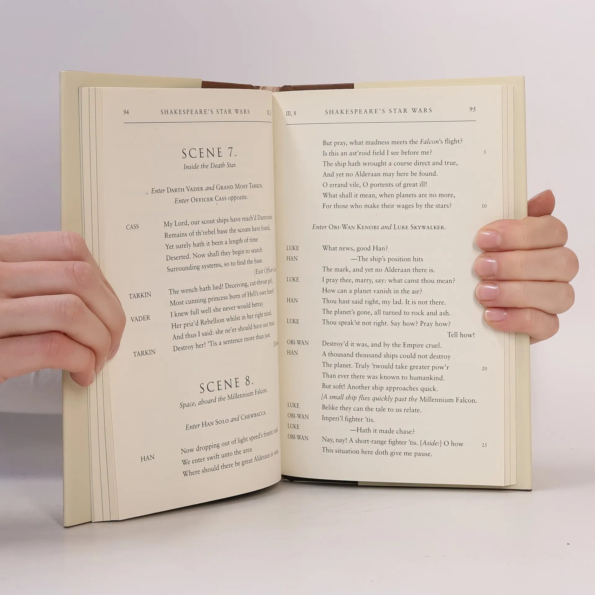 The New York Times Best Seller Experience the Star Wars saga reimagined as an Elizabethan drama penned by William Shakespeare himself, complete with authentic meter and verse, and theatrical monologues and dialogue by everyone from Darth Vader to R2D2. Return once more to a galaxy far, far away with this sublime retelling of George Lucas’s epic Star Wars in the style of the immortal Bard of Avon. The saga of a wise (Jedi) knight and an evil (Sith) lord, of a beautiful princess held captive and a young hero coming of age, Star Wars abounds with all the valor and villainy of Shakespeare’s greatest plays. Authentic meter, stage directions, reimagined movie scenes and dialogue, and hidden Easter eggs throughout will entertain and impress fans of Star Wars and Shakespeare alike. Every scene and character from the film appears in the play, along with twenty woodcut-style illustrations that depict an Elizabethan version of the Star Wars galaxy. Zounds! This is the book you’re looking for.