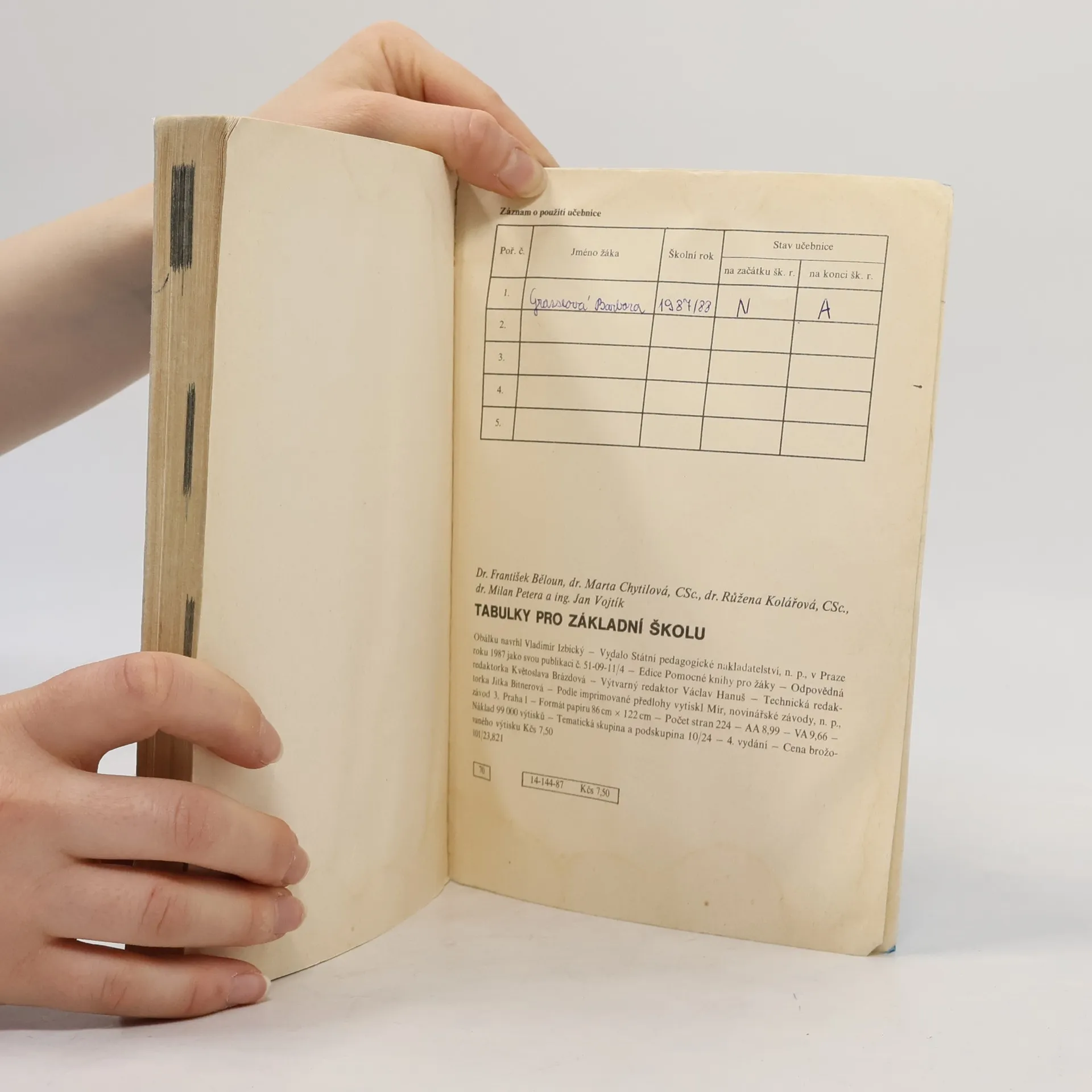 Tabulky pro základní školu, František Běloun, Chytilová Marta, Růžena Kolářová, Milan Petera, Jan Vojtík