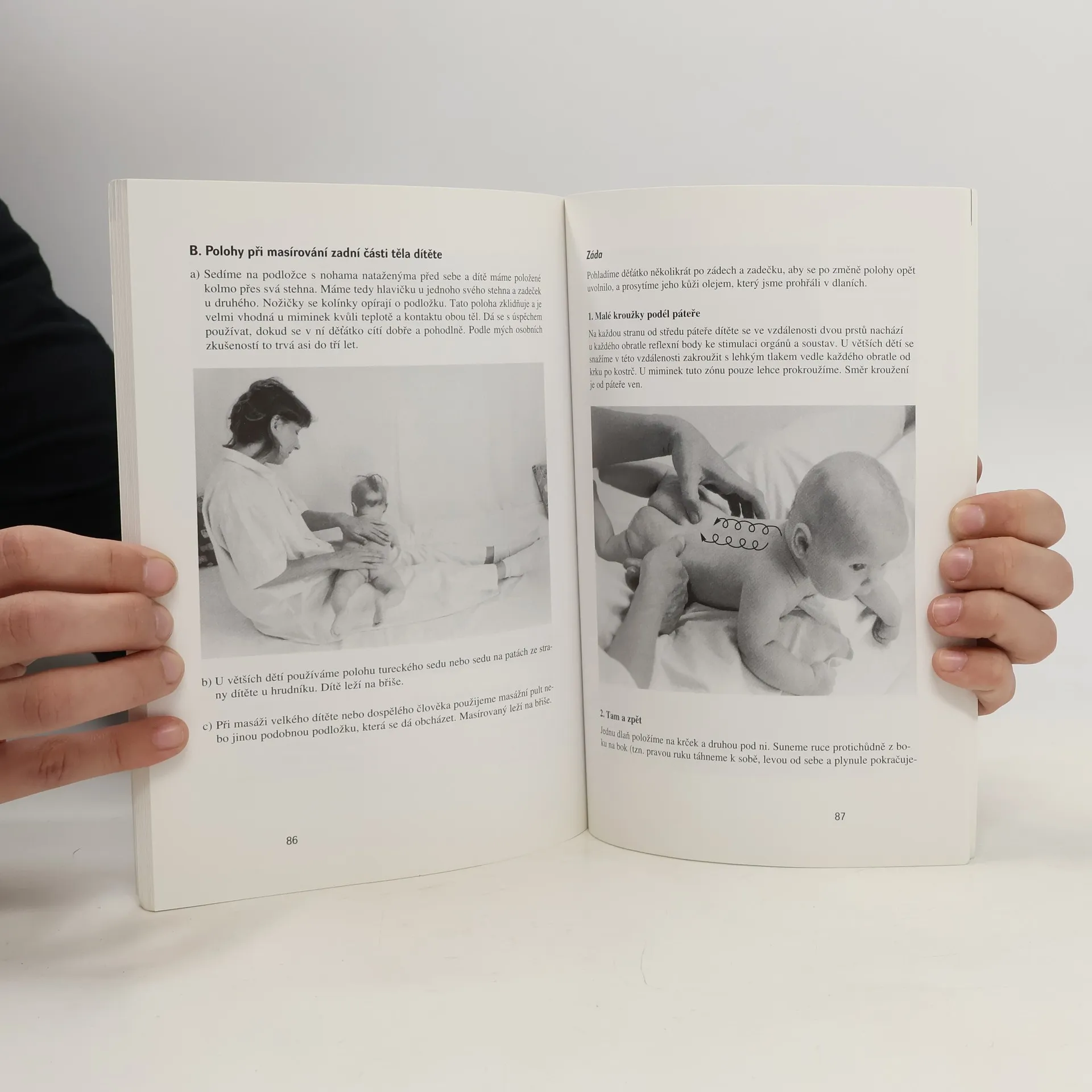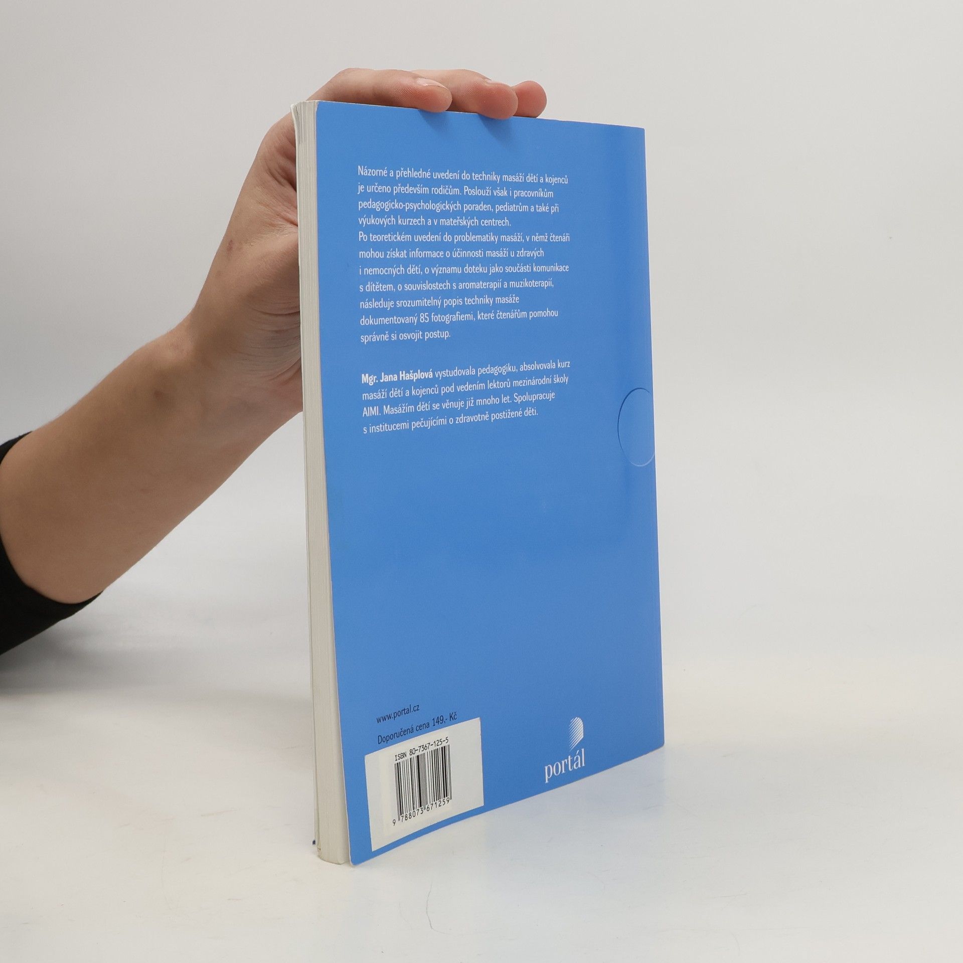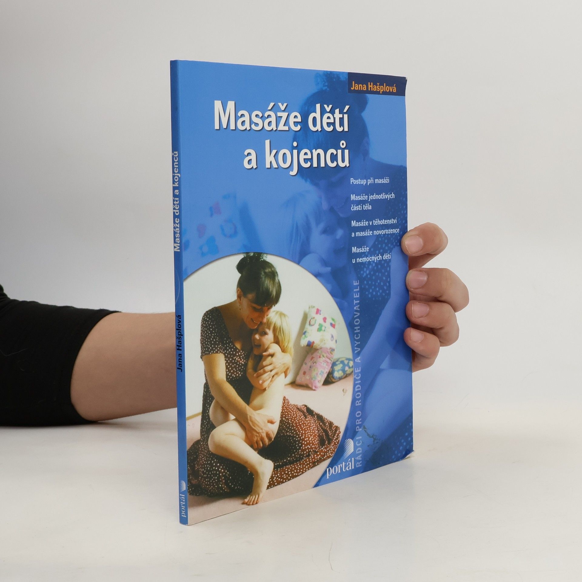 Postup při masáži, masáže jednotlivých částí těla, masáže v těhotenství a masáže novorozence, masáže u nemocných dětí. Názorné a přehledné uvedení do techniky masáží dětí a kojenců určené ať už pro výukové kurzy, pro profesionální pracovníky i pro samotné rodiče. Po teoretickém uvedení do problematiky masáží (účinnost masáží u zdravých i nemocných dětí, význam doteku jako součásti komunikace s dítětem, souvislosti a aroma- a muzikoterapií...) tvoří jádro knihy vlastní technika masáže, jež je ilustrována na cca. 75 fotografiích, které zájemcům pomohou osvojit si vlastní postup.... celý text