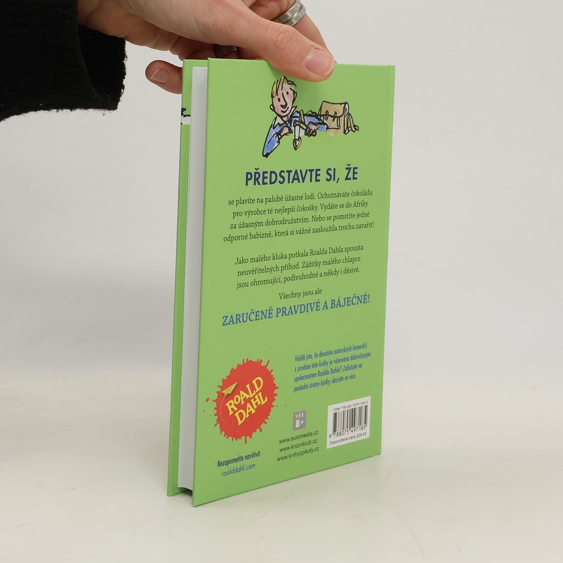 Jako malého kluka potkalo Roalda Dahla spoustu neuvěřitelných příhod. Navštěvoval internátní školu, kde se setkal s šikanou a přísnými tresty, které si dnes už sotva dovedeme představit. (Už asi tušíte, odkud se vzala strašná slečna Kruťáková a Drtičova základní škola!) Prázdniny trávil na palubě rybářské lodi. Testoval čokoládu pro pana Cadburyho. Zažil úžasné africké dobrodružství. Se svými kamarády se pomstil paní Pratchettové, majitelce cukrárny plné báječných laskominek, ale taky pěkně odporné babizně, která si zasloužila trochu zavařit. Zážitky malého chlapce jsou veselá, podivuhodná i děsivá dobrodružství. Všechna jsou ale zaručeně pravdivá. Pro dospělé i malé čtenáře od 8 let.