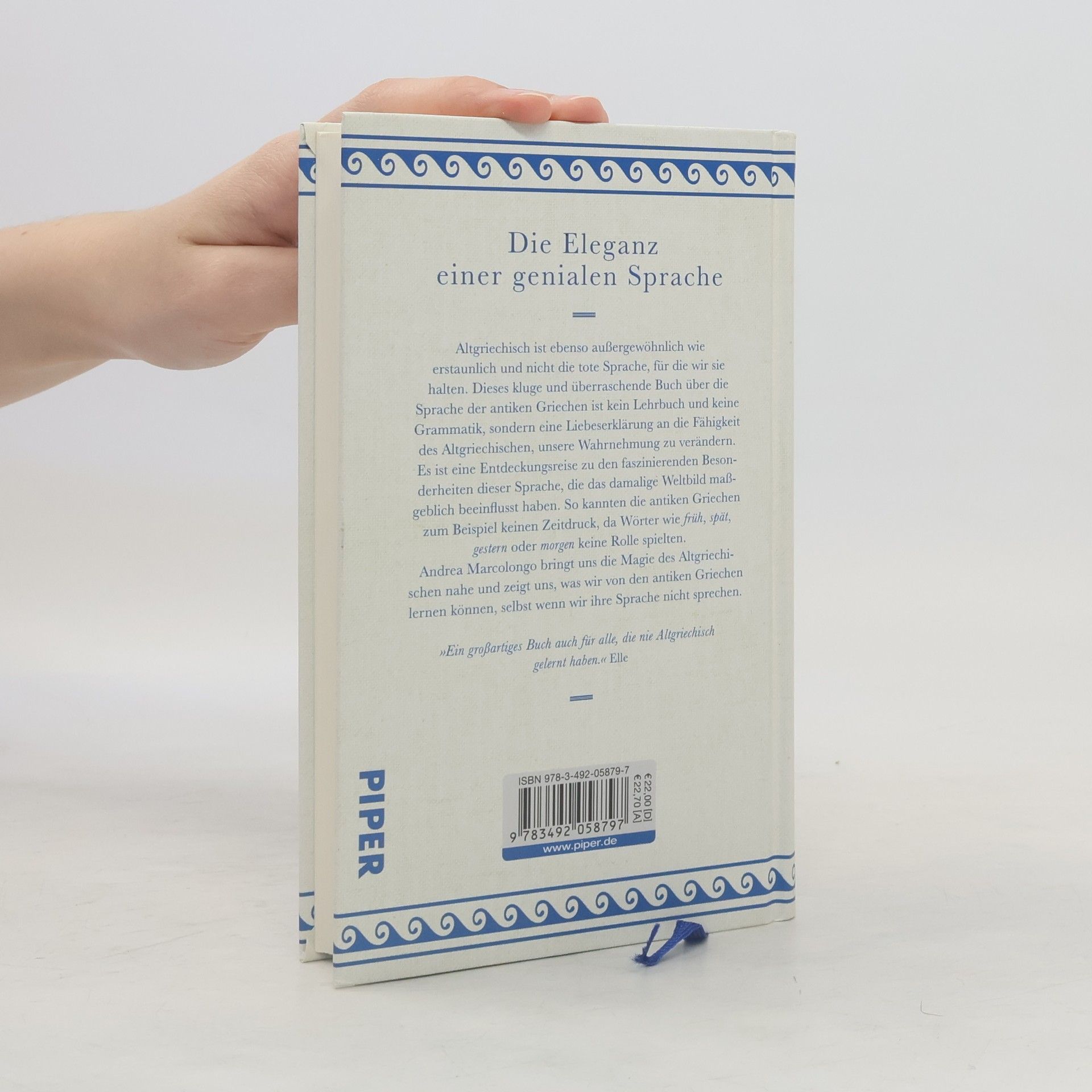 Altgriechisch ist ebenso außergewöhnlich wie erstaunlich und nicht die tote Sprache, für die wir sie halten – das hat Andrea Marcolongo erkannt. Ihr kluges und überraschendes Buch über die Sprache der antiken Griechen ist kein Lehrbuch und keine Grammatik, sondern eine Liebeserklärung an die Fähigkeit des Altgriechischen, unsere Wahrnehmung zu verändern. Es ist eine Entdeckungsreise zu den faszinierenden Besonderheiten dieser Sprache, die das damalige Weltbild maßgeblich beeinflusst haben. So kannten die antiken Griechen zum Beispiel keinen Zeitdruck, da Wörter wie früh, spät, gestern oder morgen keine Rolle spielten. Oder sie hatten die Möglichkeit, der Zweisamkeit mit dem Dual eine ganz eigene Bedeutung zu geben. Andrea Marcolongo bringt uns die Magie des Altgriechischen nahe und zeigt uns, was wir von den antiken Griechen lernen können, selbst wenn wir ihre Sprache nicht sprechen.