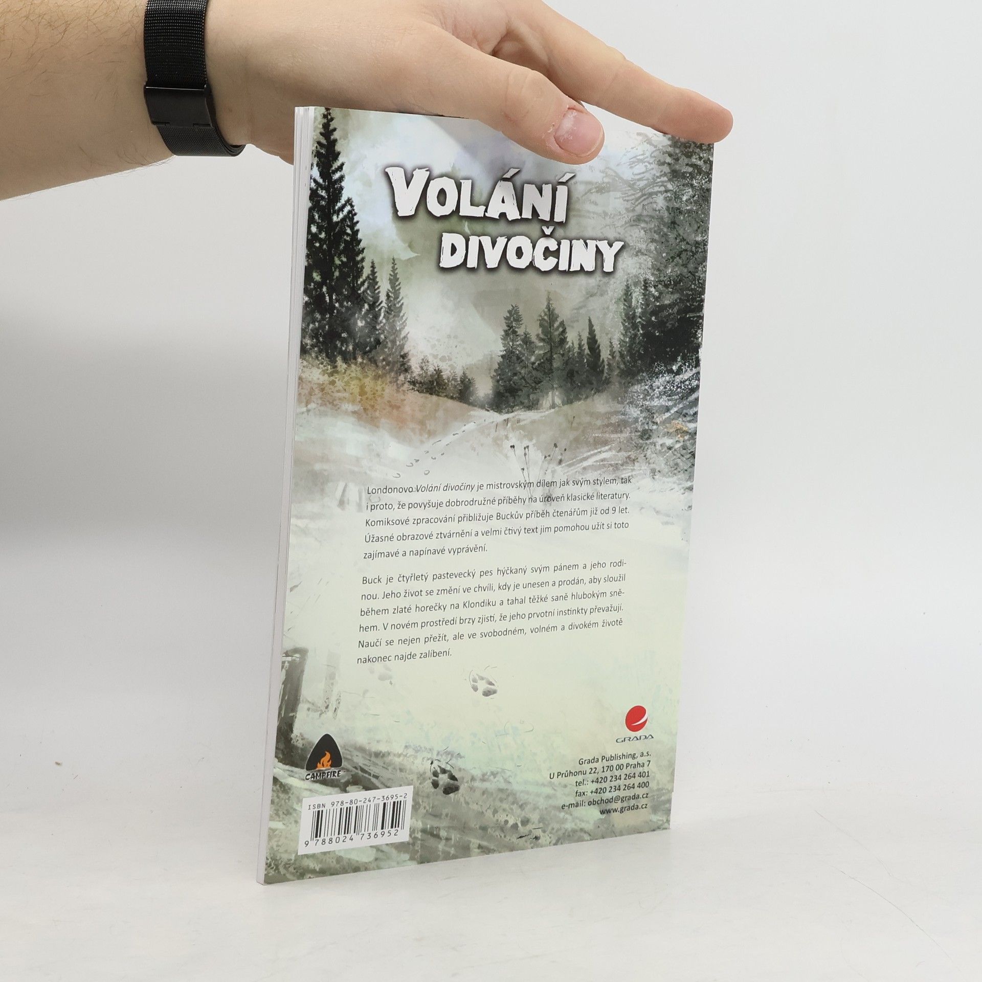 Londonovo Volání divočiny je mistrovským dílem jak svým stylem, tak i proto, že povyšuje dobrodružné příbehy na úroveň klasické literatury. Komiksové zpracování přibližuje Buckův příběh čtenářům již od 9 let. Úžasné obrazové ztvárnění a velmi čtivý text jim pomohou užít si toto zajímavé a napínavé vyprávění. Buck je čtyřletý pastevecký pes hýčkaný svým pánem a jeho rodinou. Jeho životse změní ve chvíly, kdy je unesen a prodán, aby služil během zlaté horečky na Klondiku a tahal těžké sáně hlubokým sněhem. V novém prostředí brzy zjistí, že jeho prvotní instinkty převažují. Naučí se nejen přežít, ale ve svobodném, volném a divoém životě nakonec najde zalíbení.