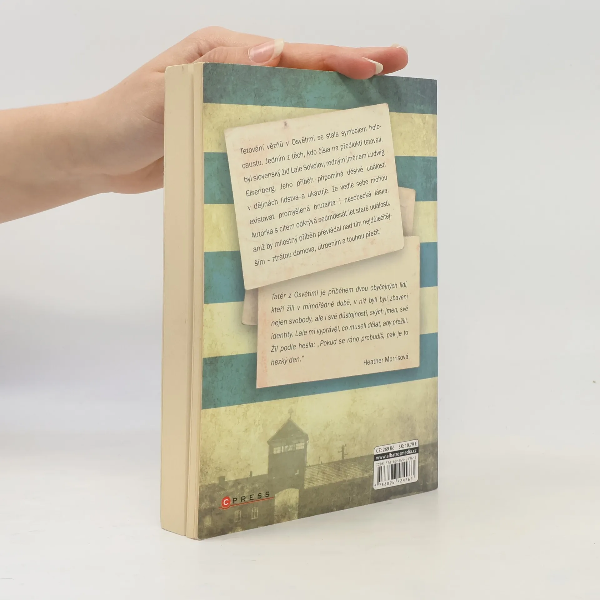 Tetování vězňů v Osvětimi se stala symbolem holocaustu. Jedním z těch, kdo čísla na předloktí tetovali, byl slovenský Žid Lale Sokolov, rodným jménem Ludwig Eisenberg. Jeho příběh připomíná děsivé události v dějinách lidstva a ukazuje, že vedle sebe mohou existovat promyšlená brutalita i nesobecká láska. Autorka s citem odkrývá sedmdesát let staré události, aniž by milostný příběh převládal nad tím nejdůležitějším – ztrátou domova, utrpením a touhou přežít.