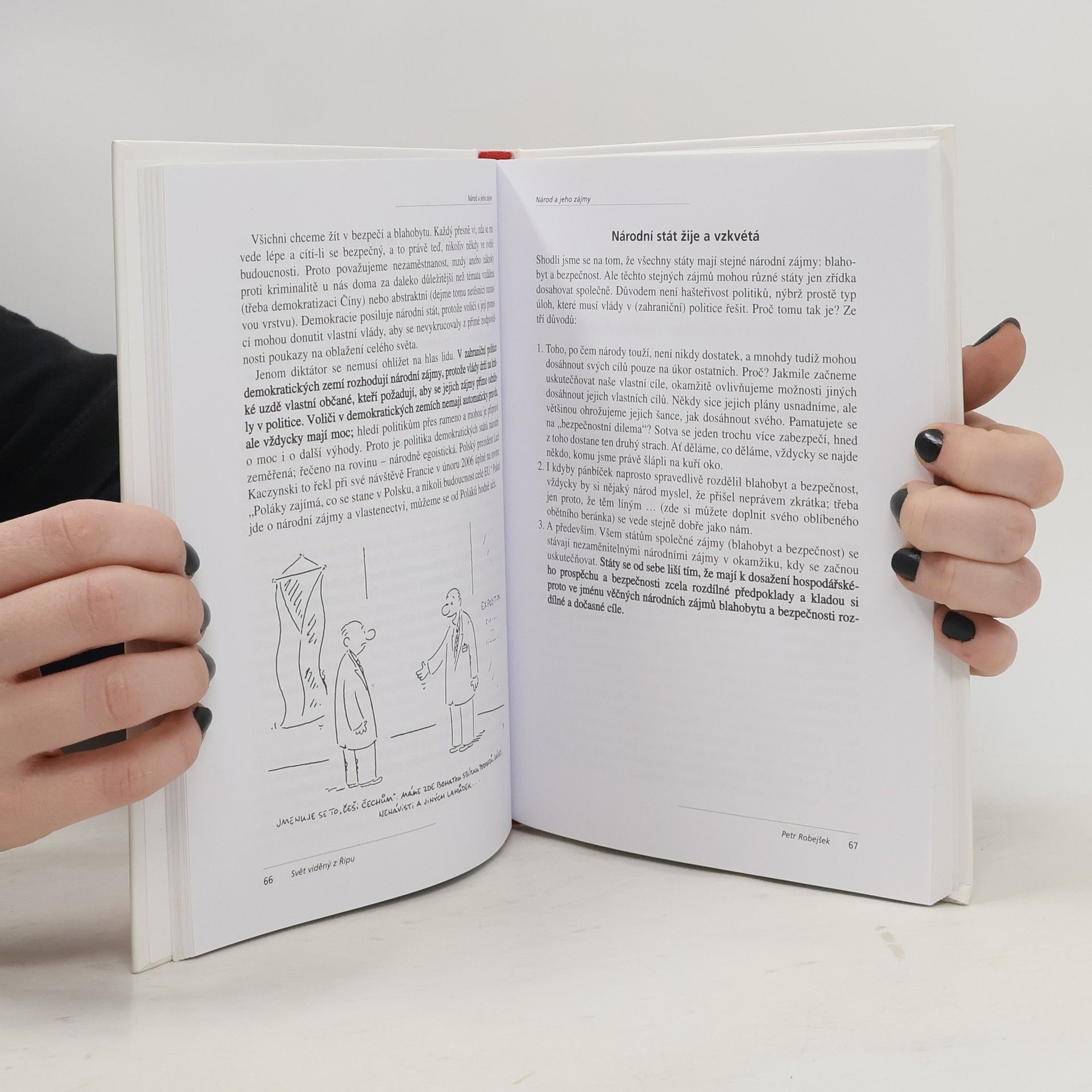 Zahraniční politika pro každého z nás Autor útlé publikace, vzděláním sociolog s politologicko-ekonomickou profilací a dlouholetý ředitel hamburského institutu Haus Rissen, přináší patnáct kapitol věnovaným jednotlivým tématům mezinárodní politiky. Publikace cílená na převážně laickou veřejnost je rozdělena do regionálně definovaných kapitol (Rusko na cestě, Evropská unie – velký skok) a tematicky dělených epizod (Národ a jeho zájmy, Politik: věrný šerpa, nebo podlý povaleč), Robejškův text je doplněn ilustracemi Vladimíra Jiránka.... celý text