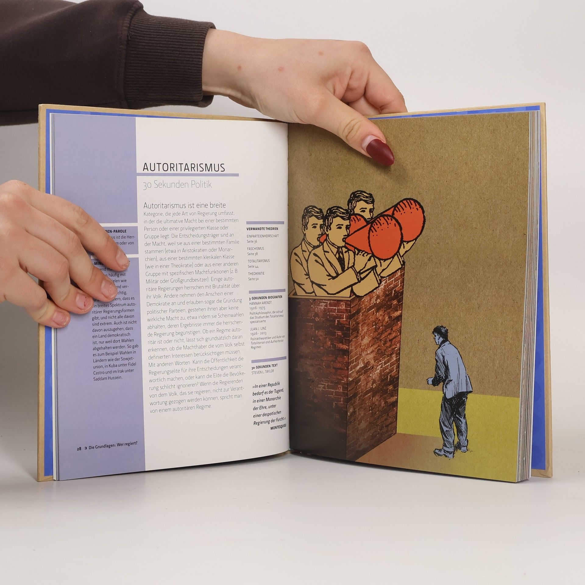 50 politische Ideen, die das Zusammenleben der Menschen bestimmen: Politik in 30 Sekunden bringt Licht in den vermeintlichen Irrgarten politischer Konzepte und Theorien. Politikwissenschaftler aller Couleur wurden aufgefordert, 50 politische -ismen, -archien und -kratien, die seit der Antike das Leben der Menschen geprägt haben, ohne Umschweife kurz und prägnant zu erklären. Auf nicht mehr als zwei Seiten präsentiert dieses Buch in Wort und Bild je eine politische Idee IBM und bekanntlich sagt ein Bild mehr als 1000 Politikerworte. (Verlagswerbung)