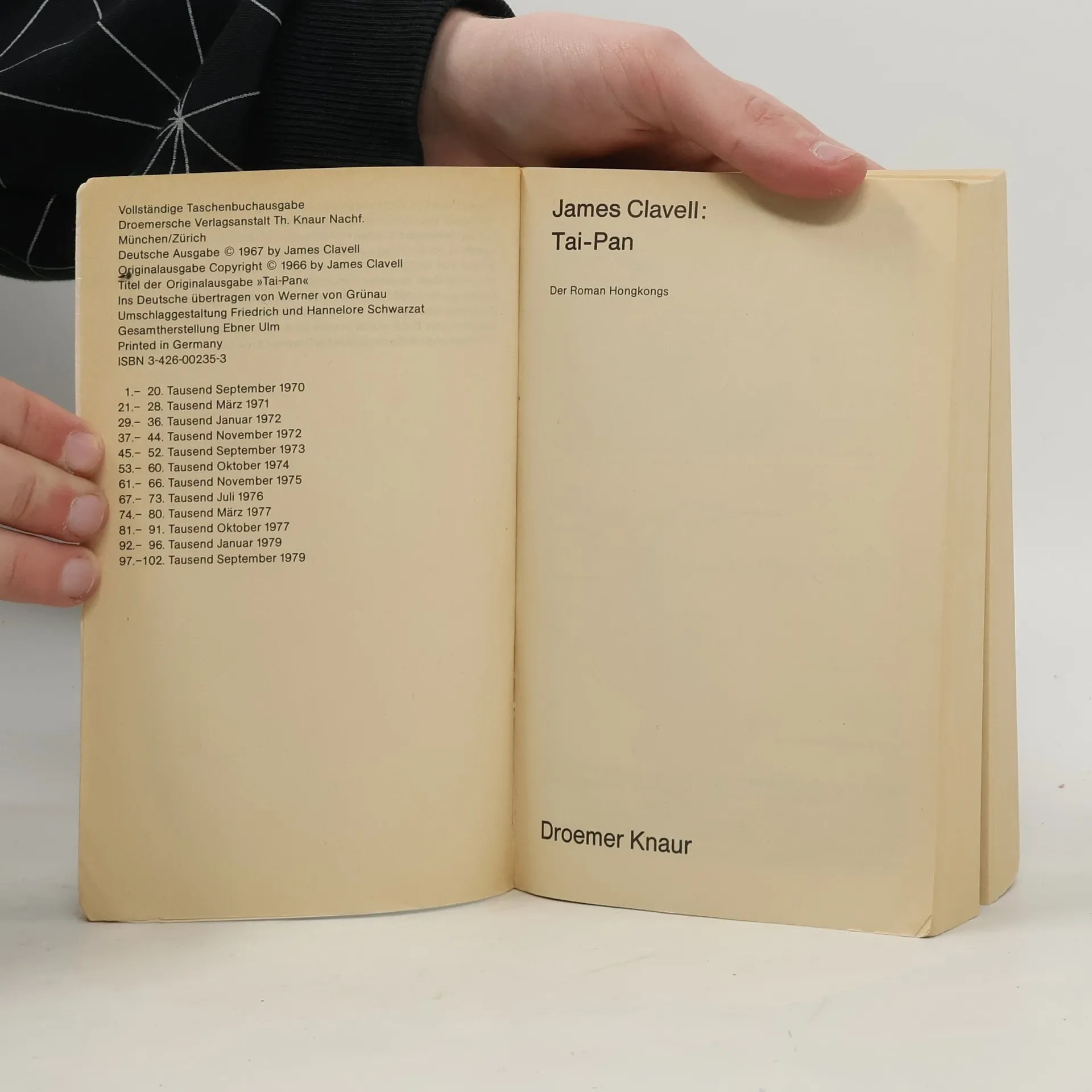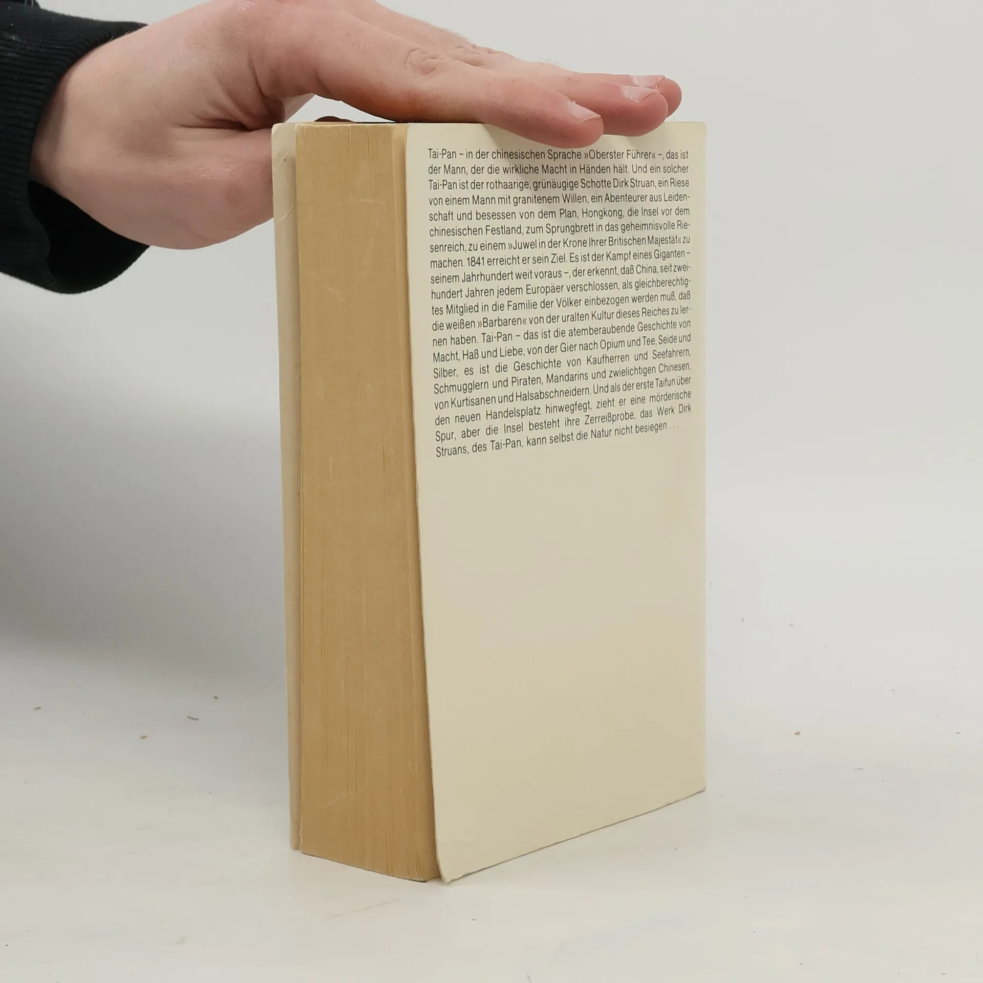 Eine atemberaubende Geschichte um Macht, Hass und Liebe, von der Gier nach Opium und Tee, Seide und Silber ... Tai-Pan heißt in China der "Oberste Führer", der die Macht wirklich in Händen hält. Ein solcher Tai-Pan ist der rothaarige, grünäugige Schotte Dirk Struan, ein Riese von einem Mann mit einem Willen aus Granit. Der Seefahrer und begnadete Kaufmann ist von dem Traum beseelt, Hongkong, die Insel vor der Küste Chinas, zum Sprungbrett in das geheimnisvolle Reich der Mitte und zur Britischen Kronkolonie zu machen. 1841 erreicht er schließlich sein Ziel - trotz aller hinterlistigen Fallgruben und kulturellen Gegensätze ...
