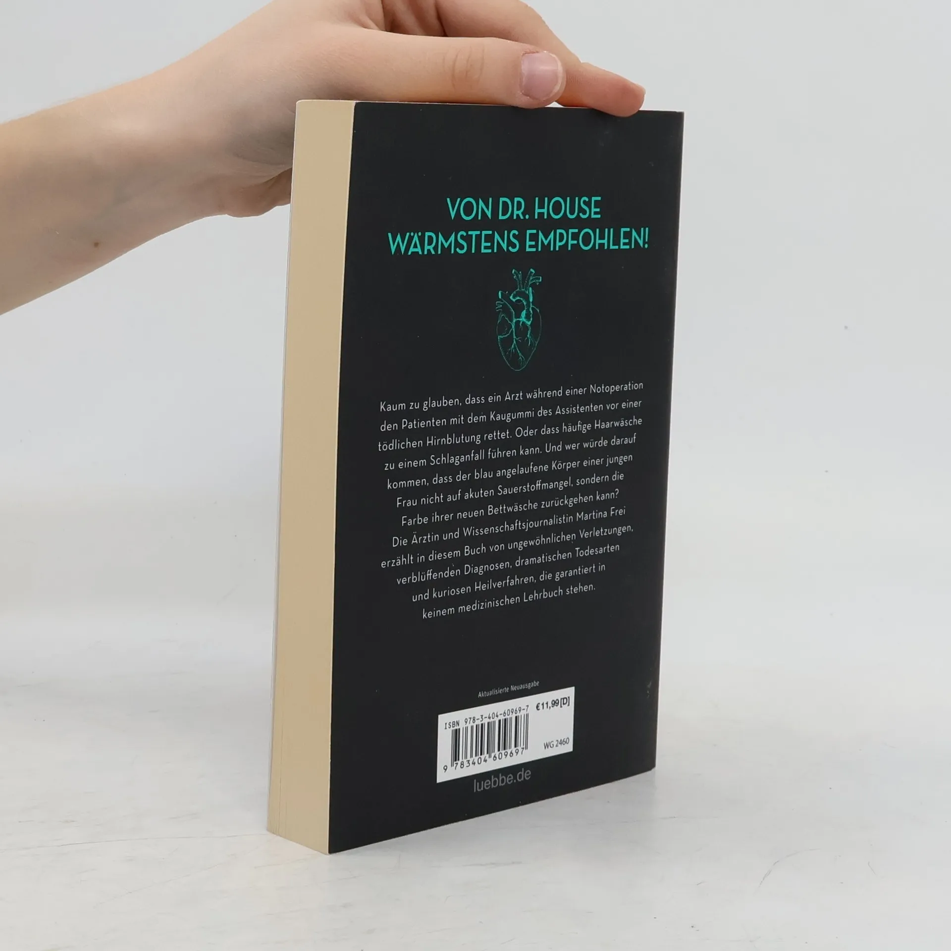 Wussten Sie, dass sich eine verrutschte Kunstlinse durch eine Fahrt mit der Achterbahn wieder in die richtige Position bringen lässt? Dass man auch mit einem 30 Zentimeter langen Messer im Rücken meilenweit laufen kann? Dass ein Arzt während einer Notoperation den Patienten vor einer tödlichen Hirnblutung mit dem Kaugummi des Assistenten rettete? Die Ärztin und Wissenschafts-Journalistin Martina Frei hat in diesem Buch die schrägsten und unglaublichsten Fallgeschichten aus der Welt der Medizin gesammelt.Nach der Lektüre werden Sie Heilung ist möglich. Manchmal sogar ohne Arzt.