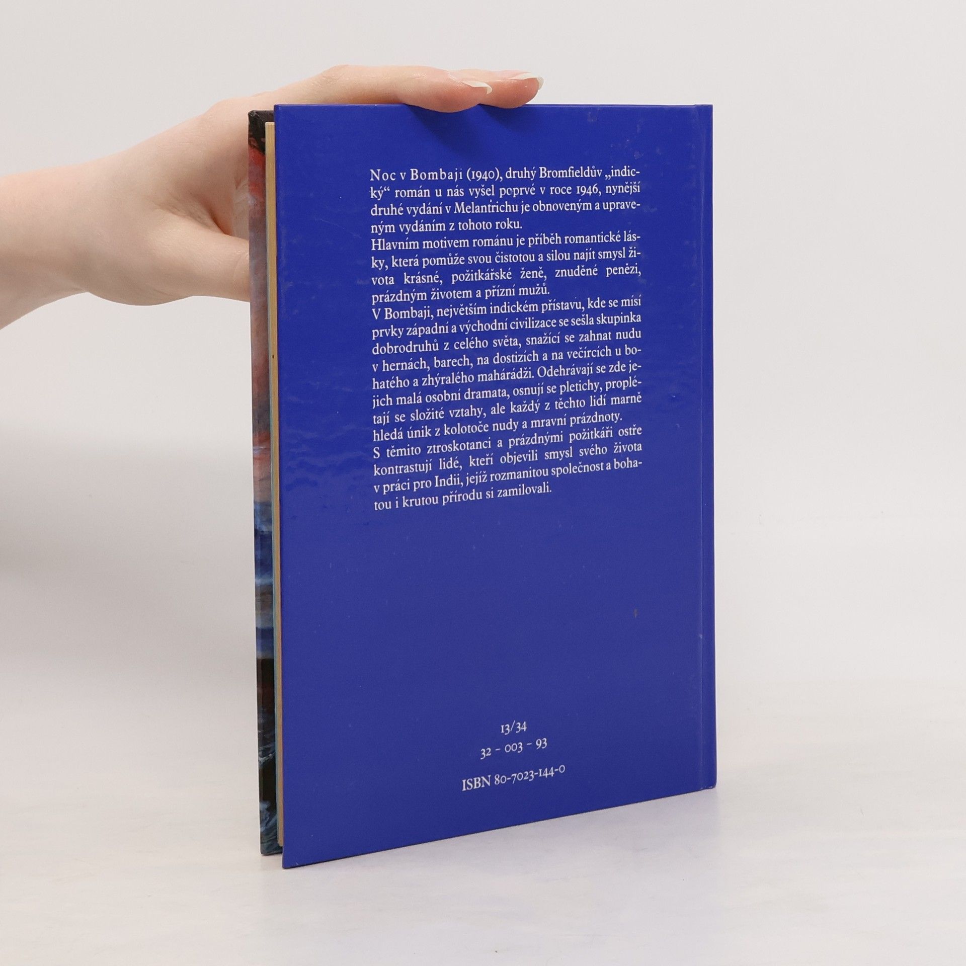 Noc v Bombaji (1940), druhý Bromfieldův "indický" román u nás vyšel poprvé v roce 1946, nynější druhé vydání v Melantrichu je obnoveným a upraveným vydáním z tohoto roku. Hlavním motivem románu je příběh romantické lásky, která pomůže svou čistotou a silou najít smysl života krásné, požitkářské ženě, znuděné penězi, prázdným životem a přízní mužů. V Bombaji, největším indickém přístavu, kde se mísí prvky západní a východní civilizace se sešla skupinka dobrodruhů z celého světa, snažící se zahnat nudu v hranách, barech, na dostizích a na večírcích u bohatého a zhýralého mahárádži. Odehrávají se zde jejich malá osobní dramata, osnují se pletichy, proplétají se složité vztahy, ale každý z těchto lidí hledá únik z kolotoče nudy a mravní prázdnoty. S těmito ztroskotanci a prázdnými požitkáři ostře kontrastují lidé, kteří objevili smysl svého života v práci pro Indii, jejíž rozmanitou společnost a bohatou i krutou přírodu si zamilovali.