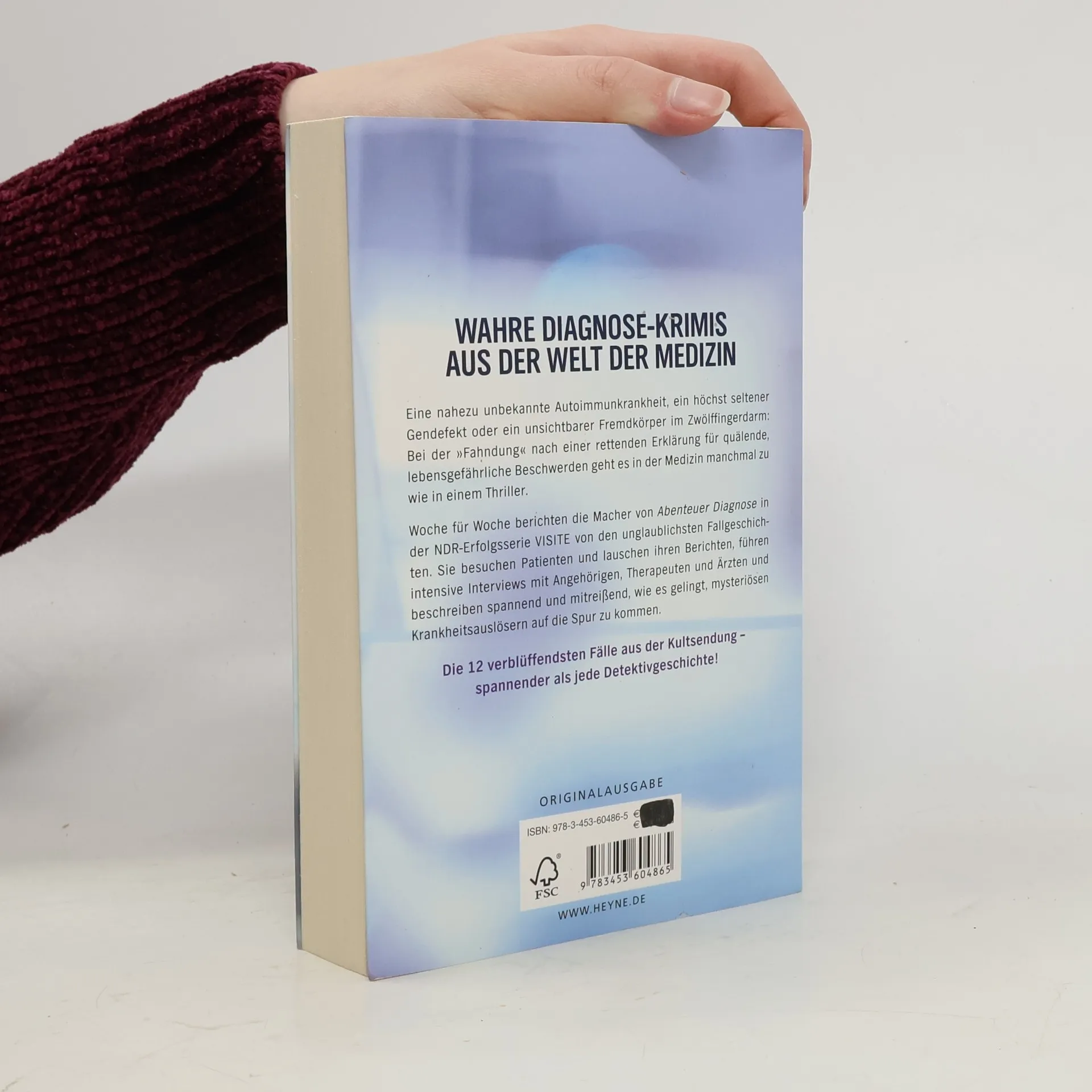 Wahre Storys aus der Welt der Medizin - für alle Fans von Dr. House & Good Doctor Eine nahezu unbekannte Autoimmunkrankheit, ein höchst seltener Gendefekt oder ein unsichtbarer Fremdkörper im Zwölffingerdarm: Bei der „Fahndung“ nach einer rettenden Erklärung für quälende, lebensgefährliche Beschwerden geht es in der Medizin manchmal zu wie im Krimi. Woche für Woche berichten die Macher von „Abenteuer Diagnose“ in der NDR-Erfolgsserie VISITE von den unglaublichsten Fallgeschichten. Sie besuchen Patienten und lauschen ihren Geschichten, führen intensive Interviews mit Angehörigen, Therapeuten und Ärzten und beschreiben spannend und mitreißend, wie es gelingt, mysteriösen Krankheitsauslösern auf die Spur zu kommen. Die 12 spannendsten Fälle aus fast 10 Jahren „Abenteuer Diagnose“ – berührende Patientengeschichten, die einen verblüffenden Einblick in medizinische Detektivarbeit geben.