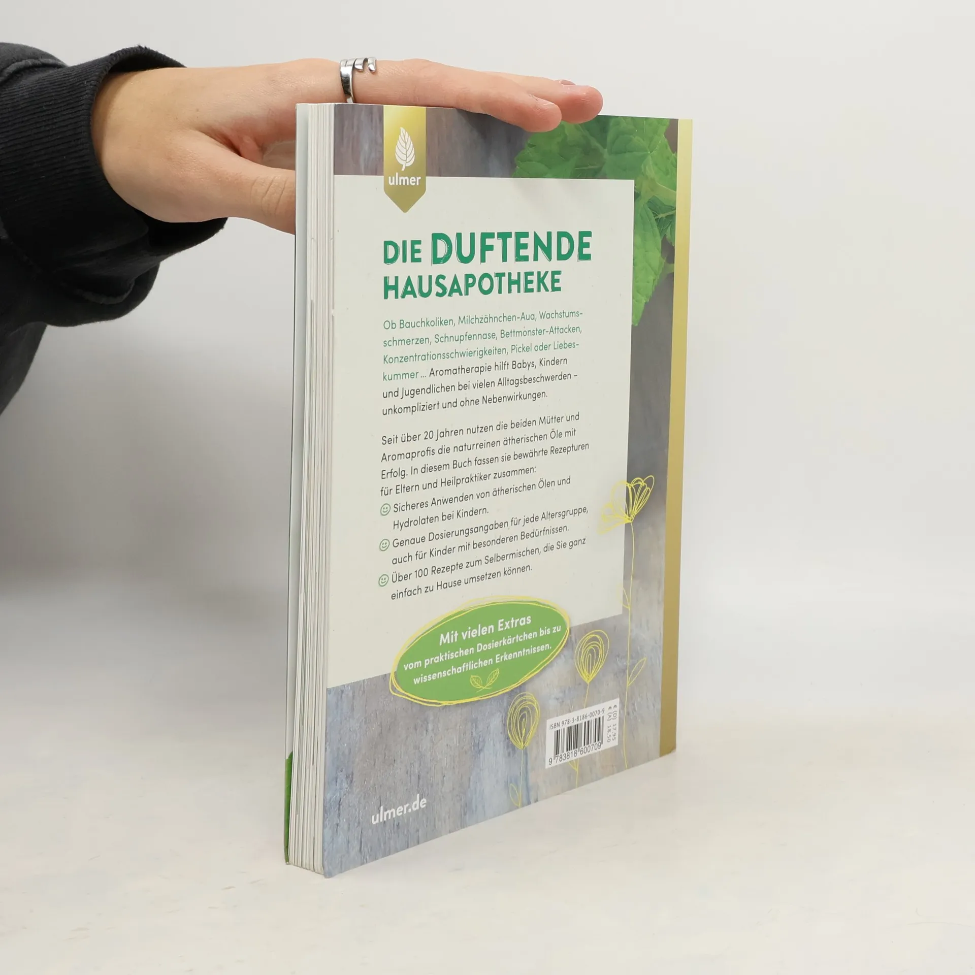 Ob Bauchkoliken, Milchzähnchen-Auas, Wachstumsschmerzen, Schnupfennase, Bettmonster-Attacken, Konzentrationsschwierigkeiten, Pickel oder Liebeskummer … Aromatherapie hilft Babys, Kindern und Jugendlichen bei vielen Alltagsbeschwerden – unkompliziert und ohne Nebenwirkungen. Seit über 20 Jahren nutzen die beiden Mütter und Aromaprofis die naturreinen ätherischen Öle mit Erfolg. In diesem Buch fassen sie bewährte Rezepturen für Eltern und Heilpraktiker zusammen. Über 100 Rezepte sind genau auf die Altersstufen von 0 bis 16 Jahren abgestimmt und lassen sich ganz einfach zu Hause umsetzen. Mit vielen Extras vom praktischen Dosierkärtchen bis zur Reiseapotheke.