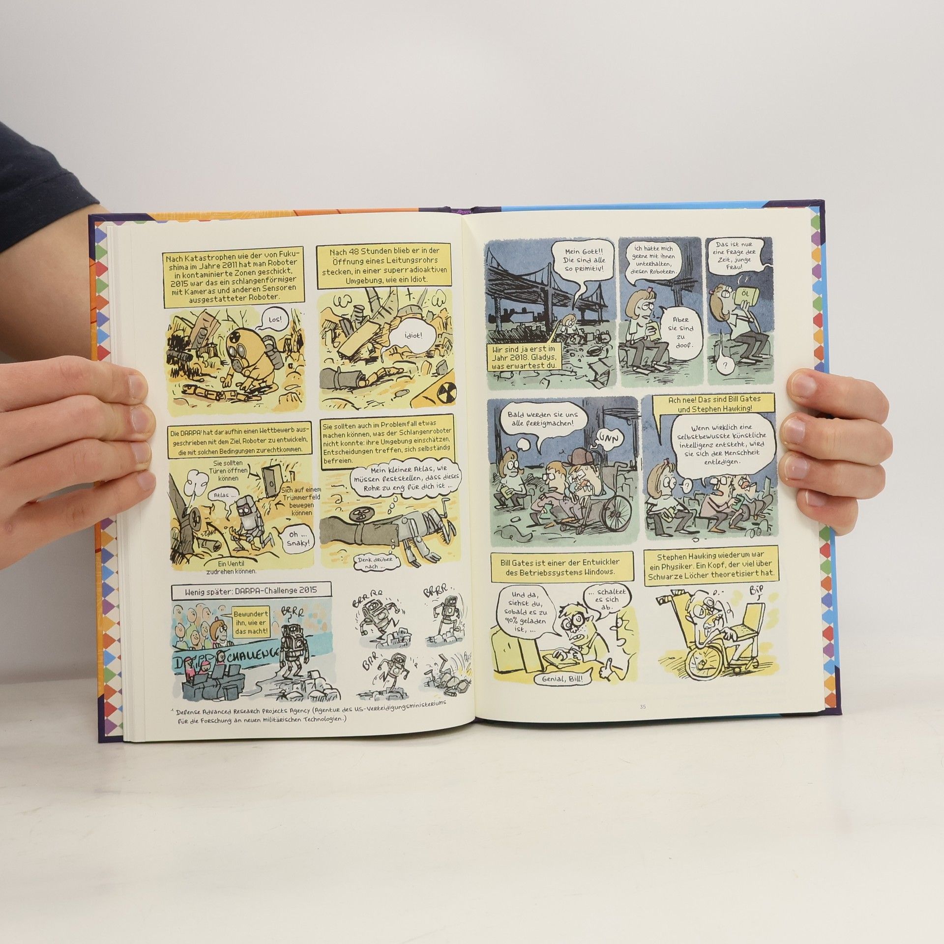 Unser Comic beginnt am Ende des nächsten, von Robotern ausgefochtenen Kriegs, in dem alle Aufzeichnungen zerstört worden sind. Deshalb wird ein Roboter mit Hilfe von Google Time Travel losgeschickt, um das vernichtete Gedächtnis der Menschheit zurückzuholen. Als Mensch getarnt erforscht er die Fantasien und Techniken, die seit dem 13. Jahrhundert die Menschen dazu angetrieben haben, immer fähigere Roboter zu schaffen. Staunend stellt er fest, dass sie törichterweise vor diesen Maschinen stets mehr Angst hatten als vor ihren Artgenossen.
