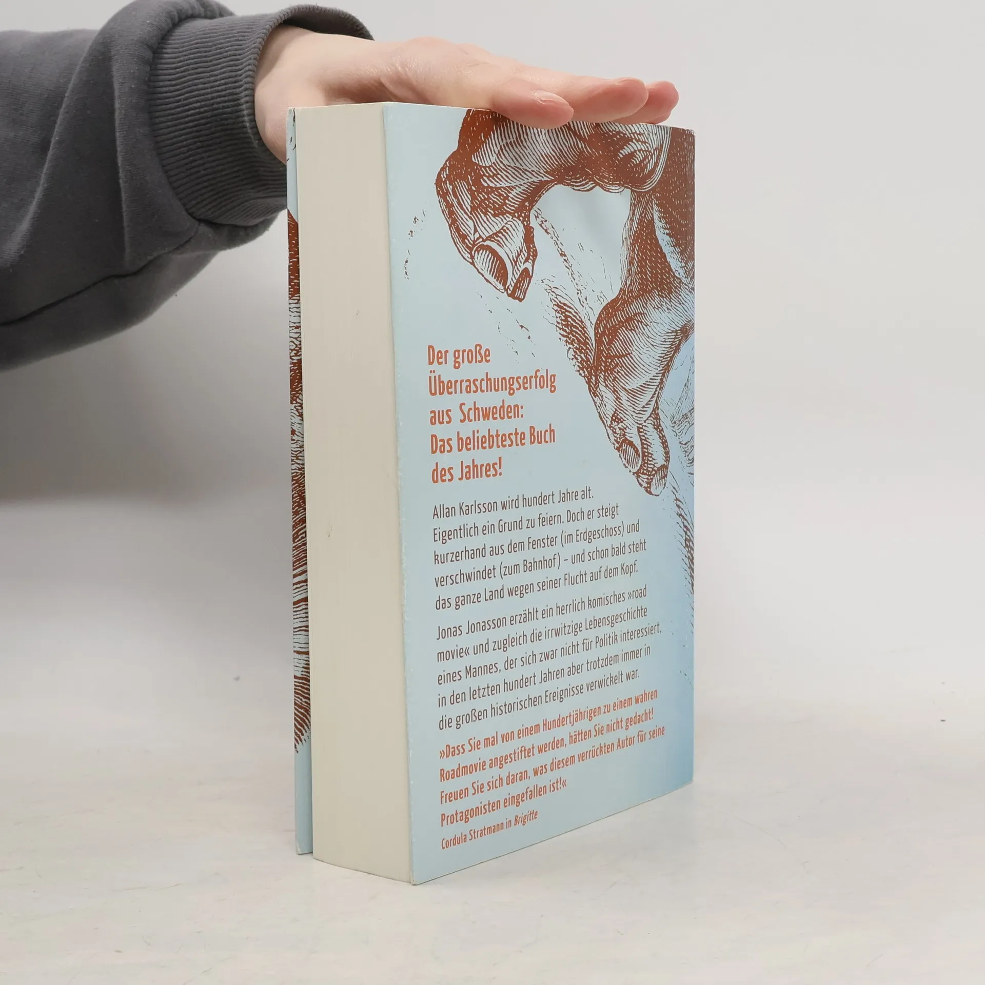 Allan Karlsson hat Geburtstag. Er wird 100 Jahre alt. Eigentlich ein Grund zu feiern. Doch während sich der Bürgermeister und die lokale Presse auf das große Spektakel vorbereiten, hat der Hundertjährige ganz andere Pläne: er verschwindet einfach – und schon bald steht ganz Schweden wegen seiner Flucht auf dem Kopf. Doch mit solchen Dingen hat Allan seine Erfahrung, er hat schließlich in jungen Jahren die ganze Welt durcheinander gebracht.Jonas Jonasson erzählt in seinem Bestseller von einer urkomischen Flucht und zugleich die irrwitzige Lebensgeschichte eines eigensinnigen Mannes, der sich zwar nicht für Politik interessiert, aber trotzdem irgendwie immer in die großen historischen Ereignisse des 20. Jahrhunderts verwickelt war.