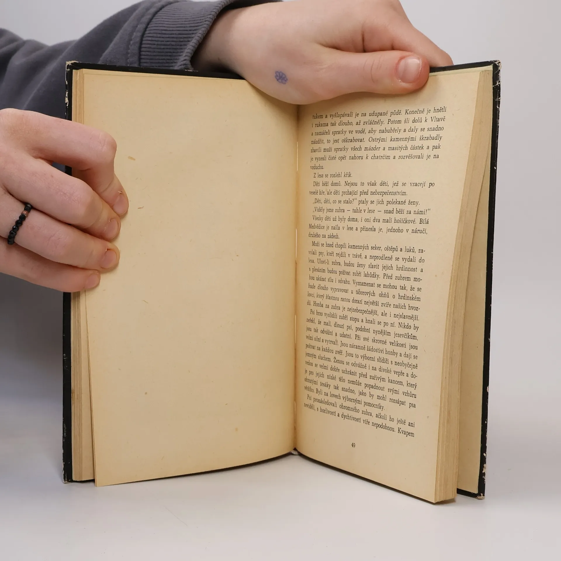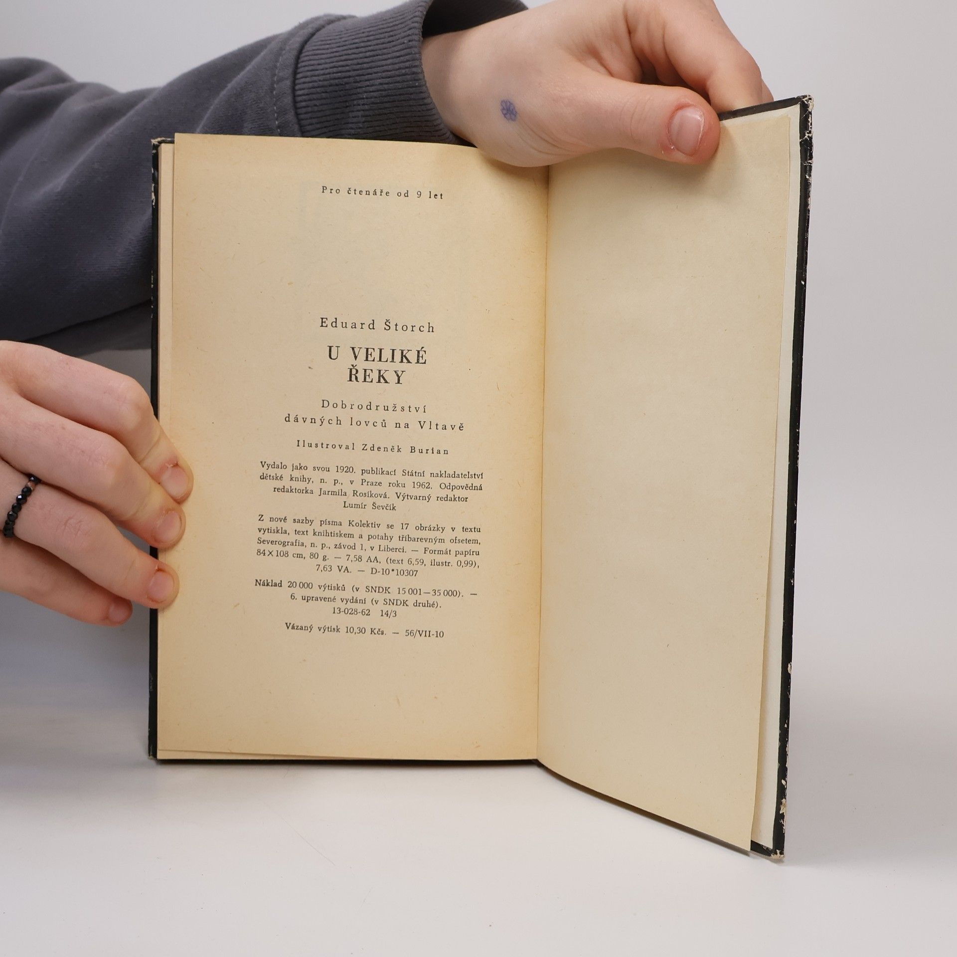 Do povodí Vltavy - Veliké řeky v pražské kotlině je zasazen děj dobrodružného vyprávění, zpodobujícího v průběhu několika staletí dobu zhruba před pěti tisíci lety. Autor zde v sevřeně komponovaných kapitolách zachycuje osudy i primitivní život pravěkých kmenů, které svádějí boj spřírodou i vzájemně mezi sebou o výhodnější loviště a postupně se kultivují. 13-028-62