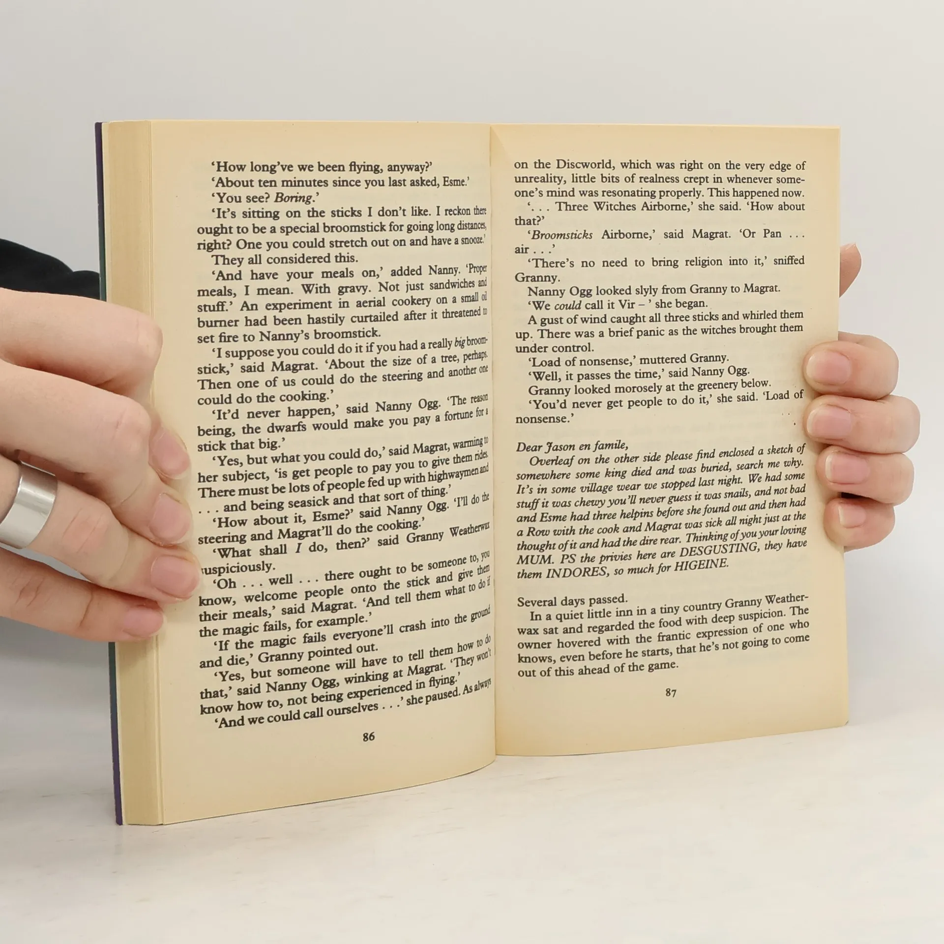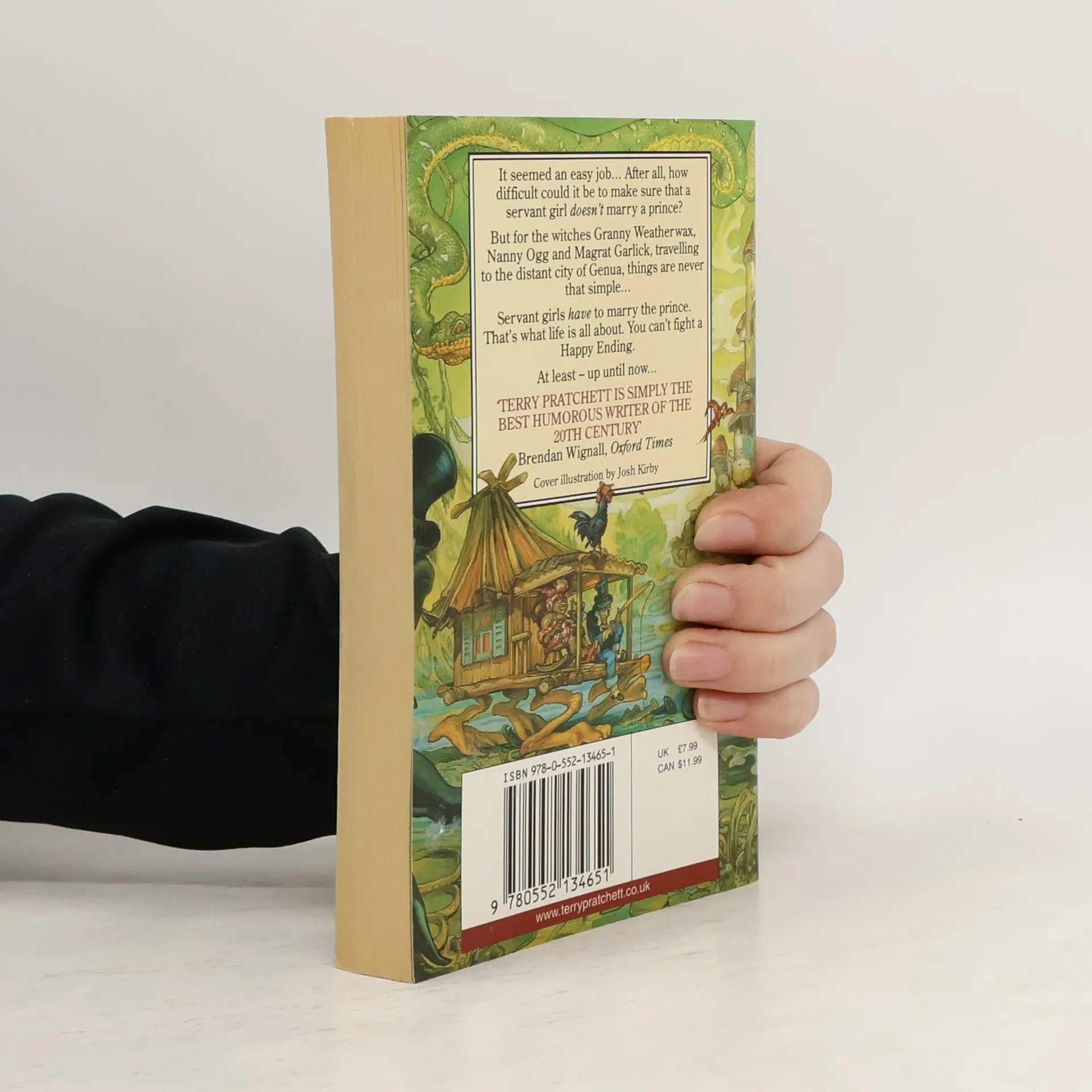 The twelfth Discworld novel — It seemed an easy job . . . After all, how difficult could it be to make sure that a servant girl doesn’t marry a prince? But for the witches Granny Weatherwax, Nanny Ogg and Magrat Garlick, travelling to the distant city of Genua, things are never that simple. Servant girls have to marry the prince. That’s what life is all about. You can’t fight a Happy Ending. At least — up until now.