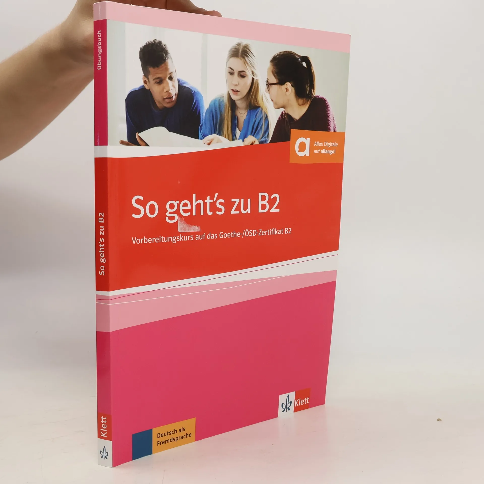 So geht's zu B2 Bietet ein umfassendes Fertigkeitentraining und Prüfungsvorbereitung Führt Schritt für Schritt von Niveau B1+ zu B2 Bereitet in 12 thematischen Einheiten auf alle Prüfungsteile vor Enthält abwechslungsreiche Übungen zu Wortschatz, Strukturen und Redemitteln Mit Audiodaten und Zusatzangebote über die Klett-Augmented-App oder online mit Code