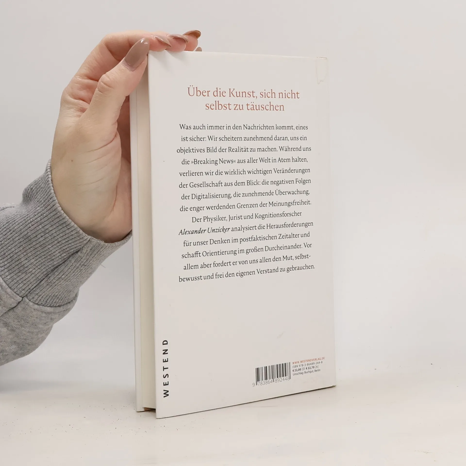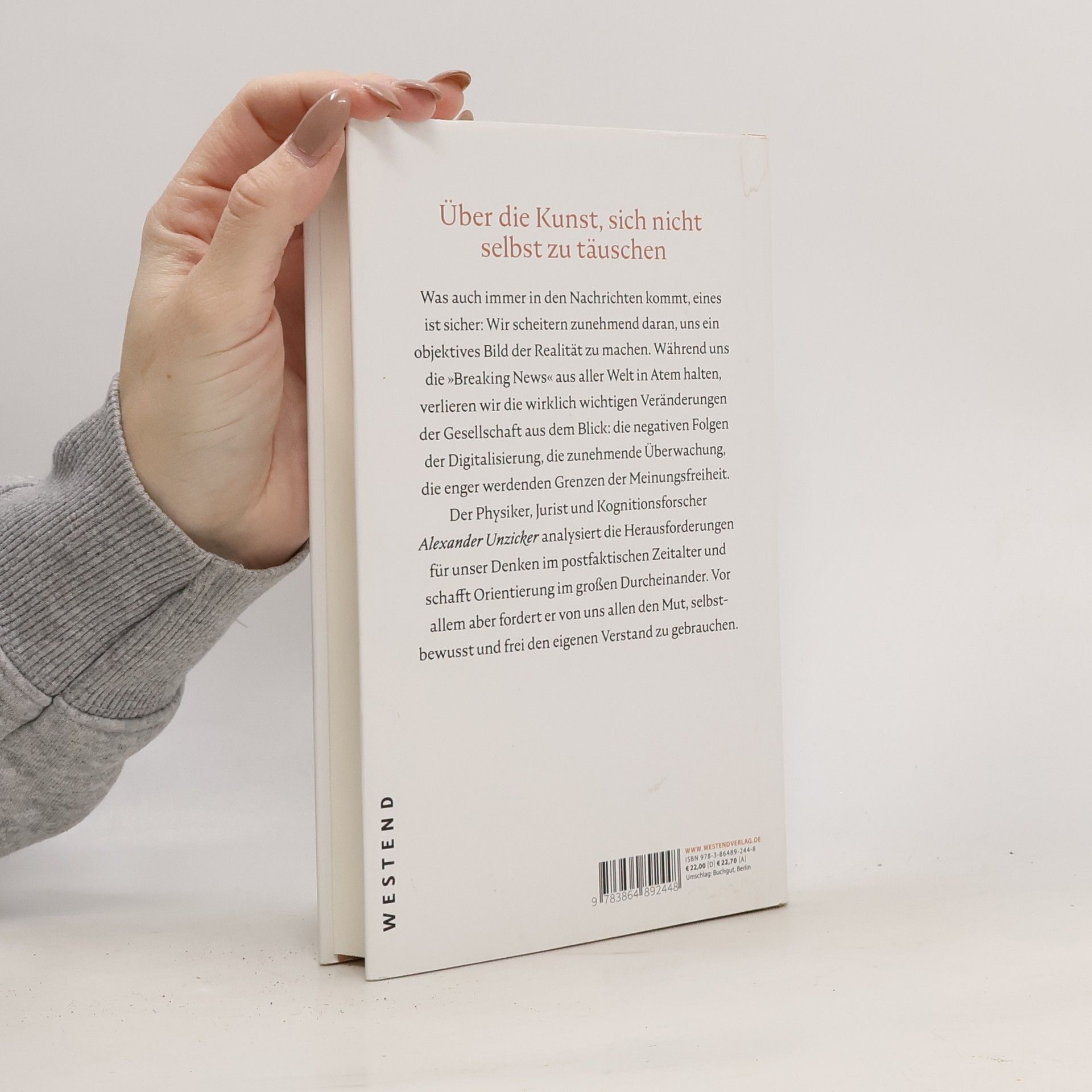 Was auch immer in den Nachrichten kommt, eines ist sicher: Wir scheitern zunehmend daran, uns ein objektives Bild der Realität zu machen. Während uns die „Breaking News“ aus aller Welt in Atem halten, entziehen sich entscheidende Veränderungen unserer Aufmerksamkeit: Digitalisierung, Überwachung, die enger werdenden Grenzen der Meinungsfreiheit. Der Physiker, Jurist und Kognitionsforscher Alexander Unzicker analysiert die Herausforderungen für unser Denken im postfaktischen Zeitalter und schafft Orientierung im großen Durcheinander. Vor allem aber fordert er von uns allen mehr Mut, den eigenen Verstand zu gebrauchen - auch ohne fremde Anleitung.