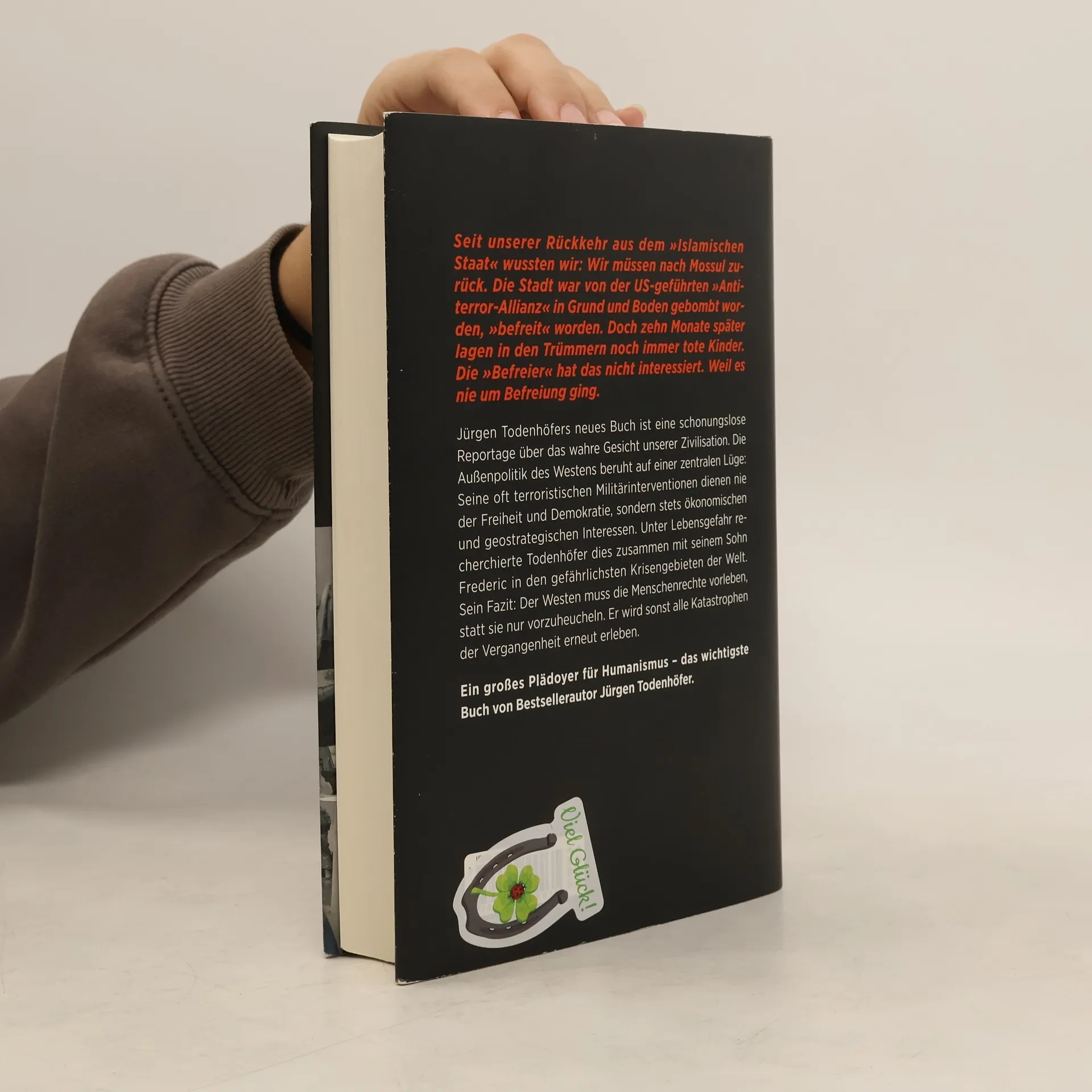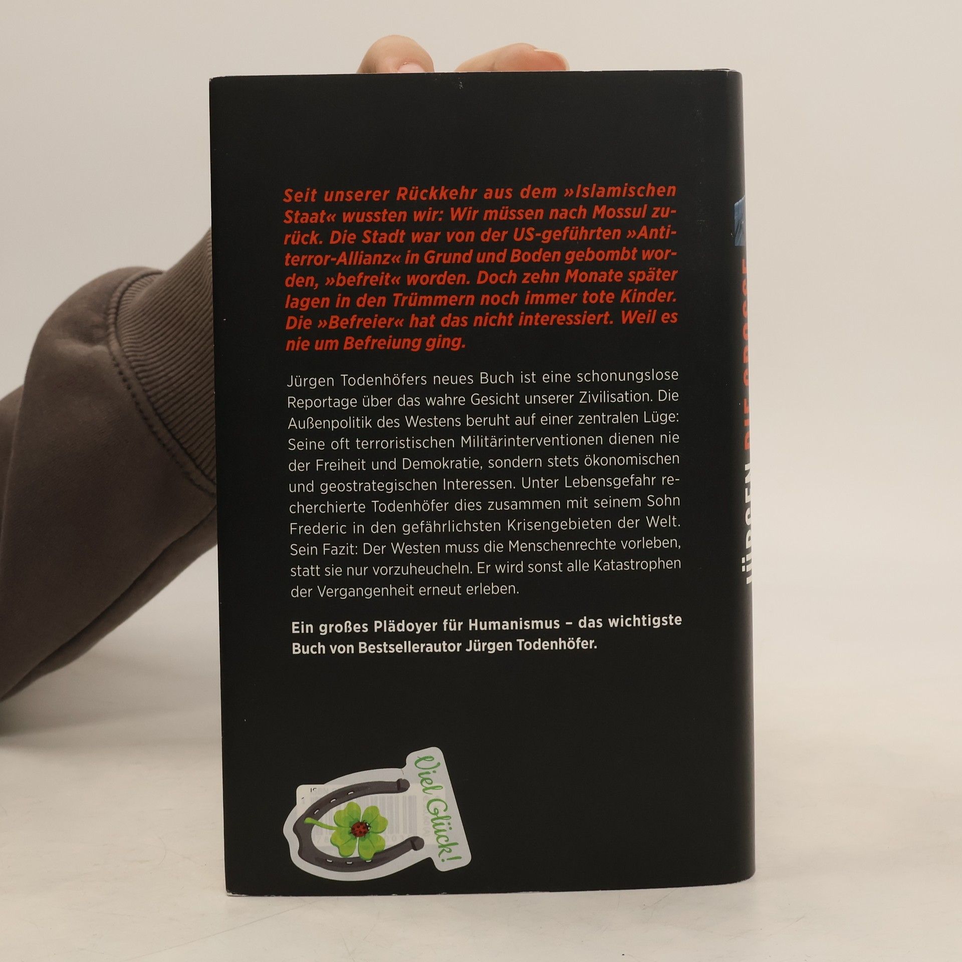 Ein großes Plädoyer für Humanismus, eine schonungslose Reportage über das wahre Gesicht unserer Zivilisation und ein Frontbericht aus den Krisengebieten der Welt – das wichtigste Buch von Bestsellerautor Jürgen Todenhöfer Die Außenpolitik des Westens beruht auf einer zentralen Lüge: Seine oft terroristischen Militärinterventionen dienen nie der Freiheit und Demokratie, sondern stets ökonomischen und geostrategischen Interessen. Unter Lebensgefahr recherchierte Jürgen Todenhöfer dies zusammen mit seinem Sohn Frederic in den gefährlichsten Krisengebieten der Welt. Sein Fazit: Der Westen muss die Menschenrechte vorleben, statt sie nur vorzuheucheln. Und seine Medien müssen damit aufhören, diese Heuchelei zu decken. Der Westen wird sonst alle Katastrophen der Vergangenheit erneut erleben. Er muss andere Völker und Kulturen so behandeln, wie er selbst behandelt werden will. Nur dann hat er eine Zukunft.
