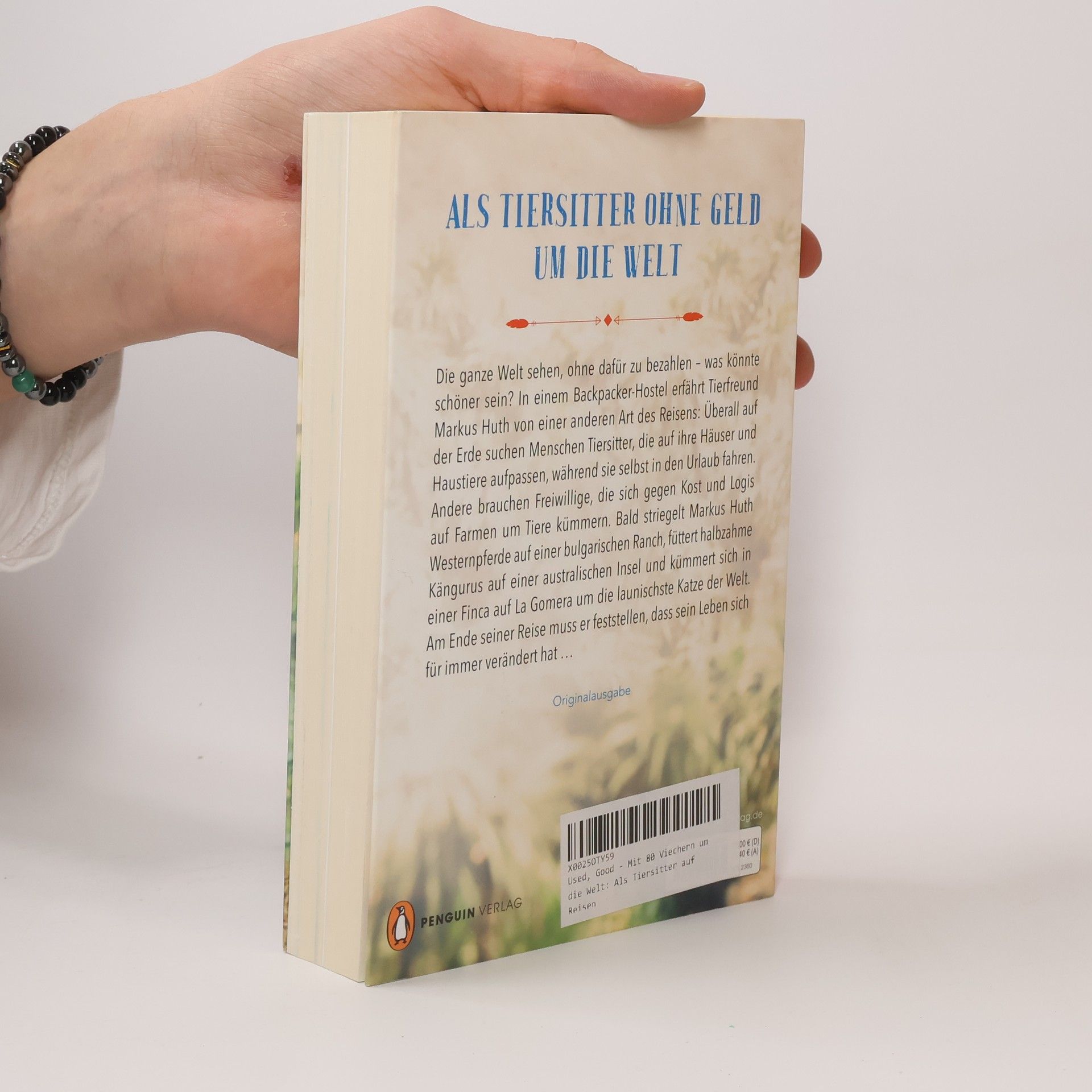 Weltreise mal anders: Markus Huth kümmert sich um Tiere auf allen fünf Kontinenten Die ganze Welt sehen, ohne dafür zu bezahlen – was könnte schöner sein? In einem Backpacker-Hostel erfährt Tierfreund Markus Huth von einer anderen Art des Reisens: Überall auf der Erde suchen Menschen Tiersitter, die auf ihre Häuser und Haustiere aufpassen, während sie selbst in den Urlaub fahren. Andere brauchen Freiwillige, die sich gegen Kost und Logis auf Farmen um Tiere kümmern. Bald striegelt Markus Huth Westernpferde auf einer bulgarischen Ranch, füttert halbzahme Kängurus auf einer australischen Insel und kümmert sich auf einer Finca auf La Gomera um die launischste Katze der Welt. Am Ende seiner Reise ist sein Leben längst nicht mehr so, wie es einmal war ... Das Buch enthält zahlreiche Farbfotos.