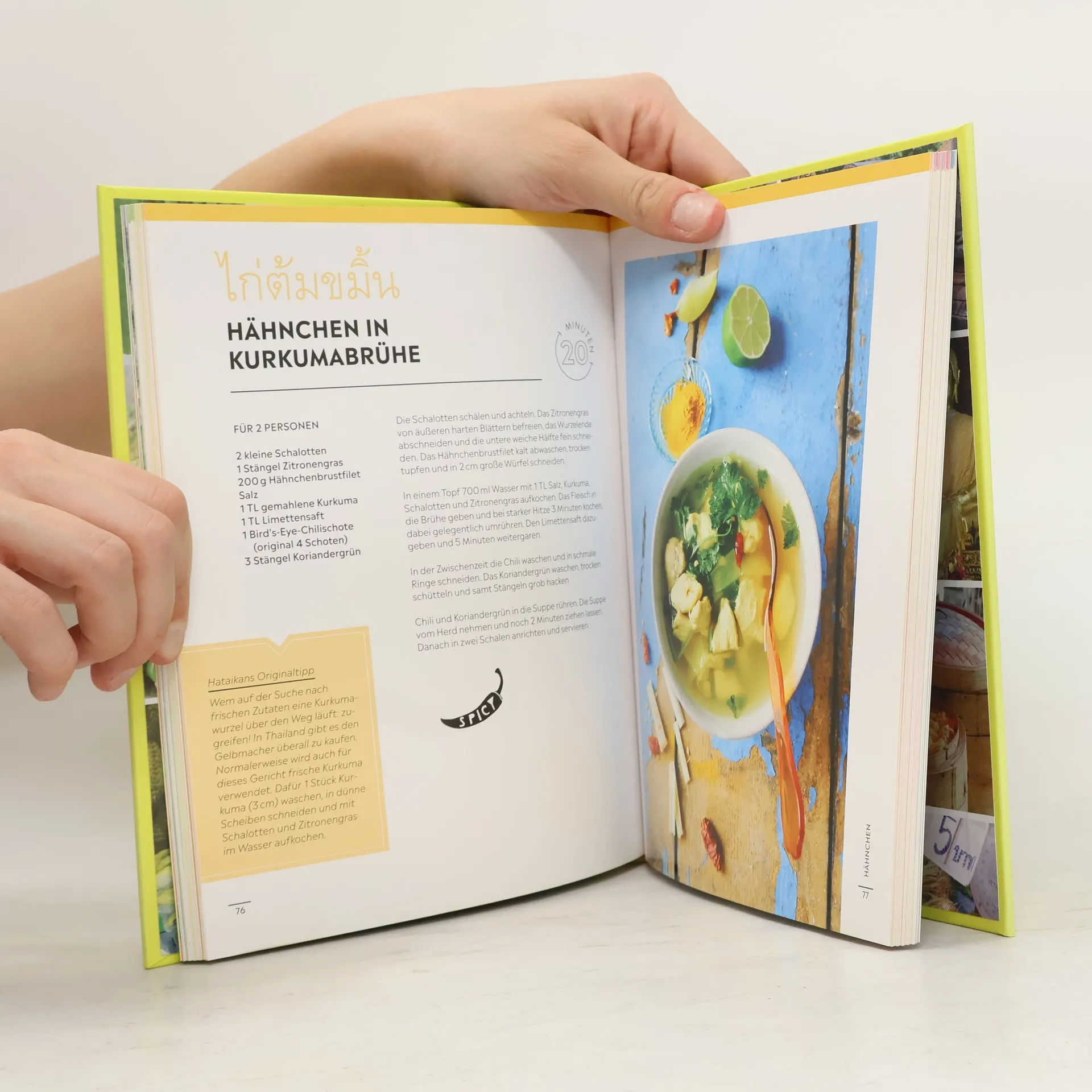 Ausgezeichnet mit dem Gourmand Cookbook Award 2020 als bestes asiatisches Kochbuch, bietet dieses Werk eine schnelle, einfache und authentische Möglichkeit, thailändische Gerichte zuzubereiten. Mit über 80 original thailändischen Rezepten, die in maximal 20 Minuten und mit nur bis zu 10 Zutaten aus jedem Supermarkt nachgekocht werden können, wird das Kochen zum Kinderspiel. Die einheimische Autorin Hataikan Tapooling teilt zahlreiche Tipps, Tricks und interessante Hintergründe zur thailändischen Küche. Die Rezepte decken eine Vielzahl von Zutaten ab, darunter Gemüse, Obst, Ei, Hähnchen, Schwein und Rind, sodass für jeden Geschmack etwas dabei ist. Zudem gibt es Anleitungen zur Herstellung von Currypasten, Dips und Desserts sowie eine große Veggie-Tauschbörse, inklusive einem Rezept für vegetarische Fischsauce. Turbo-Tipps und clevere Zeitspar-Zutaten erleichtern die Zubereitung, während eine Anleitung zum perfekten Reiskochen, auch für Sticky Rice, nicht fehlen darf. Ergänzt wird das Buch durch Informationen zur thailändischen Esskultur und eine praktische Einkaufsliste für die Grundausstattung. Authentische Spezialtipps und stimmungsvolle Bilder aus Thailand runden das Erlebnis ab. Kochen Sie sich in kürzester Zeit in die thailändische Küche!