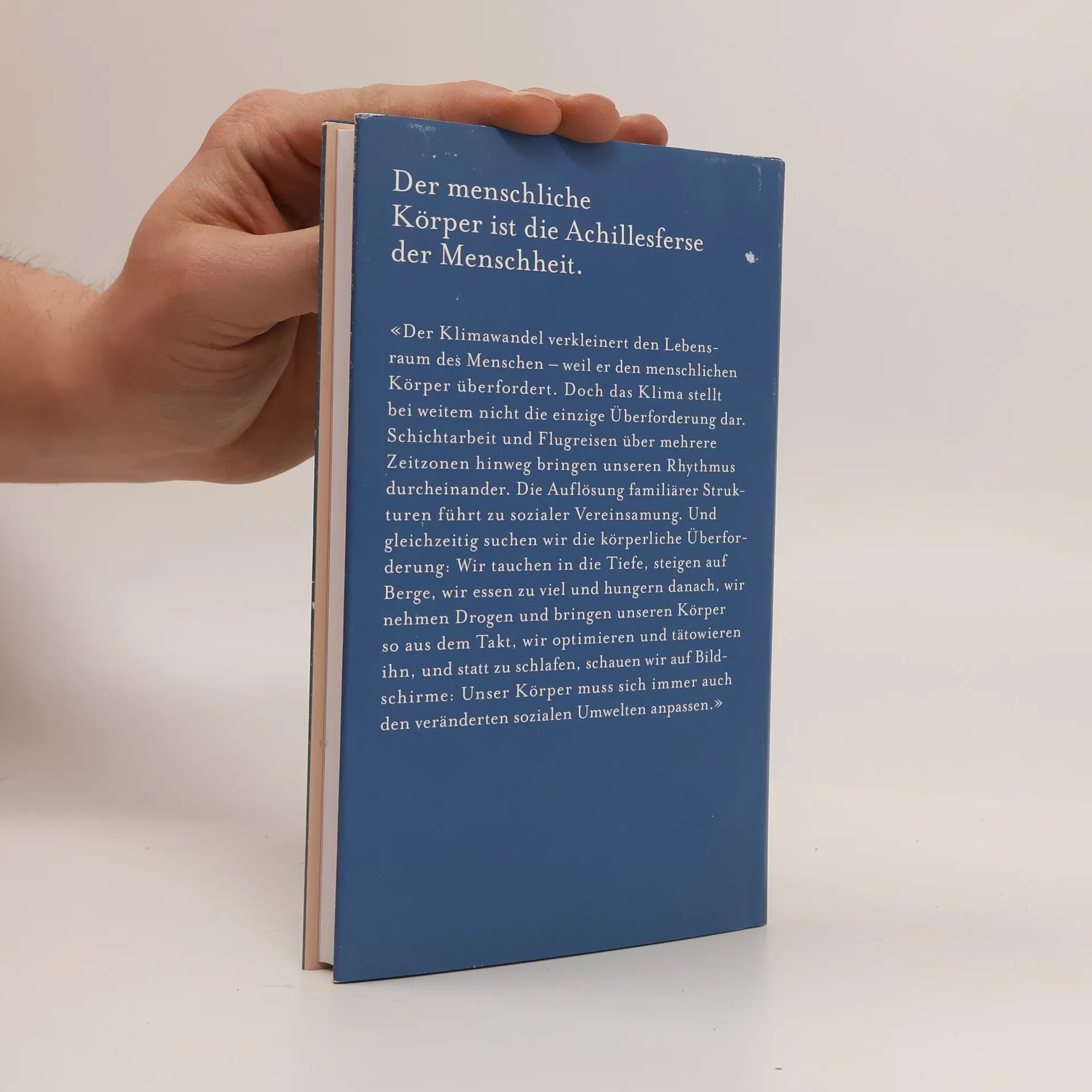 Die ideale Umwelt für den menschlichen Körper ist ein mildes Klima am Meer. Doch die meisten Menschen leben unter anderen Bedingungen. Oder setzen sich extremen Umwelten aus, steigen auf Berge, tauchen, fliegen ins Weltall - und überleben dabei Belastungen, die lange unmenschlich waren. Hanns-Christian Gunga untersucht die Auswirkungen von Hitze und Kälte, aber auch von Schichtarbeit und Langstreckenflügen auf den Körper. Er macht deutlich, dass der Anpassung des Menschen an veränderte Umwelten enge physiologische und psychologische Grenzen gesetzt sind; gleichzeitig verändert sich das Klima. Daraus entsteht ein biologischer, aber auch ein politischer Konflikt: Der menschliche Körper passt immer weniger in unseren Lebensraum.