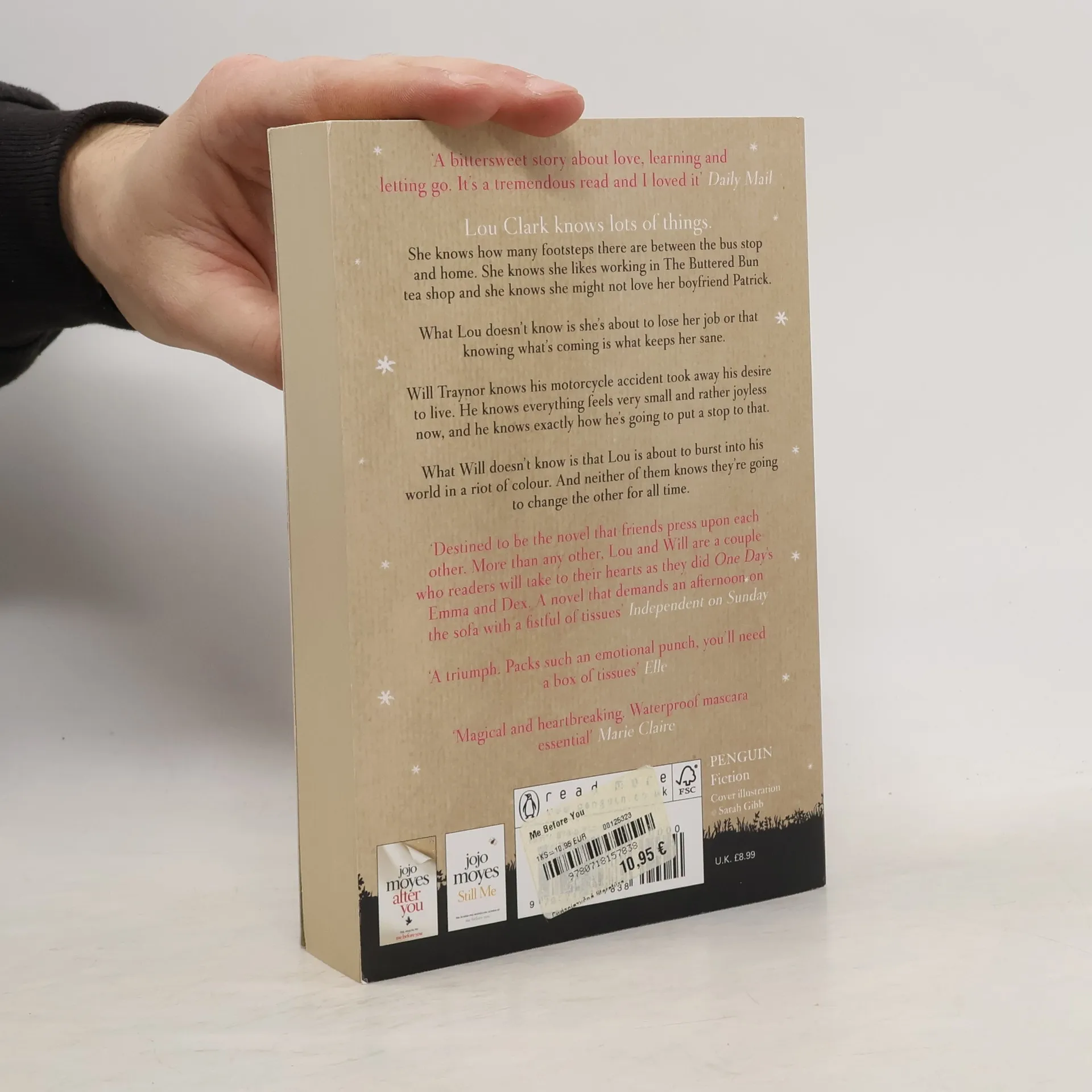 Lou Clark knows lots of things. She knows how many footsteps there are between the bus stop and home. She knows she likes working in The Buttered Bun tea shop and she knows she might not love her boyfriend Patrick. What Lou doesn't know is she's about to lose her job or that knowing what's coming is what keeps her sane. Will Traynor knows his motorcycle accident took away his desire to live. He knows everything feels very small and rather joyless now and he knows exactly how he's going to put a stop to that. What Will doesn't know is that Lou is about to burst into his world in a riot of colour. And neither of them knows they're going to change the other for all time.