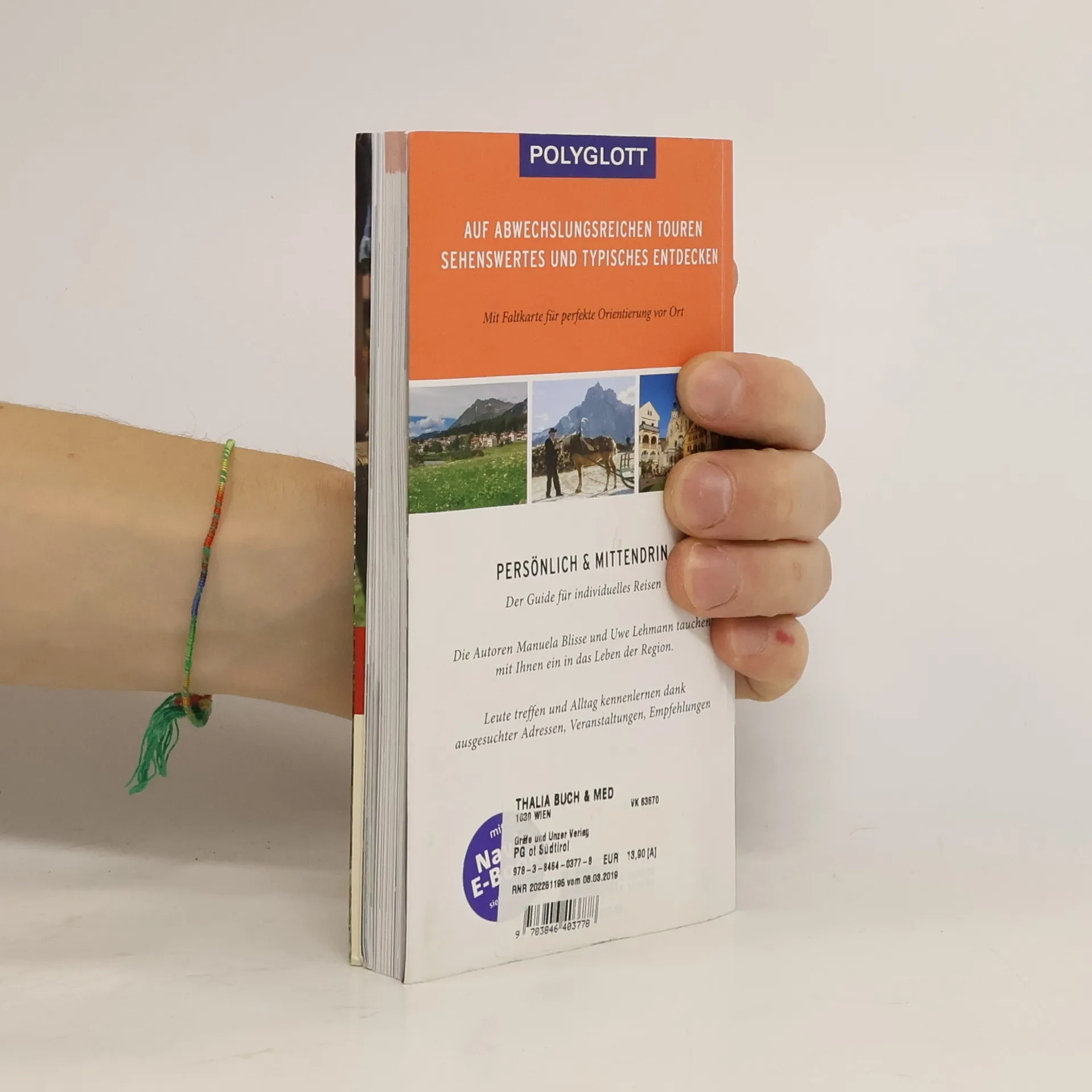 POLYGLOTT on tour SüdtirolIm Sommer wie im Winter, zum Törggelen und zum Skilaufen, ob Bozen oder Südtirol verbindet Nordeuropa mit dem Mittelmeerraum und vereint das Beste beider Kulturkreise. Mit vielseitigen Landschaften, lebendiger Kultur, köstlicher Küche und fantastischen Möglichkeiten im Freien aktiv zu sein, ist es wie gemacht für abwechslungsreichen Urlaub.Mit dem POLYGLOTT on tour Südtirol lässt sich der Herzschlag Norditaliens erspüren. Die Autoren Manuela Blisse und Uwe Lehmann führen in 18 ausgeklügelten Touren durch die Vielseitigkeit der italienischen Provinz und stellen Typisches, Besonderes und Eigenheiten vor. Schnuppern Sie italienisches Lebensflair und lernen Sie Südtirol hautnah kennen! Radeln Sie den Etschradweg entlang, erleben Sie Gletschereis und Weinberge zugleich und genießen Sie Silberrausch und Burgenromantik im Eisacktal. Bei der besten Adresse für köstlichste "Schlutzkrapfen" oder bei einem wunderbaren Ausblick auf das Panorama der Drei Zinnen fühlt man sich gleich wie die Einheimischen. Dank individueller Tipps zu spannenden Entdeckungen können Sie persönlich ins Südtiroler Leben eintauchen und sind mittendrin.Auf einenTYPISCH-Kapitel mit "Eine Reise wert", "50 Dinge" und "Was steckt dahinter"Faltkarte für die perfekte Orientierung vor OrtE-Book mit Verlinkungen zu Standorten der AdressenPOLYGLOTT im Web unter polyglott.de oder bei Facebook