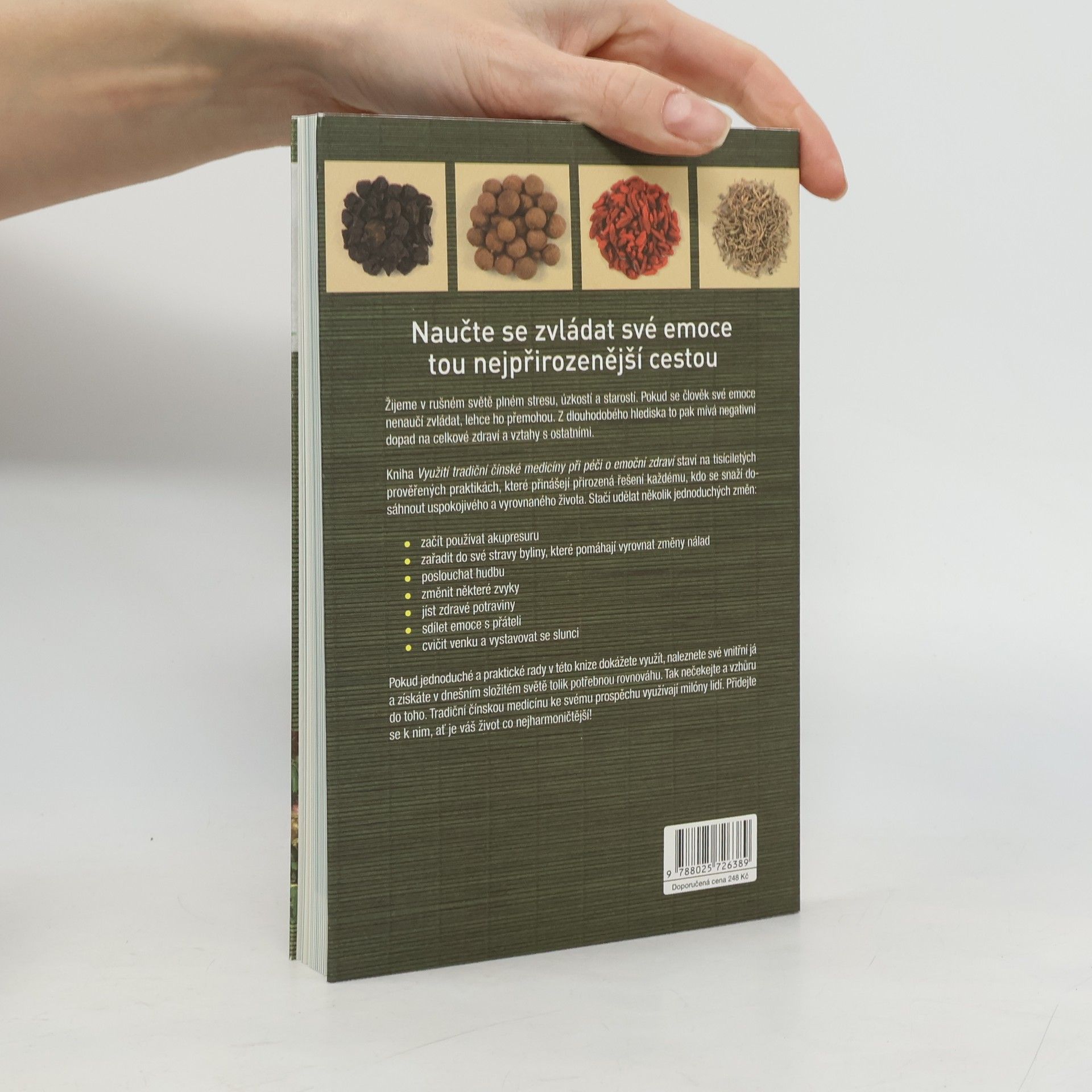 Mnohokrát stačí malé změny v životním stylu, aby se dosáhlo velkých výsledků. V této zajímavé knize se dozvíte, že akupresurou (kterou si můžete dělat sami), požíváním některých bylin, jedením určitých jídel, sdílením pocitů s přáteli a cvičením venku, kde se vystavíte blahodárné sluneční lázni, můžete ve svém životě mnohé zlepšit. Tradiční čínská medicína je osvědčený a praktický způsob, jak se spojit se svým vnitřním já a zlepšit emoční prožívání. Navíc do svého života pomocí těchto technik vnesete více pro zdraví tak potřebné harmonie.