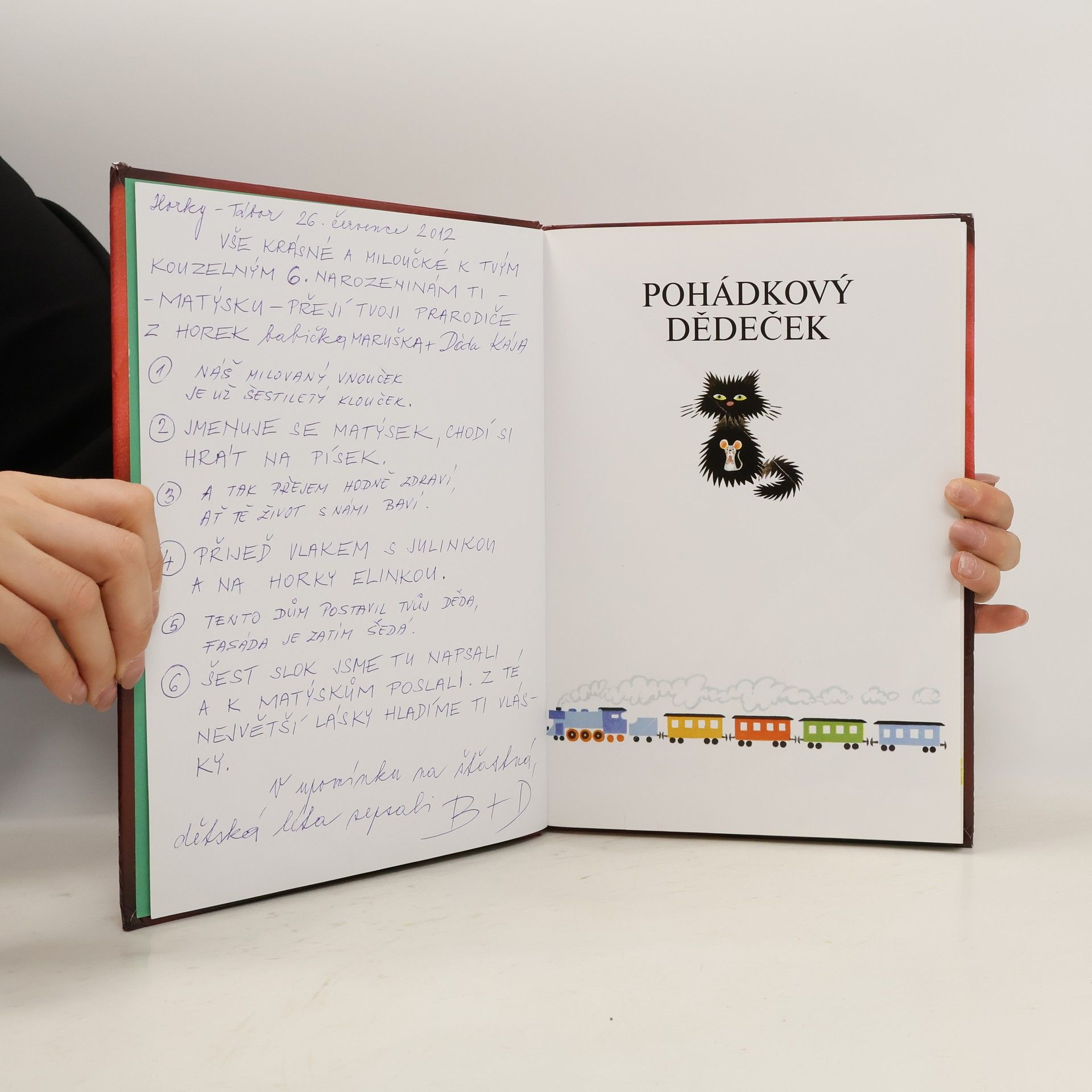 Cesta vlakem dětem často ubíhá pomalu. Ale ne když dědeček vypravuje pohádky o všem, co lze po cestě zahlédnout z okna. V knížce plné zábavných pohádek se děti mohou dočíst o semaforu, který nechtěl cvičit, jak se auto předhánělo s vlakem, o tom jak zvířátka na poli volila krále, či jak dělalo prasátko převozníka.
