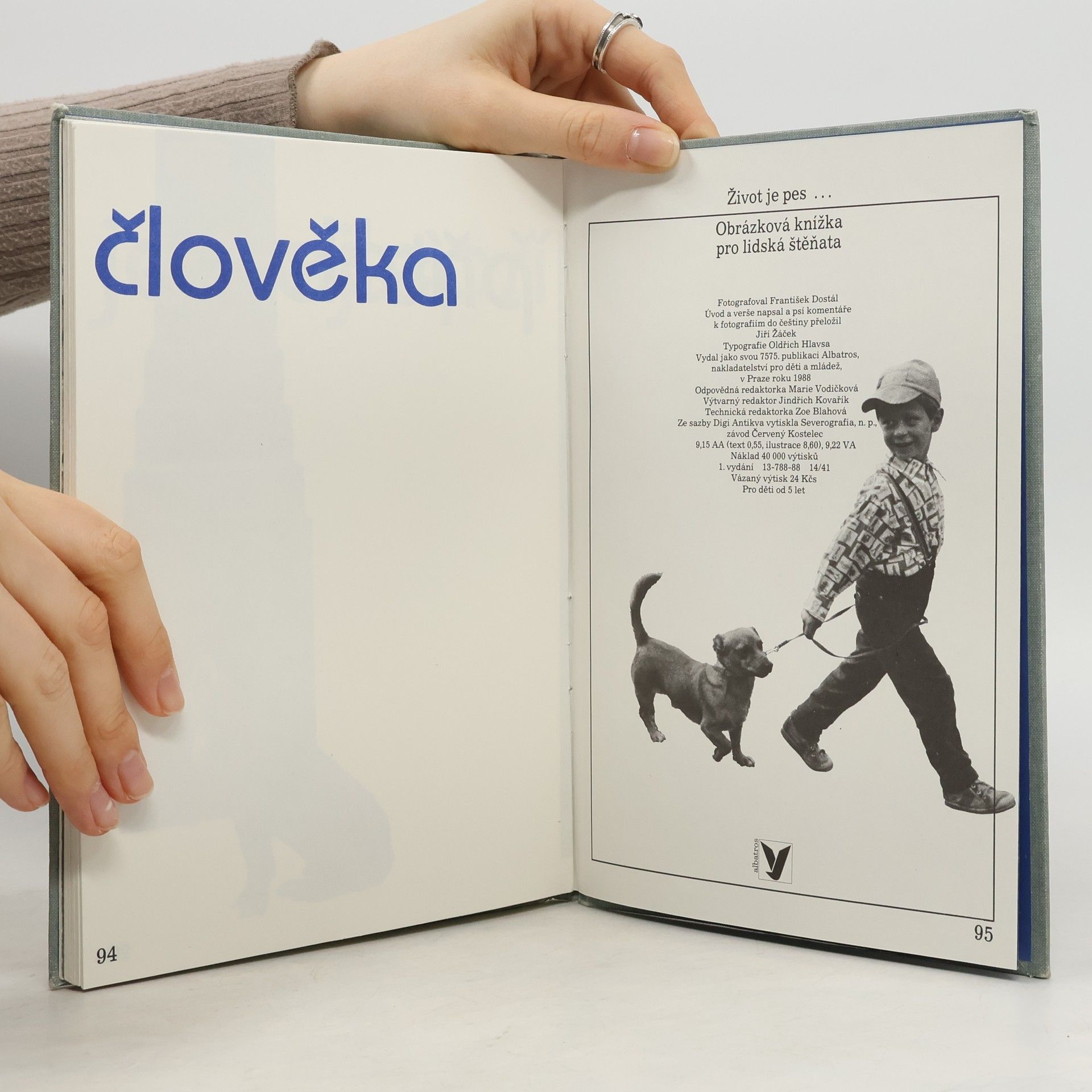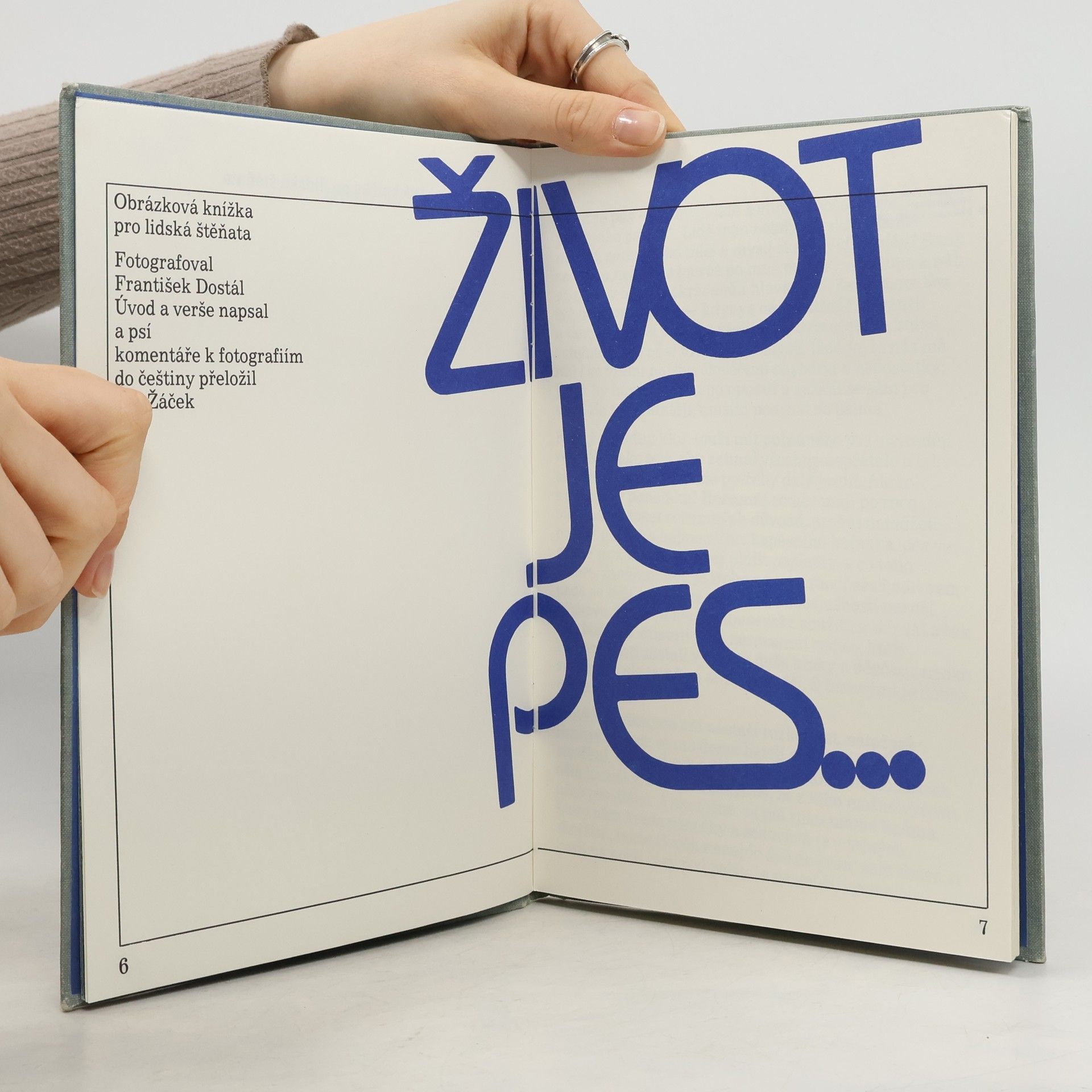 Obrázková knížka pro lidská štěňata : pro děti od 5 let. Fotografie František Dostál; úvod a verše napsal a psí komentáře k fotografiím do češtiny přeložil Jiří Žáček.