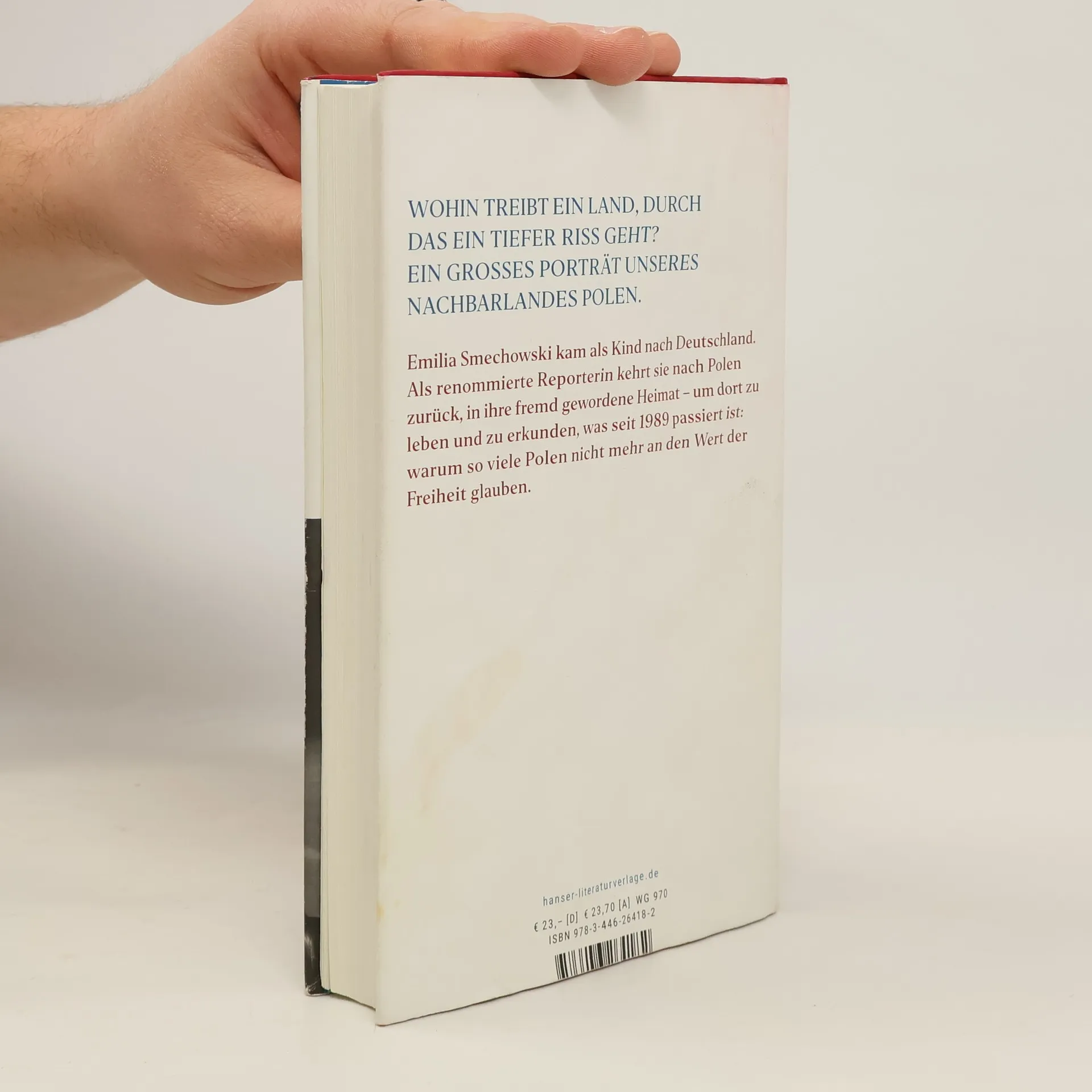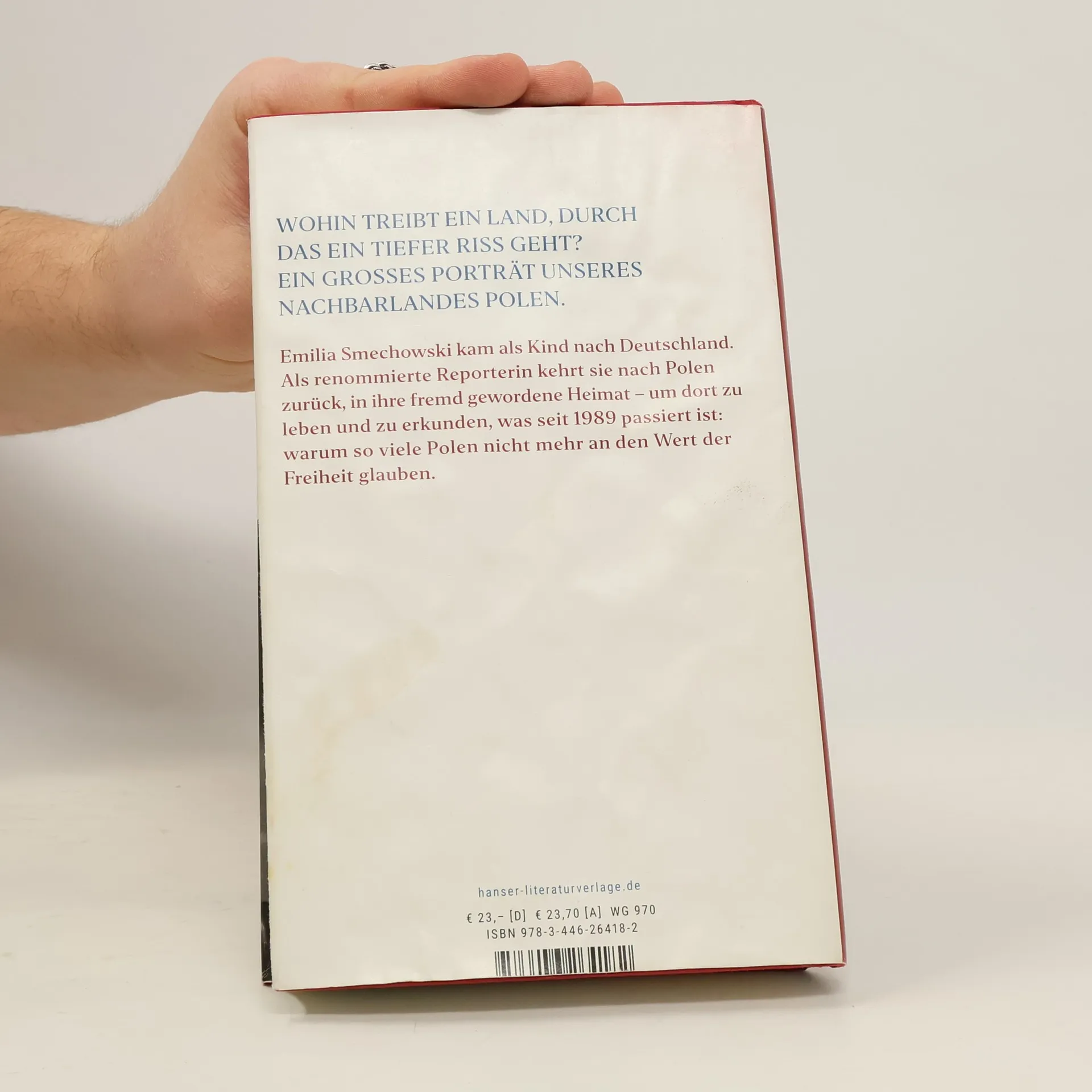 Wohin treibt ein zerrissenes Land? Emilia Smechowski, Deutsche und Polin, zeigt uns unser Nachbarland. Lange glaubten wir im Westen: Polen ist frei und demokratisch, ein junges europäisches Land im Start-up-Modus. Dann wählte die Mehrheit rechtskonservativ – und unser Bild zerbrach. Für Emilia Smechowski ist Polen Heimat – eine Heimat, die sie als Kind verließ und in die sie nun zurückkehrt, um dort zu leben, als Bürgerin des Landes. Sie beschreibt eine zerrissene Nation: Der Riss geht durch die Familien, er ist präsent, wenn beim Sonntagsessen über Politik gestritten oder geschwiegen wird. Smechowski erzählt vom Alltag voller Widersprüche, sie spricht mit Politikern wie Bauern, um zu verstehen: Was ist seit 1989 passiert, dass so viele Menschen nicht mehr an den Wert der Freiheit glauben?