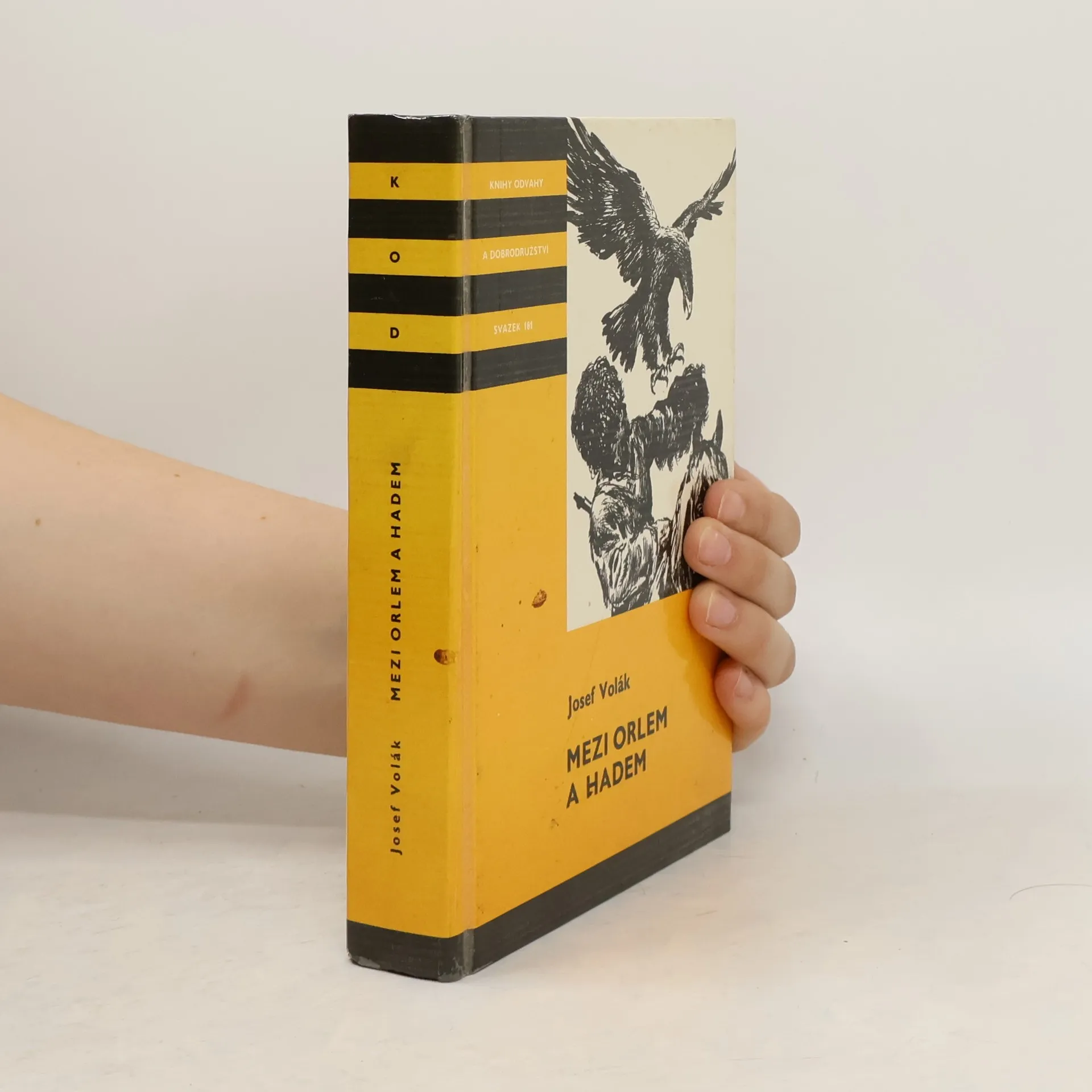 Mezi orlem a hadem je dobrodružný román pro mládež od českého spisovatele Josefa Voláka. Autor v něm spojil své dvě již dříve vydané knihy Divokým Alajem (1985) a Tajemství Uzun-Guru (1988). Román líčí příběhy dvou mladých přátel, Kirgize Zachira a Čecha Petra, kteří o prázdninách cestují s přírodovědeckou karavanou nejprve středoasijským pohořím Alaj a posléze západním Ťan-šanem. Tato hlavní dějová linie je doplněna řadou napínavých příběhů o vyznavačích ďábla jezídech nebo o bojích sovětských pohraničníků s protisovětskými horskými bandity (basmači) ve 20. letech. Tyto příběhy si vyprávějí členové výpravy v době odpočinku. Petr si klade za cíl vyfotografovat, případně chytit, vzácného motýla jasoně Parnassius charltonius v jeho přirozeném vysokohorském prostředí a napsat o něm odborný článek. Ve snaze splnit svůj záměr se vydá sám do hor a zabloudí. Prožije pak mnoho nebezpečných příhod: zažije zemětřesení a málem se utopí v horském potoce, ze kterého jej zachrání dívka Nazira, do které se zamiluje. Střetne se s medvědem a pomůže Naziře zachránit jejího dědečka, který se při zemětřesení zraní. Objeví také starou opuštěnou skrýš basmačů. Nazira pak Zachira a Petra doprovází na další cestě, na které se všichni seznámí se snahou sovětské vlády chránit vzácná zvířata, například orly nebo sněžné levharty.