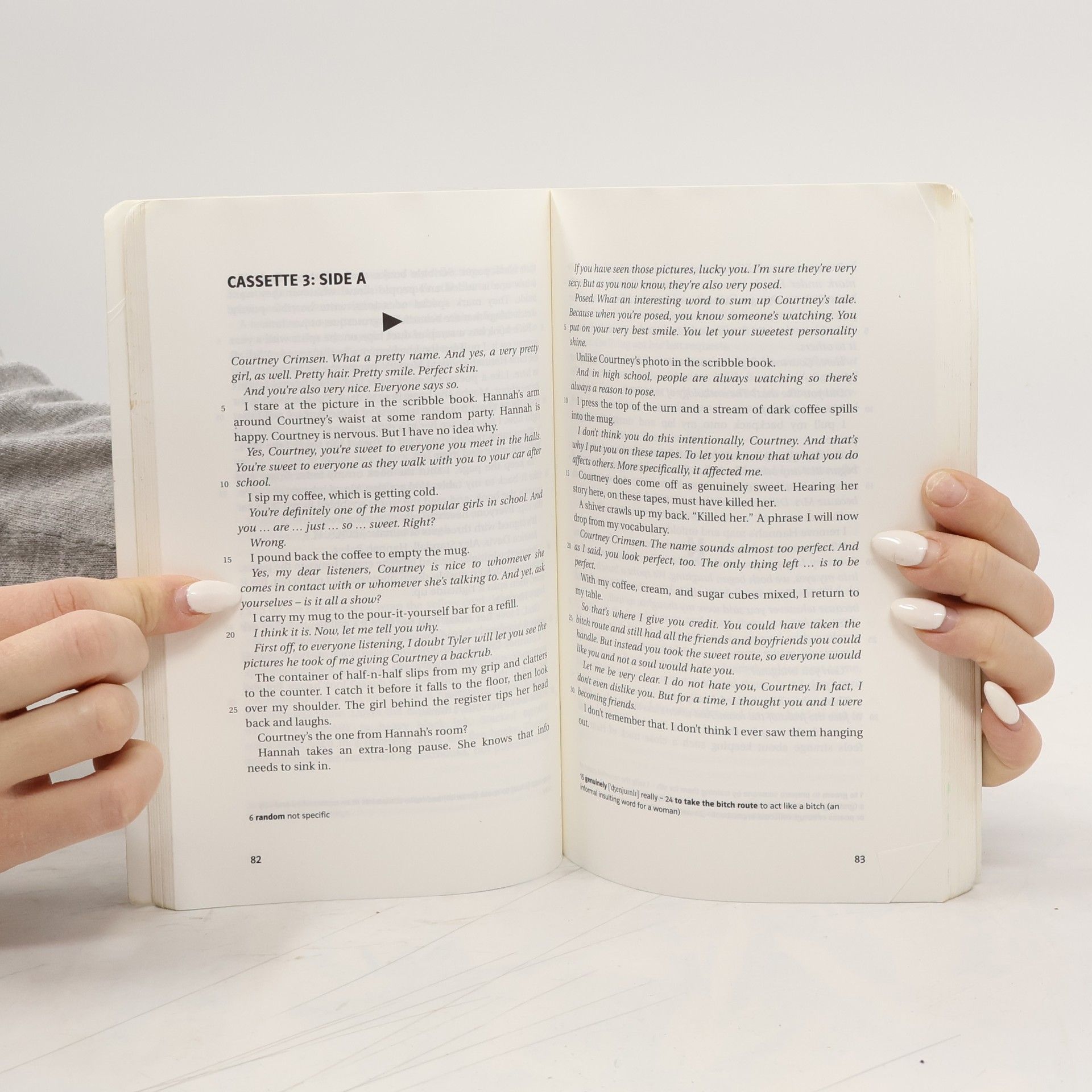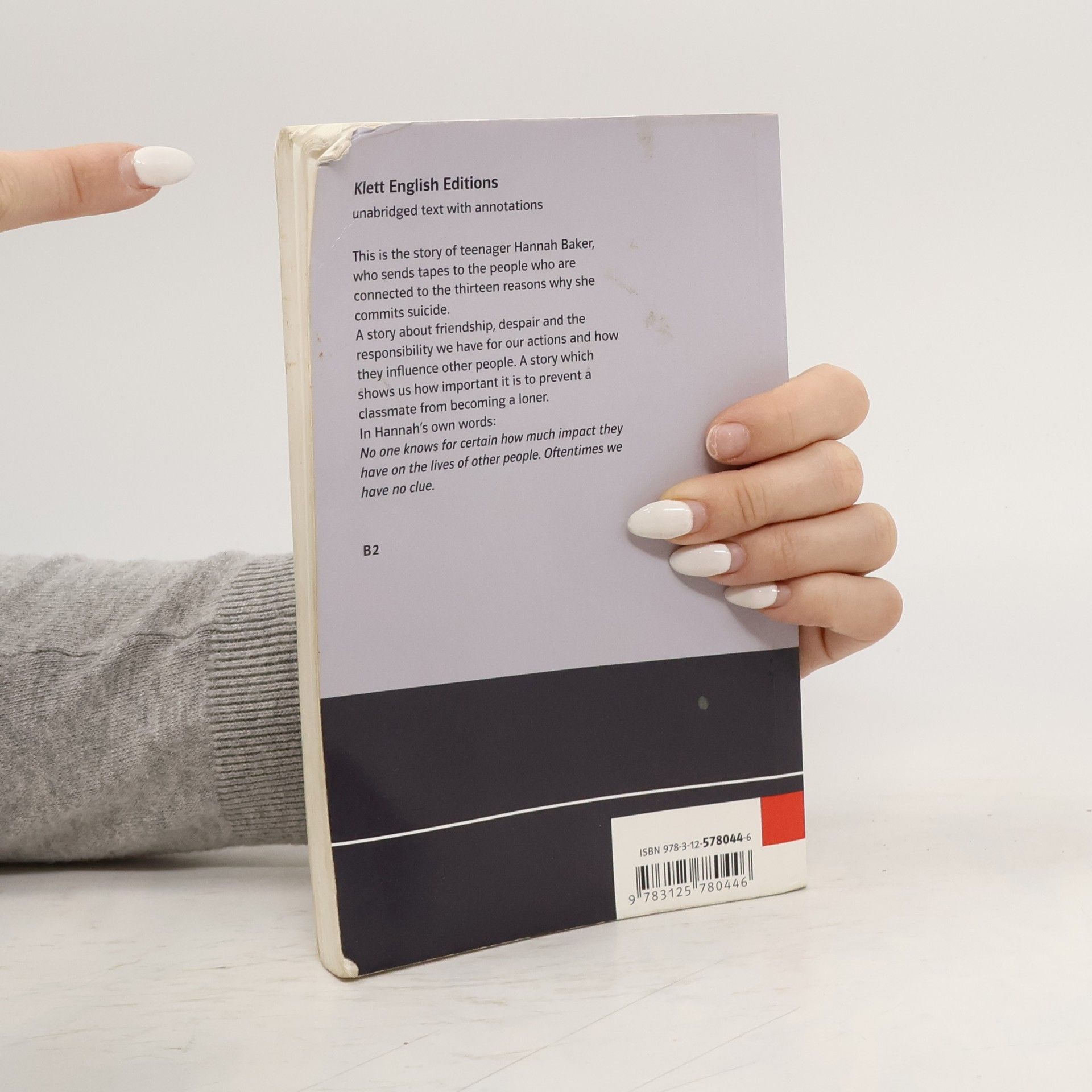 This is the story of teenager Hannah Baker, who sends tapes to the people who are connected to the thirteen reasons why she commits suicide. A story about friendship, despair and the responsibility we have for our actions and how they influence other people. A story which shows us how important it is to prevent a classmate from becoming a loner. In Hannah's own words: "No one knows for certain how much impact they have on the lives of other people. Oftentimes we have no clue."
