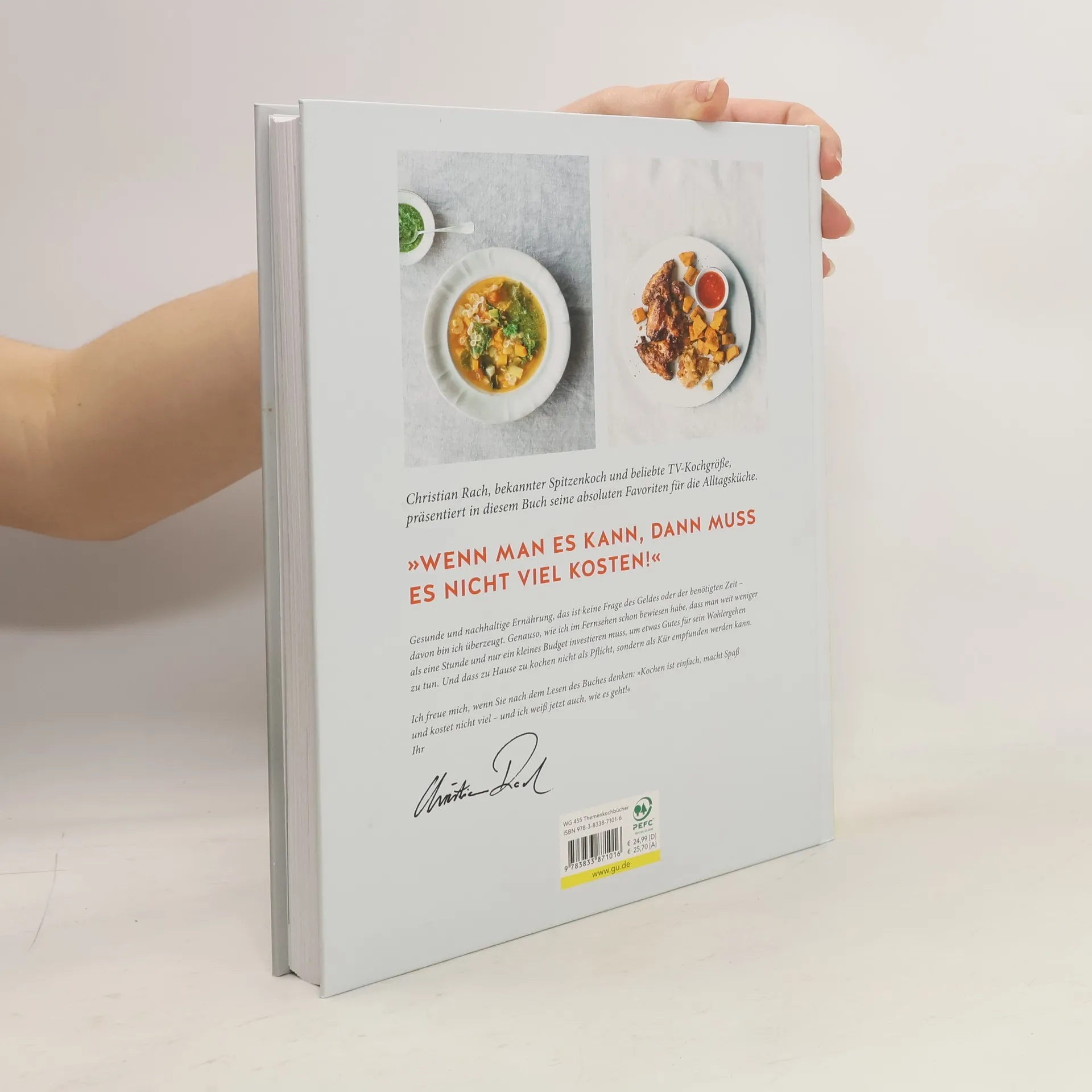 Christian Rach, der bekannte TV-Koch und Restauranttester, zeigt in seinem neuen Kochbuch, wie Sie schnell und einfach köstliche Mahlzeiten zu Hause zubereiten können. Perfekt für alle, die mehr Zeit zu Hause verbringen und dabei Lust auf gutes Essen haben, bietet Rach unkomplizierte Rezepte, die wenig Zeit, Übung und Geld erfordern. Die Sammlung richtet sich an Eltern, kochbegeisterte Teenies und alle, die neugierig auf bewährte Rezepte sind. Nach einer kurzen Einführung geht es direkt zu den Rezepten, die von Salaten über Suppen bis hin zu Fleischgerichten und Desserts reichen. Besonders für das tägliche Mittagessen sind die Gerichte unter 30 Minuten ideal. Ob Lauchsalat mit Eiern oder Seelachs mit Orangen-Brösel-Kruste – der Geschmack überzeugt immer. Für den Abend sind leichte, stressfreie Gerichte gefragt, die schnell zubereitet werden können. Rach bietet eine Balance zwischen traditionell und modern mit Kreationen wie gebratenem Zander auf grünem Spargel oder Geflügelbällchen mit Schmorgurken. Am Wochenende dürfen es auch aufwändigere Gerichte sein, die viel Geschmack bieten, wie cremige Wirsing-Rouladen oder geschmorte Lammhaxen. Den süßen Abschluss bilden fruchtige Desserts. Zudem gibt es am Ende des Buches eine Übersicht seiner Grundrezepte, darunter Brühen, Saucen und Pesto.