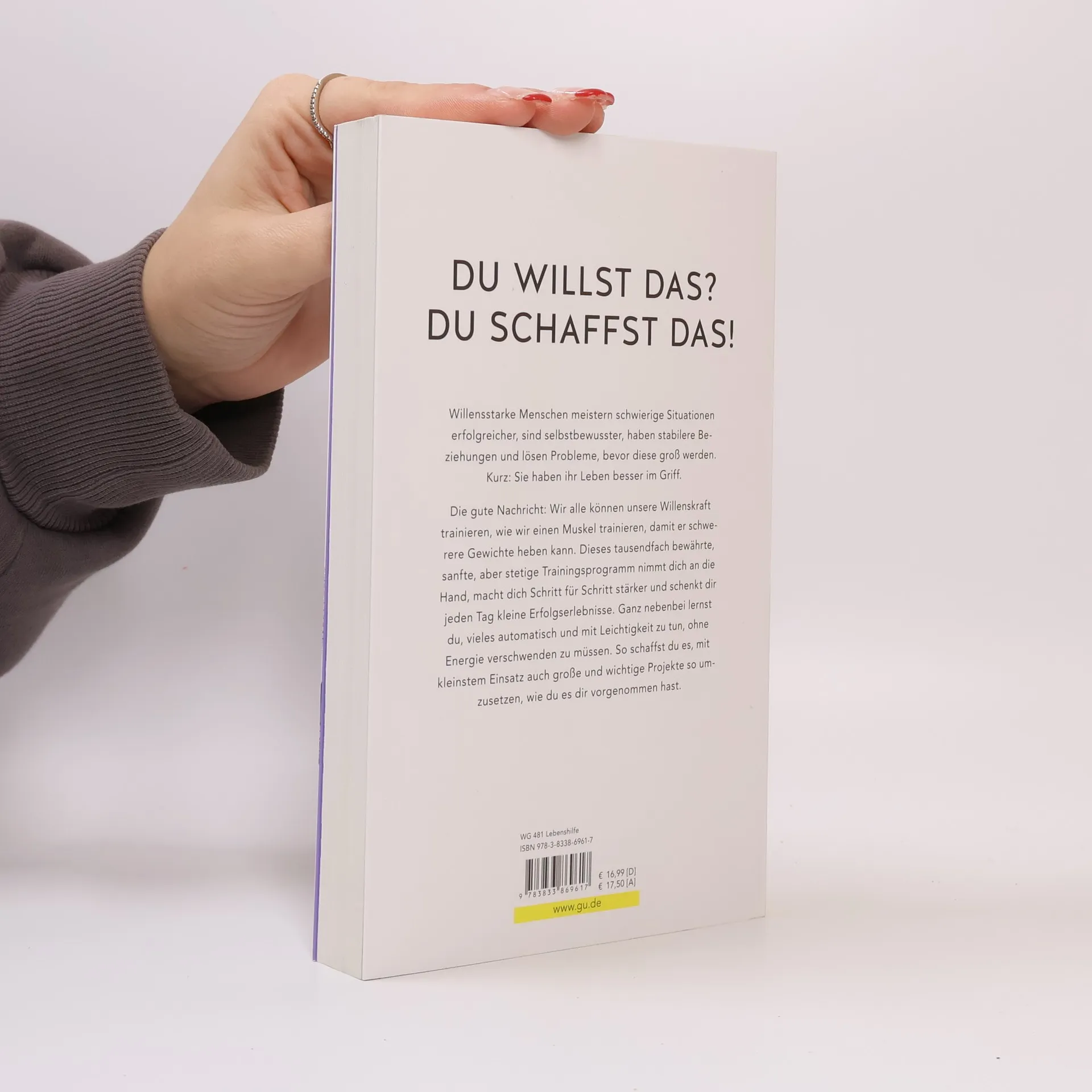 Du willst das? Du schaffst das! Das wirksame Training für mehr Selbstdisziplin Menschen mit ausgeprägter Willensstärke meistern belastende Situationen erfolgreicher , haben stabilere Beziehungen, sind selbstbewusster und weniger suchtanfällig. Sie leben vernünftiger, sind proaktiv statt reaktiv und lösen Probleme, bevor sie groß werden. Kurz: Sie haben ihr Leben besser im Griff . Die gute Nachricht: Wir alle können unsere Willenskraft trainieren wie einen Muskel, sodass er schwerere Gewichte heben kann. Dieses Buch enthält ein sanftes, aber stetiges Trainingsprogramm , das uns an die Hand nimmt und Schritt für Schritt stärker macht. Wir haben jeden Tag kleine Erfolgserlebnisse und so immer ein Gefühl des Fortschritts. Wir steigern aber nicht nur unsere Willenskraft, sondern lernen ganz nebenbei auch, vieles automatisch und mit Leichtigkeit zu tun, ohne dass wir dafür Willenskraft aufwenden müssen. So schaffen wir es, mit kleinstem Einsatz auch große und wichtige Projekte so umzusetzen, wie wir es uns vorgenommen haben.