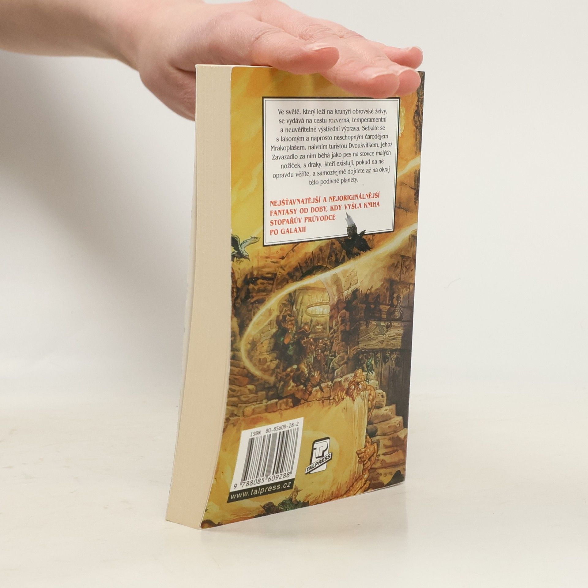 Ve světě, který leží na krunýři obrovské želvy, se vydává na cestu rozverná, temperamentní a neuvěřitelně výstřední výprava. Setkáte se s lakomým a naprosto neschopným čarodějem Mrakoplašem, naivním turistou Dvoukvítkem, jehož Zavazadlo za ním běhá jako pes na stovce malých nožiček, s draky, kteří existují pokud na ně opravdu věříte, a samozřejmě dojdete až na okraj této podivné planety.
