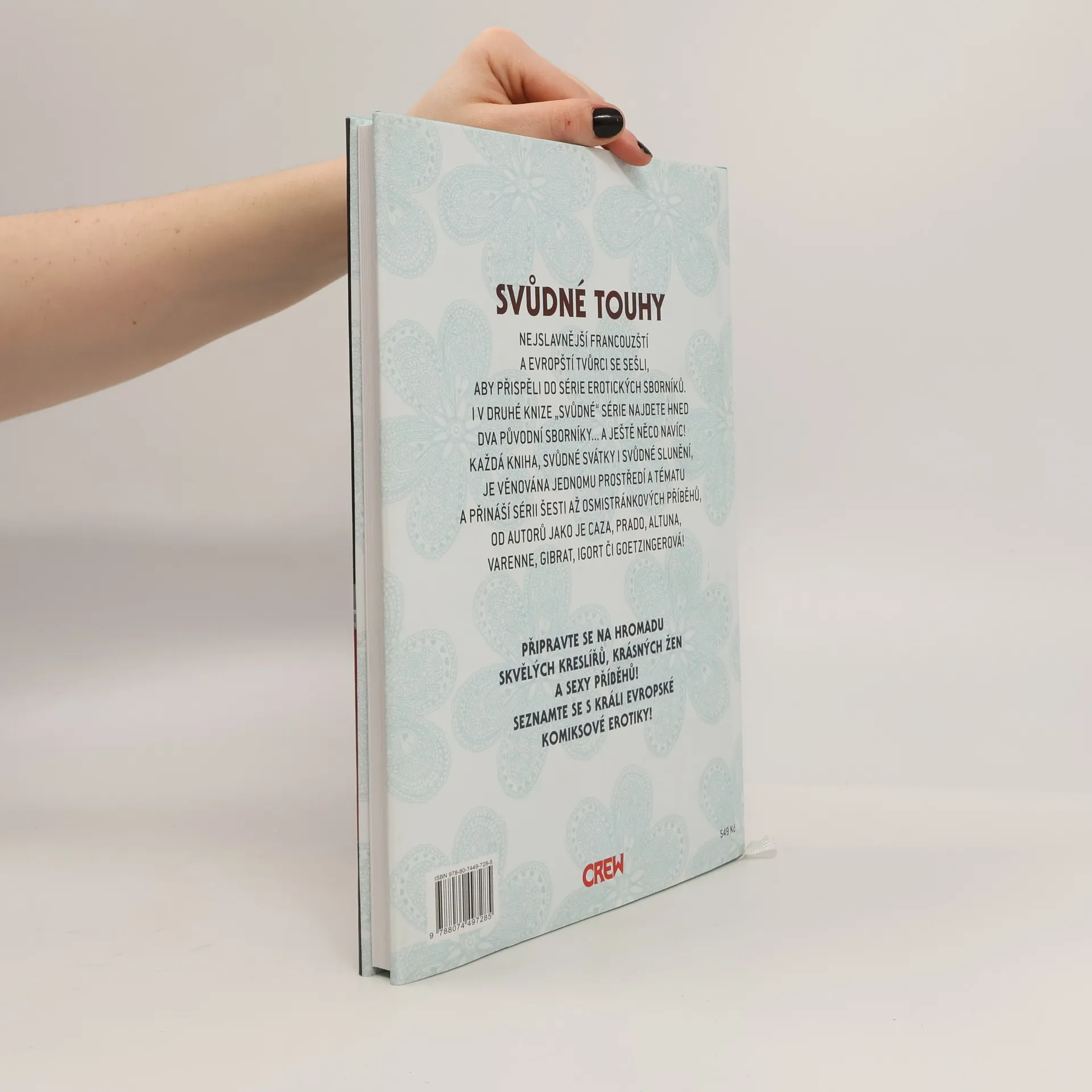 Nejslavnější francouzští a evropští tvůrci se sešli, aby přispěli do série erotických sborníků. I v druhé knize naší „svůdné“ série najdete hned dva původní sborníky... a něco málo navrch! Každý je věnovaný jednomu prostředí a tématu a přináší sérii šesti až osmistránkových příběhů od autorů jako je Jodorowsky, Prado, Altuna, Varenne, Gibrat, Bilal či Goetzingerová! Připravte se na hromadu skvělých kreslířů, krásných žen a sexy příběhů!