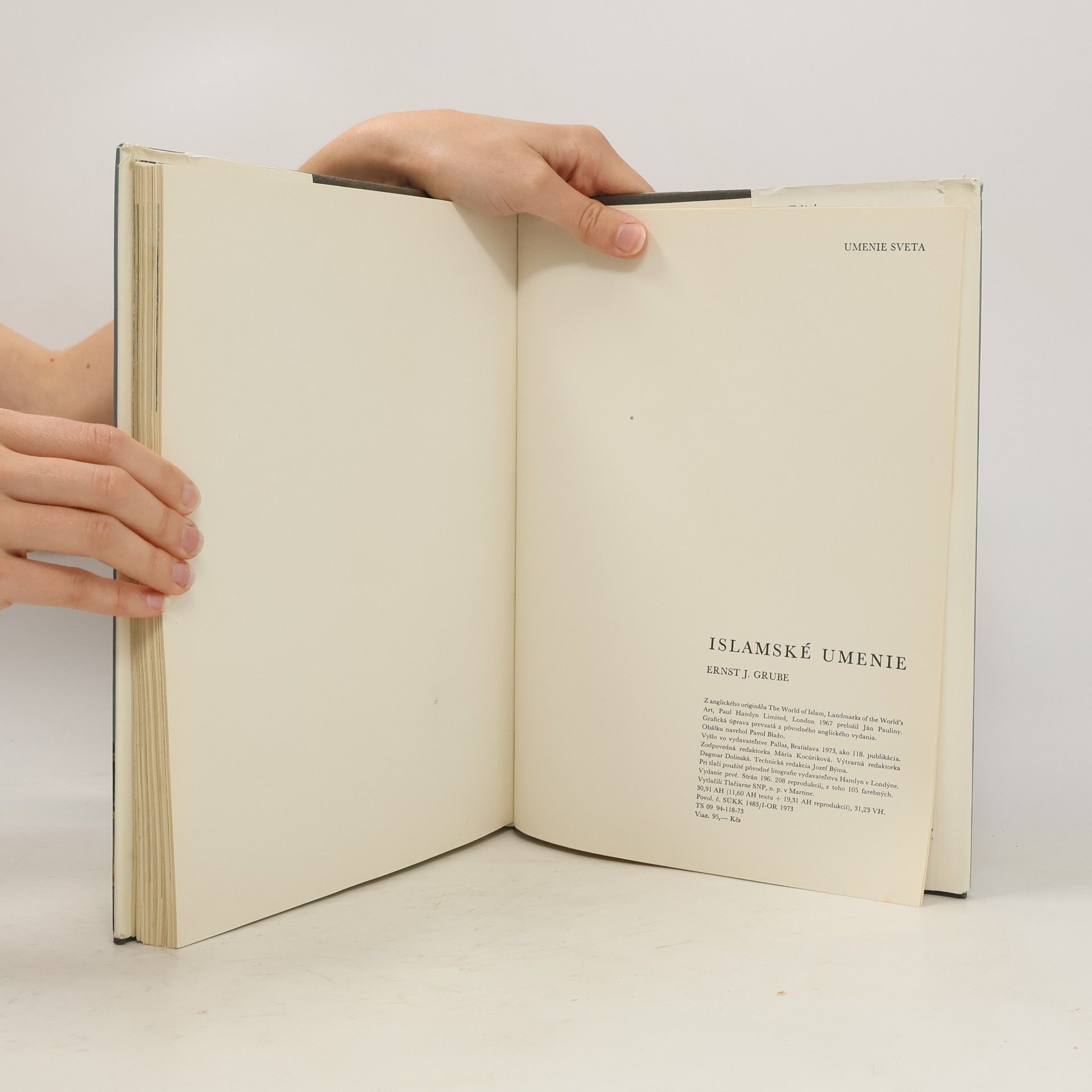 Architektúra, práce z kovu, maľba, koberce, rezby, keramika: V tejto publikácii nás dr. Grube oboznamuje s islamským svetom a jeho umením. Na bohatom ilustračnom materiáli môžeme obdivovať monumentálne mešity a paláce, štíhle minarety, prekrásne miniatúry a fascinujúce orientálne koberce...Vývoj islamského umenia začína dynastiou Umajovcov v 7. storočí a svoje prvky do neho postupne vniesli aj Peržania, Turci a arabskí obyvatelia, ktorí v Španielsku zanechali slávny palác Alhambra.